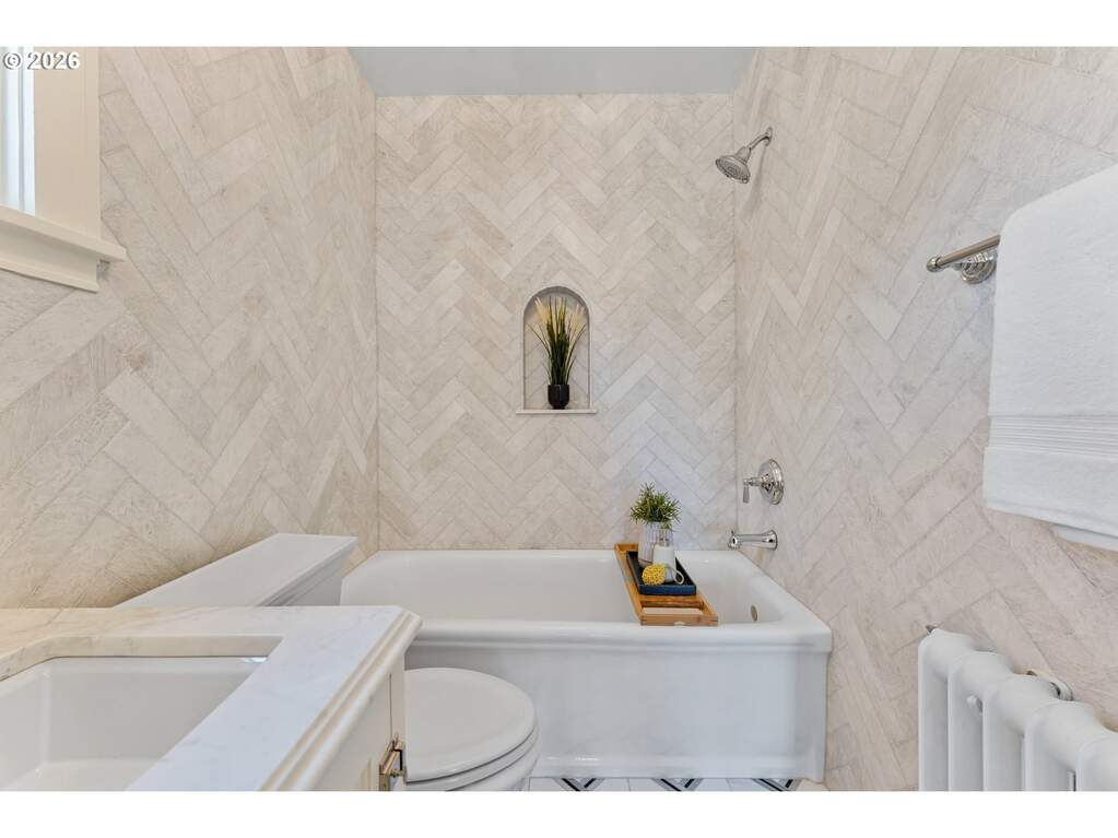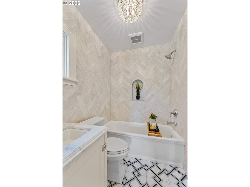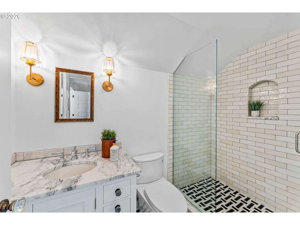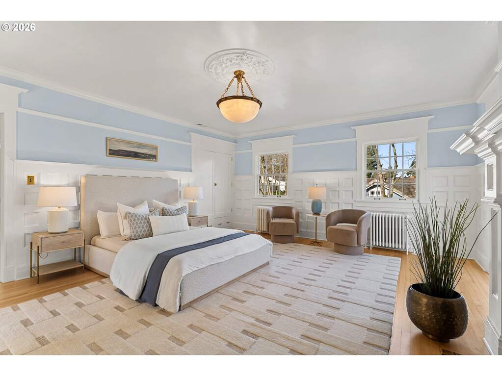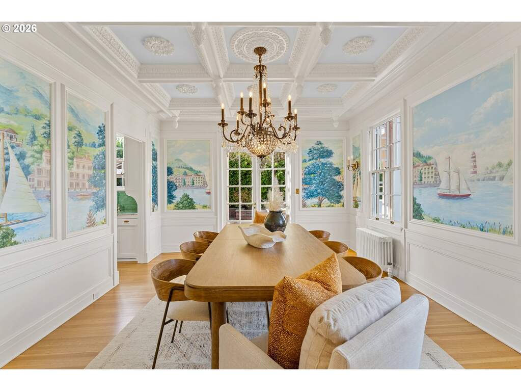 Welcome to The House of the Scarlet Gables, an extraordinary blend of timeless European elegance and contemporary luxury nestled on one of Irvington's most tranquil, tree-lined streets. Originally built in 1920 and meticulously reimagined in 2025 by McCulloch Construction, this distinguished colonial residence spans over 6,300 sq ft of beautifully curated living space, including separate guest quarters above the garage with a kitchenette and full bathroom, all set on a prized .24-acre corner lot graced by a majestic heritage tree. From the moment you arrive, refined craftsmanship and storybook charm set the tone. New artisan stone and brick walls, lush hedging, ironwork, white fencing with garden gates, an inviting gazebo, riotous gardens, and an outdoor fireplace create the feel of a private English country estate-right in the heart of one of Portland's most walkable and family-friendly neighborhoods. Sunlight bathes four levels of living space through skylights and expansive windows, illuminating 6 bedrooms, 6.1 baths, and 14 rooms adorned with intricate artisanal tile and woodwork. Highlights include a stunning chef's kitchen, multiple elegant entertaining spaces, and an opulent primary suite with dual baths, fireplace, walk-in dressing room, and a private balcony. Gracious hallways, mirrored entries, 15 dazzling chandeliers (including a unique double chandelier), six sets of French doors, and high ceilings elevate every corner of this home. Modern comforts are seamlessly integrated throughout, offering spaces perfect for work, play, and everyday living. This is more than a house-it's a legacy home ready to welcome the next chapter of luxury living in Portland's historic Irvington neighborhood. [Home Energy Score = 1. HES Report at https://rpt.greenbuildingregistry.com/hes/OR10238827]
