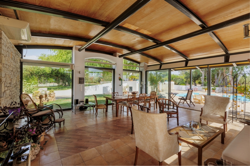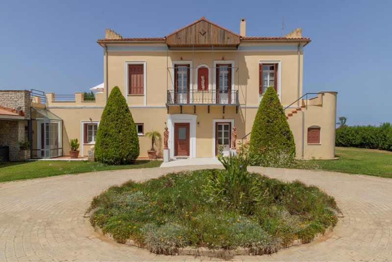 Located very close to the beautiful beaches of Kourouta and Agia Marina, this gracious country estate is an ideal haven offering an atmosphere of peace and relaxation. Elegant entry gates open to reveal an oasis of greenery lush with flowers and a profusion of trees including palms, cypresses and 250 mature olive trees. A wide variety of fruits and vegetables are also cultivated in the grounds of 35,000 m2. A historic villa built in 1893 and measuring 650 m2 is set in the center of the estate as its crown jewel. The residence offers generous reception spaces including a salon and dining area with a fireplace, a study-family room, a bright fully equipped kitchen, four bedrooms and four bathrooms. A special feature is a spacious winter-garden sitting room overlooking the pool. An independent cottage for the caretakers, an indoor garage, and storage rooms complete the interiors. Outdoor areas feature the large swimming pool, terraces, verandahs, and a gazebo, all ideal for alfresco dining and entertainment. A wide green lawn is perfect for children's play, while a tennis court with basketball facilities is ready to be enjoyed by the more sporty guests and the beach is just a short walk away. This delightful retreat is set only 30 kilometers from the archaeological site of Ancient Olympia and 55 kilometers from the international airport of Patras/Araxos.