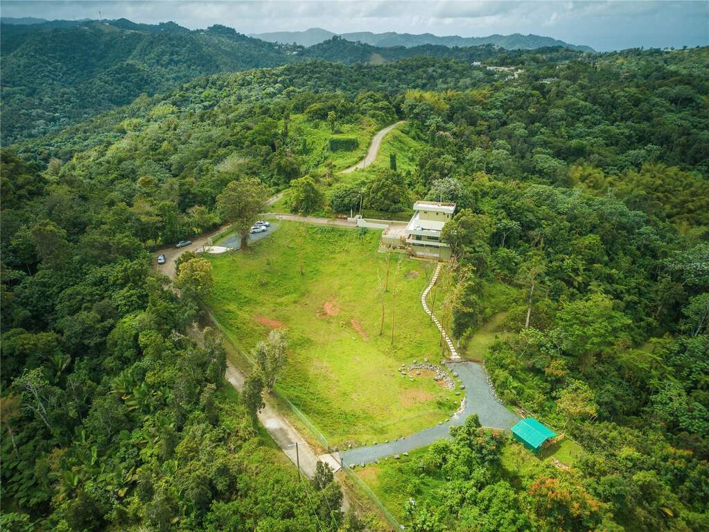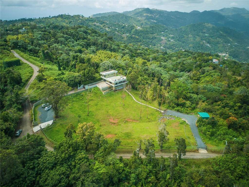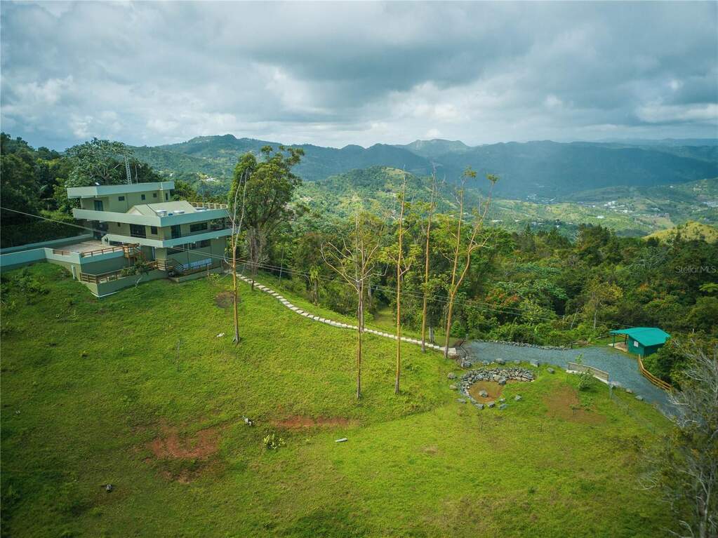 Private Mountaintop Retreat in Cayey - 5 Acres with Panoramic Views Perched at approximately 1,000 meters in the central mountains of Puerto Rico, this exceptional 4-bedroom, 4-bathroom home sits on 5 acres of lush land, offering 120 horizon views and unmatched privacy. Accessed via a long private driveway, the property is surrounded by nature, creating a serene and tranquil escape. Designed for comfort and modern living, the home features Starlink high-speed internet, a 10 kilowatts solar system with battery backup powering essential circuits and a gas generator, ensuring reliability for full-time living or remote work. The property also includes a solar water heater, 600-amp main panel, reverse osmosis and water system. The interior boasts a spacious upstairs master suite with travertine and ceramic tile floors, PVC and quartz finishes, a custom desk, and AC. The living room also has AC, and the home includes a gas stove, wraparound porch, and security camera system. Additional amenities include a 1 car garage with ample bult-in shelving, a pond, shed with electricity and water, and a licensed opportunity to build one more home on the property. The land is rich with tropical fruit trees including tangerine, bananas, guava, avocado, orange, and a Pana tree as well as 3 female goats that help maintain the grounds. With cooler mountain air, stunning sunsets over the western horizon, and proximity to local dining, this retreat combines privacy, natural beauty, and modern infrastructure, making it ideal as a private residence, vacation home, or investment opportunity.
