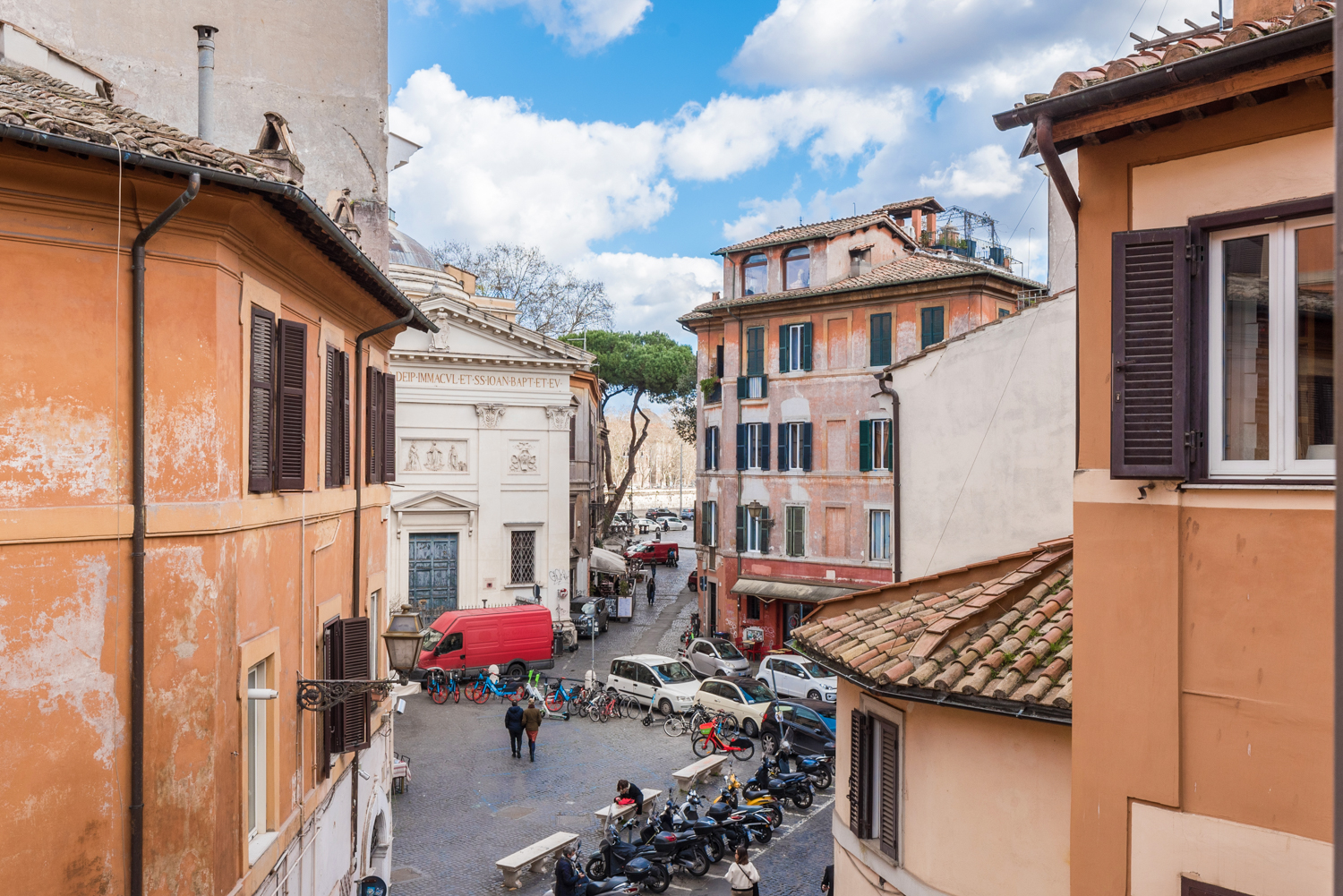 Christie's International Real Estate Rome Exclusive is pleased to offer for sale in the heart of the characteristic Roman district of Trastevere, a few steps from Piazza Trilussa, an exclusive building, beautifully renovated and furnished, never inhabited and equipped with a garage with internal access. The building has a total area of ??approximately 500sqm distributed over 4 levels, all served by a lift. On the ground floor there are the main entrance, access to the lift, a hallway from which to access the annex / apartment staff, with bathroom and kitchen, of about 40sqm and the double garage with electric and comfortable shutter driveway access. The first floor consists of a triple living room with panoramic windows both towards the outside and the internal courtyard of the property, a large dining room communicating with the kitchen, completely custom-made and equipped with a comfortable central island, with numerous wardrobes, which leads to a guest bathroom and a large windowed laundry area.