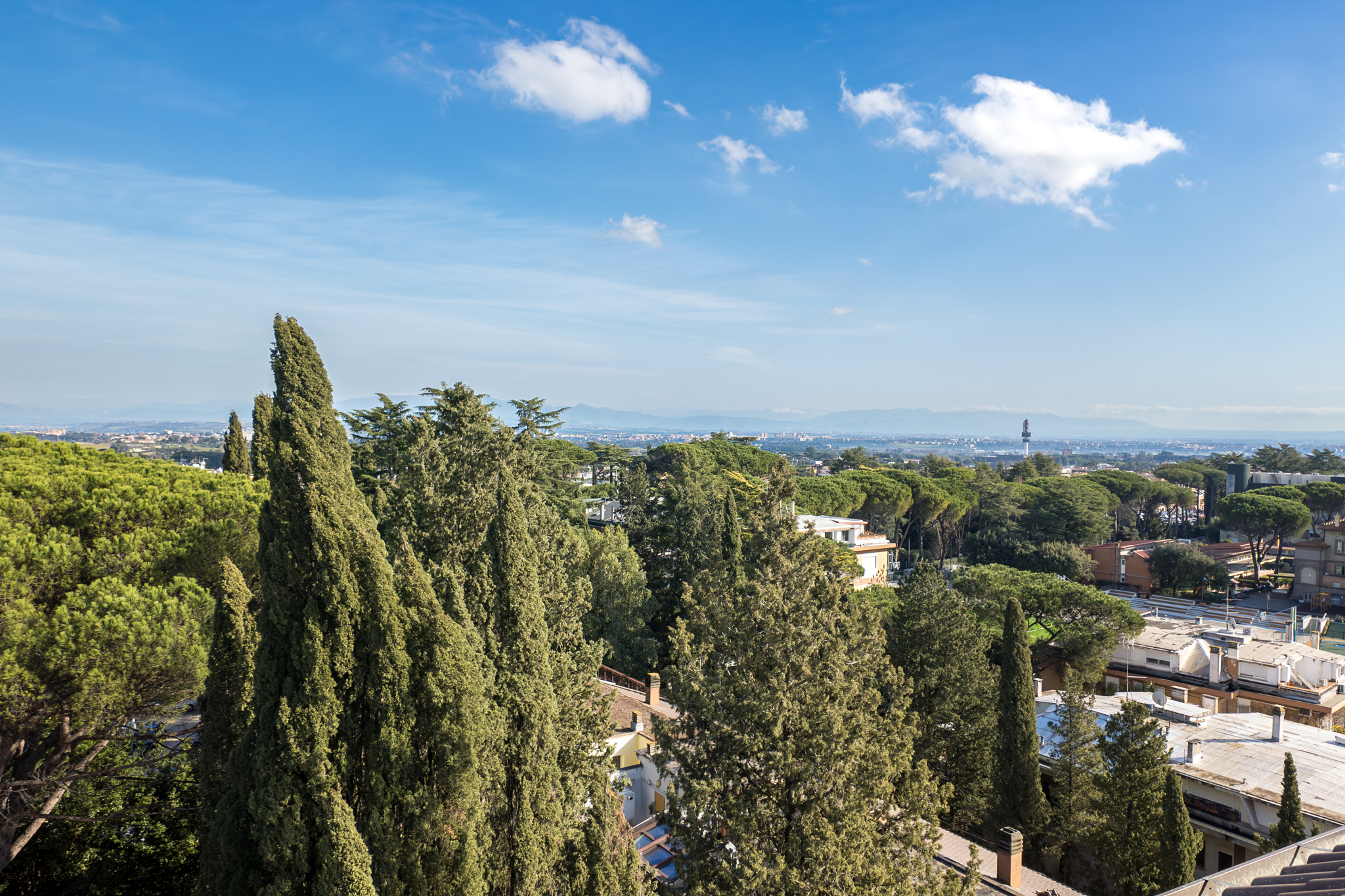 The property is on two levels both with large habitable terraces that surround the house, great brightness thanks to the excellent southern exposure, a panoramic view that extends over all of Rome.