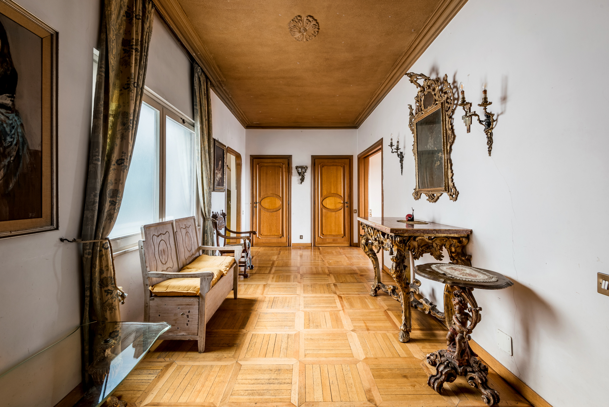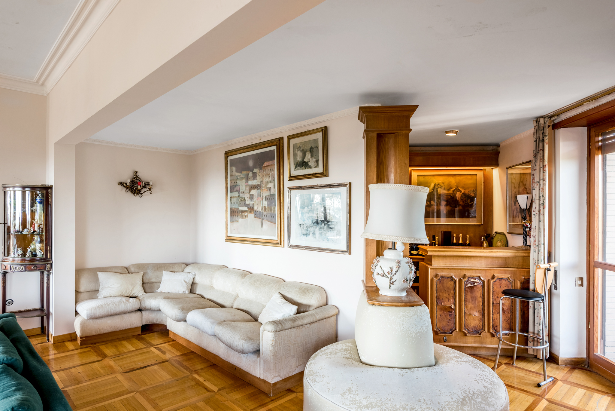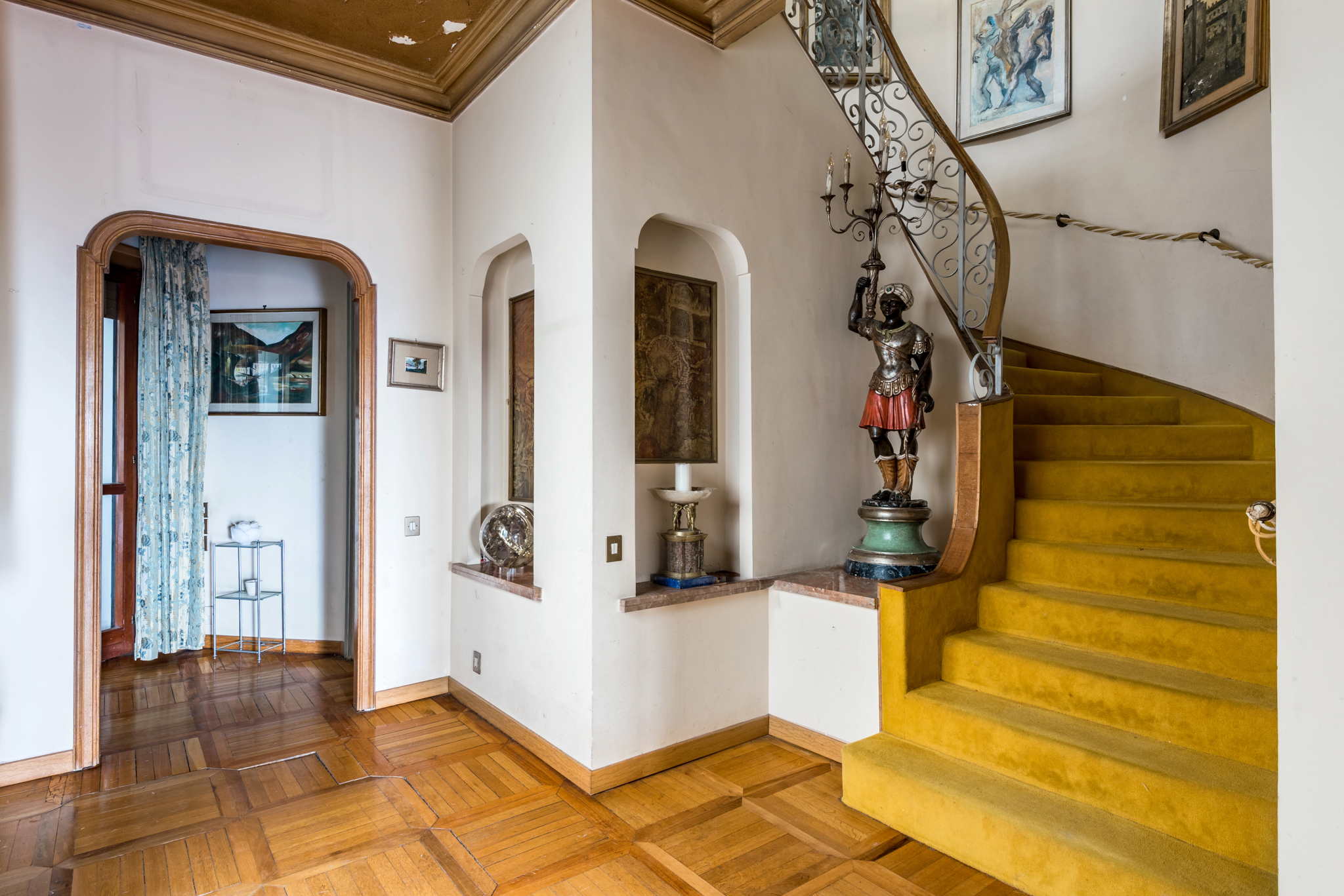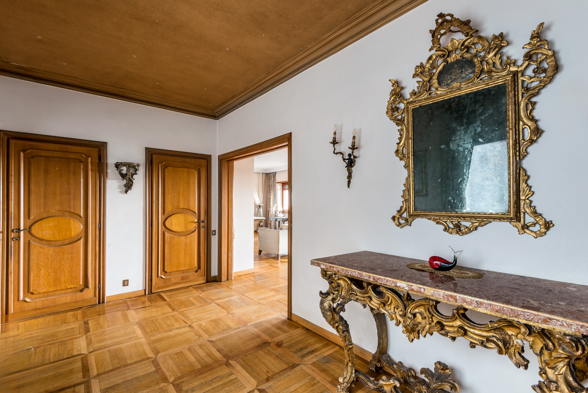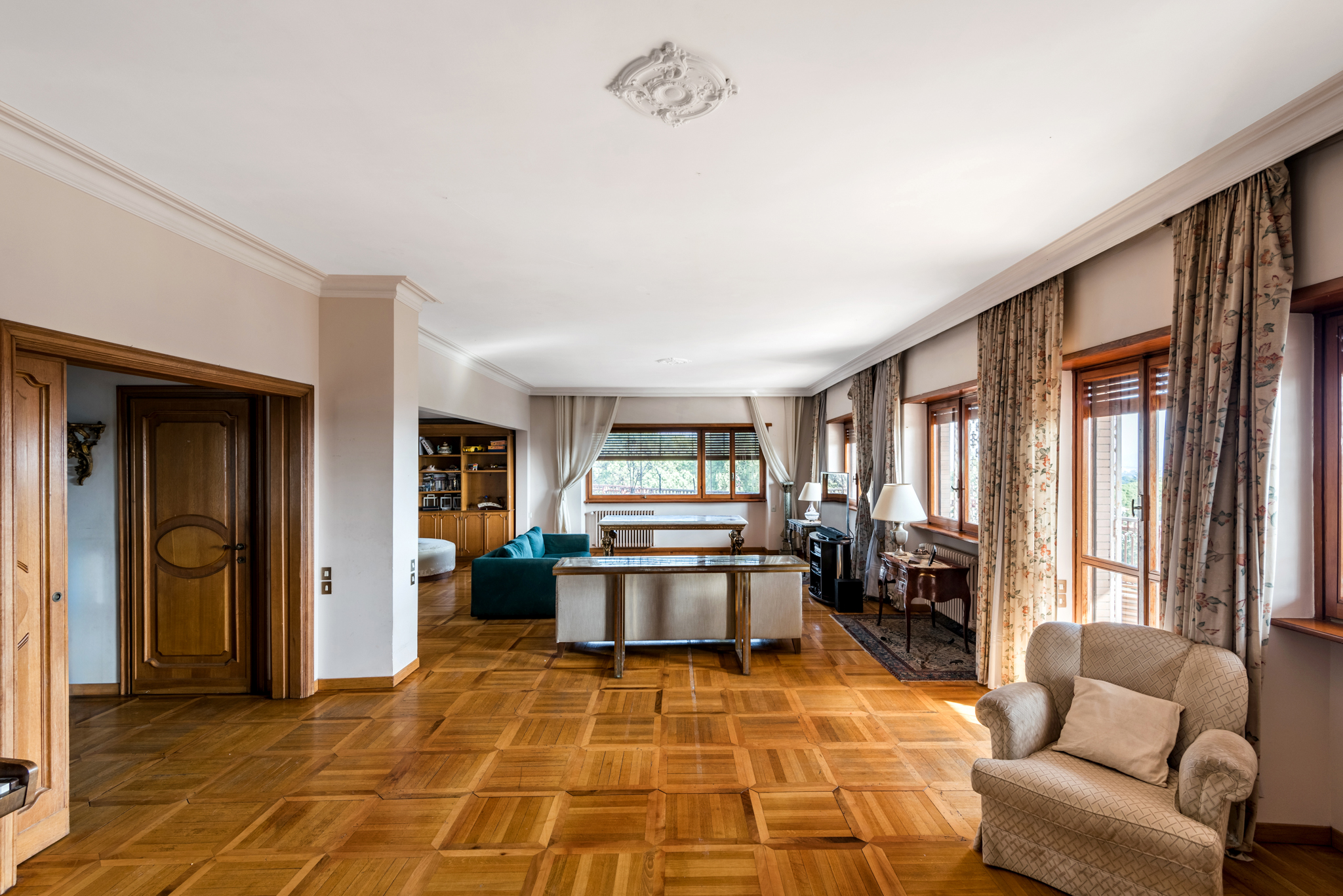 The apartment, to be renovated, currently consists of a total of four bedrooms and four bathrooms in addition to spacious reception rooms. On the attic floor there is a large triple living room, bar area, a dining room adjacent to the kitchen area with office and service areas for staff, two bedrooms and two bathrooms in addition to a pleasant covered veranda with fireplace. The entire attic floor is surrounded by a large covered terrace accessible from numerous French windows, very sunny with a spectacular and dominant view of Rome. On the super-attic floor, through an elegant spiral staircase there are three bedrooms that overlook a panoramic terrace, two bathrooms and numerous built-in wardrobes. This apartment is perfect for anyone who wants to make it a private residence as well as a subdivision into multiple real estate units for large families guaranteeing the possibility of creating up to three independent entrances. This is a unique opportunity to experience the city thanks to all the numerous services present in the area without sacrificing luxury and privacy.