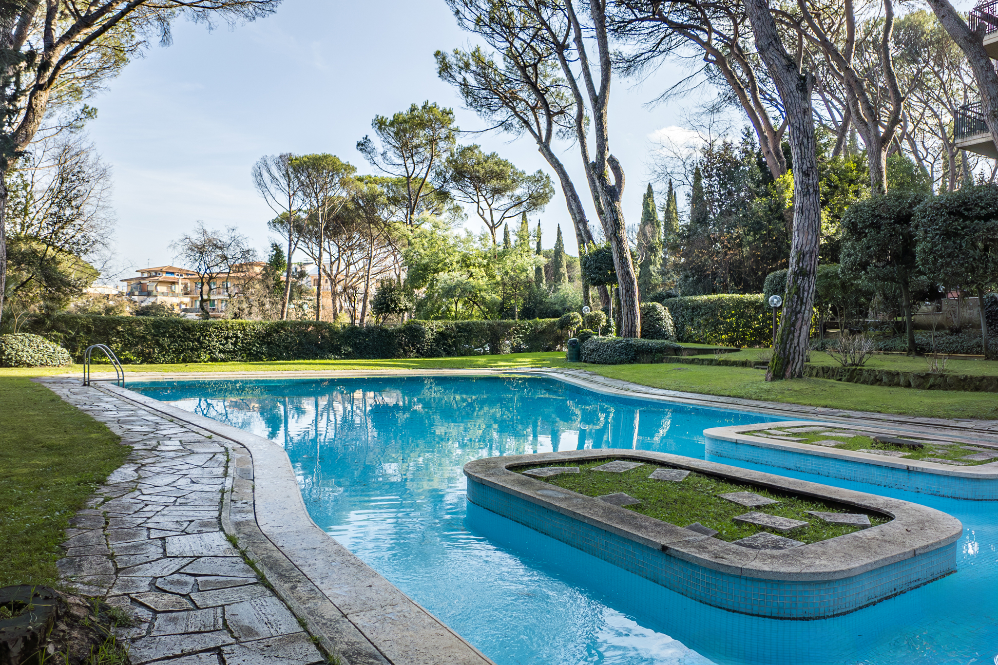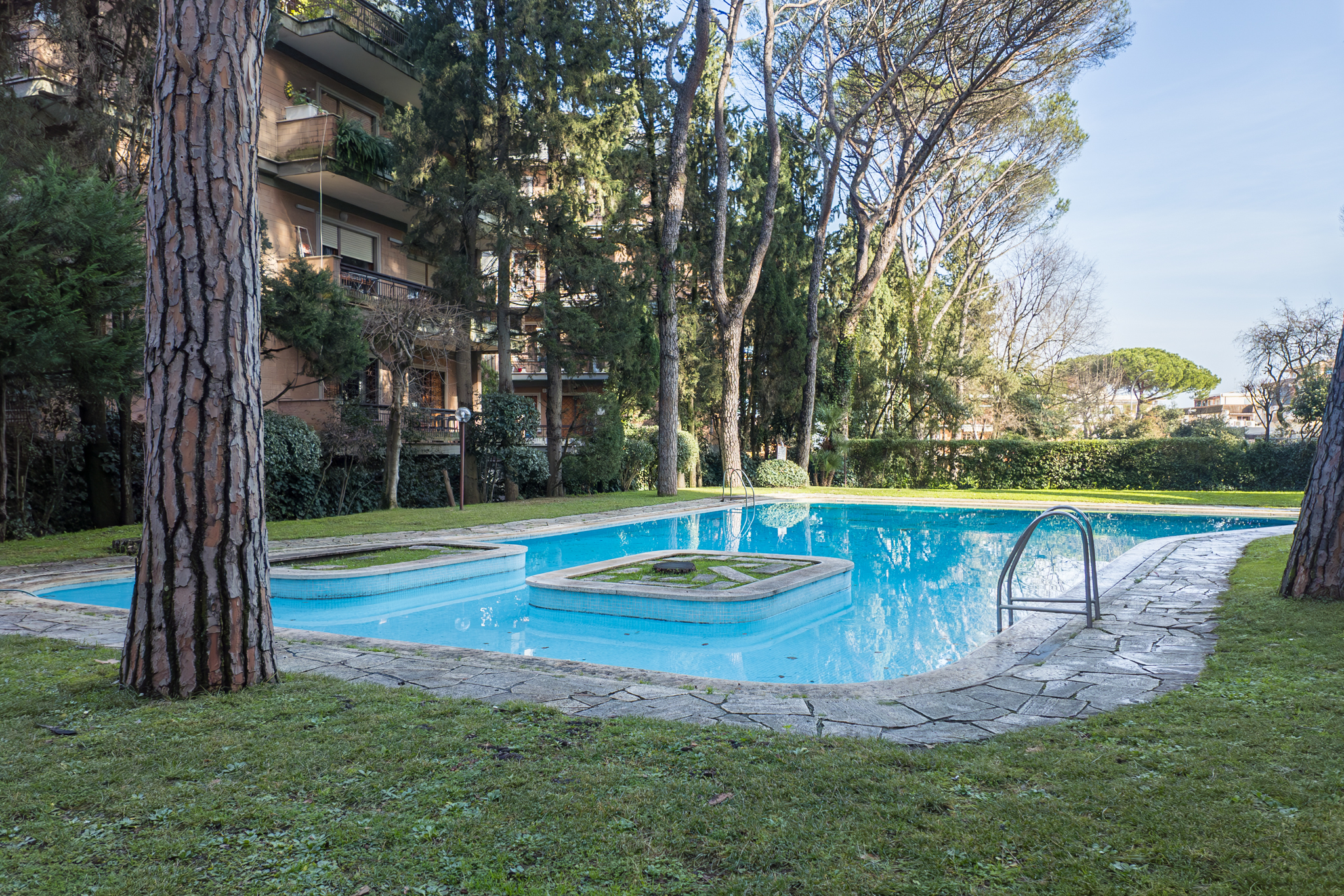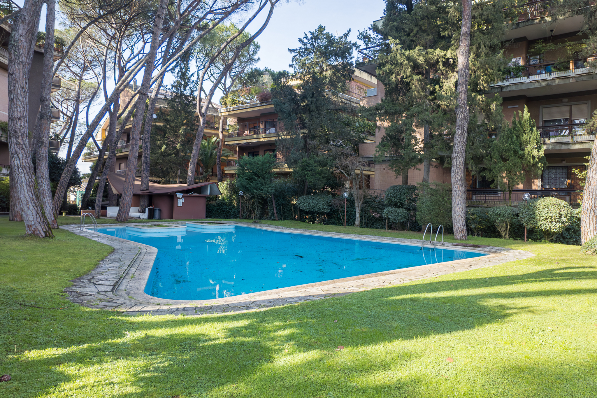 Christie's International Real Estate - Rome Exclusive is pleased to offer for sale a splendid panoramic penthouse and super-penthouse of 364 square meters with swimming pool in the most elegant area of Via Cassia. The apartment is located within an elegant complex with 24-hour security surrounded by the greenery of a park with tall trees, swimming pool, tennis court, gym and fitness area, sauna, children's play area and surrounding woodland, as well as large internal parking lots for residents and guests.