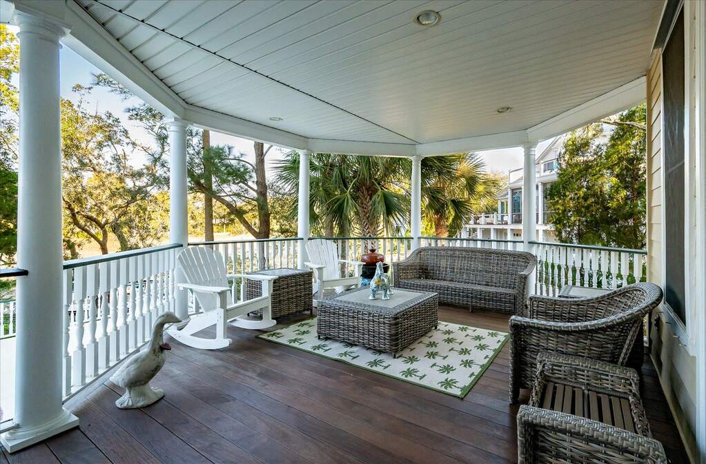 Experience exceptional coastal living at 27 Waterway Island Drive, where sweeping Intracoastal Waterway views define the home's inverted floor plan. Living areas and the primary suite are positioned upstairs to capture spectacular water vistas, complemented by two spacious office suites overlooking the water--ideal for work, reading, plants, or sunrooms. A sparkling in-ground pool overlooks the Intracoastal, while a deepwater dock with lift invites boating, fishing, and waterfront recreation. Just a short walk to the ocean, the property offers rare privacy and lifestyle. Additional features include a 3-stop elevator, circular driveway, expansive 5.5-car tandem garage, fully conditioned workshop, and a large conditioned cedar closet for off-season storage.Beyond the home's primary living spaces, multiple levels of covered porches provide exceptional vantage points to enjoy coastal breezes, passing boats, and the ever-changing colors of the Lowcountry sky. Mature landscaping and the natural marsh backdrop create a sense of privacy rarely found in waterfront homes, allowing the property to feel both expansive and secluded. Inside, thoughtful design and generous proportions make the home equally suited for everyday living and entertaining. Large gathering areas connect naturally to the surrounding outdoor spaces, creating a seamless indoor-outdoor lifestyle that defines coastal living on Isle of Palms. Whether hosting guests, enjoying quiet mornings overlooking the water, or working from home with inspiring views, the layout offers flexibility rarely found in waterfront properties. For boating enthusiasts, direct access to the Intracoastal Waterway opens the door to exploring Charleston Harbor, nearby barrier islands, and miles of scenic waterways. Fishing, paddleboarding, and sunset cruises become part of daily life. Located within Wild Dunes, residents also enjoy access to miles of pristine beaches, championship golf, tennis facilities, and scenic walking and biking paths, all within one of the most sought-after resort communities along the South Carolina coast. Homes that combine privacy, resort amenities, walkable beach access, and deep-water boating are increasingly difficult to find along Charleston's barrier islands, making this property a truly distinctive coastal retreat.