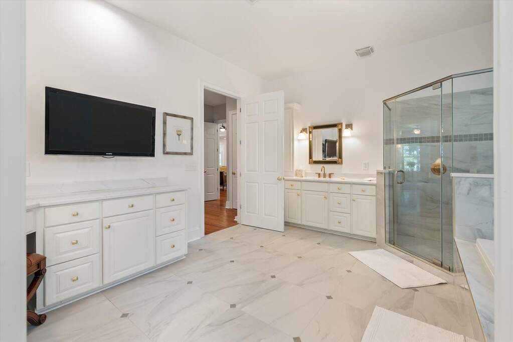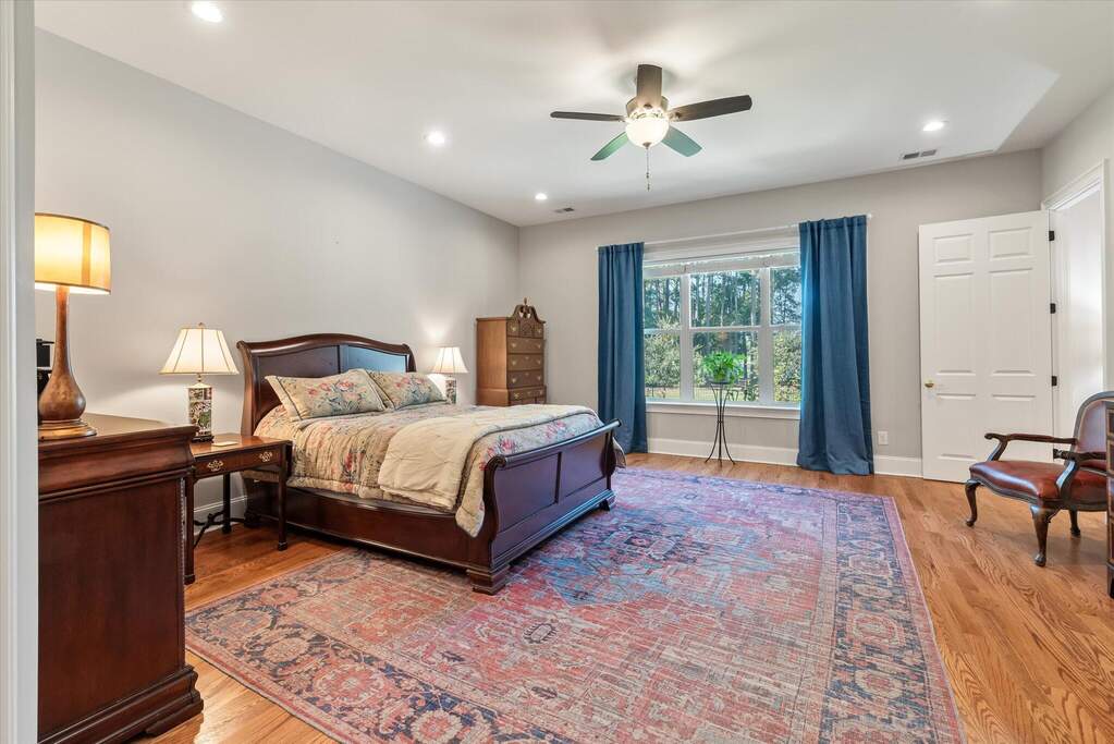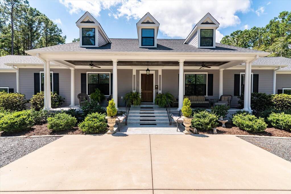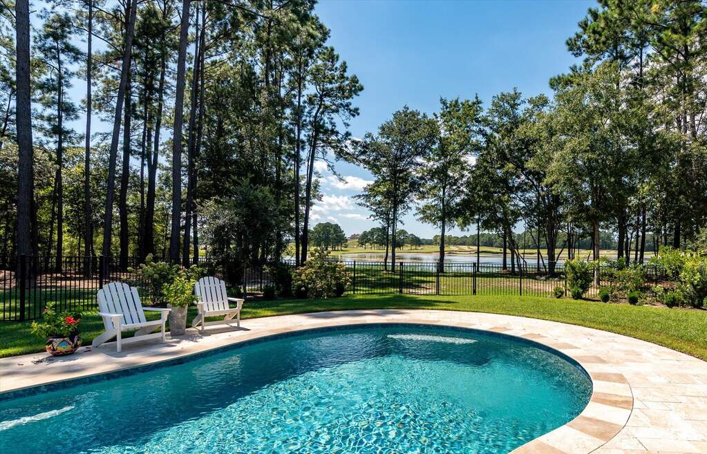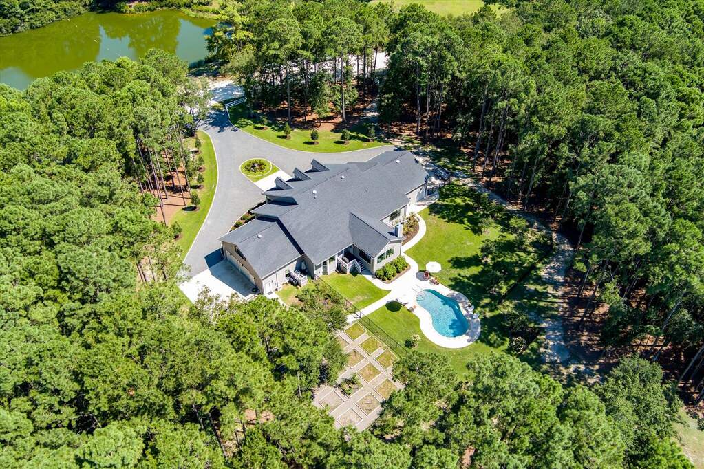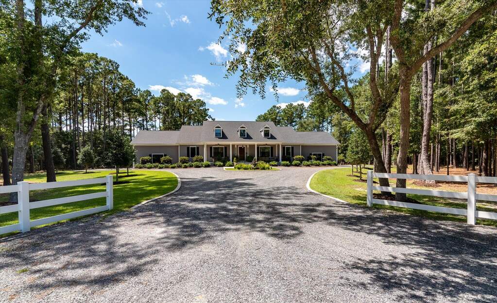 Bulls Bay is one of the South's most exclusive private golf enclaves, home to a select circle of the region's most accomplished business leaders and visionaries. Ownership of this residence provides priority membership consideration upon application and approval. Set on 1.78 private acres, the home offers golf course and lake views with exceptional privacy. The open floor plan features a tiled foyer, dining room, great room with stone fireplace, wet bar, and a chef's kitchen with custom cabinetry and quartz countertops. The primary suite and guest bedrooms have private baths, with bonus space above the garages. Outdoors, an inground saltwater pool, mature gardens, and outdoor living areas overlook the 10th-13th holes, creating a rare Bulls Bay golf estate.