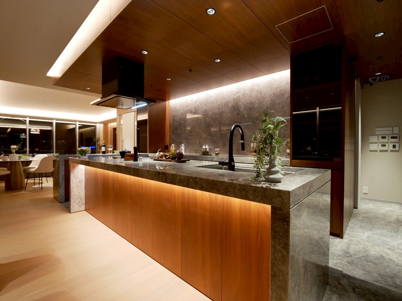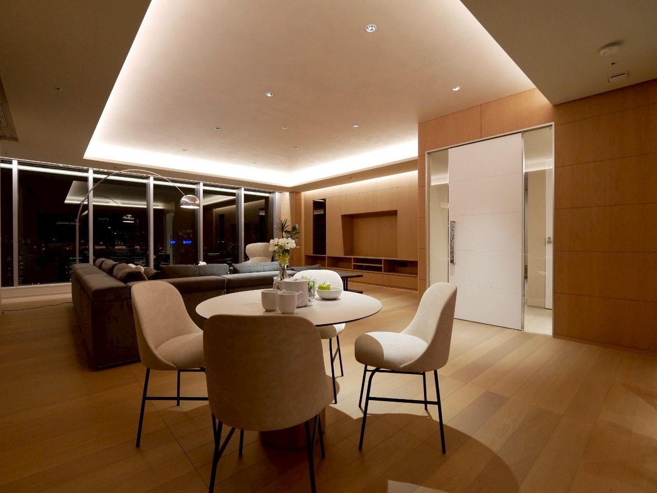 Spanning an expansive 238.09 sqm, approximately 72 tsubo, this residence delivers a sense of scale and presence seldom found in central Tokyo. From the 42nd floor, sweeping skyline views unfold as a private, ever-changing backdrop. The refined 3LDK layout features two walk-in closets, a shoe-in closet, and a dedicated storage room. At its heart is an extraordinary 95.3 sqm living, dining, and kitchen space, designed for both sophisticated entertaining and elevated everyday living above the city.