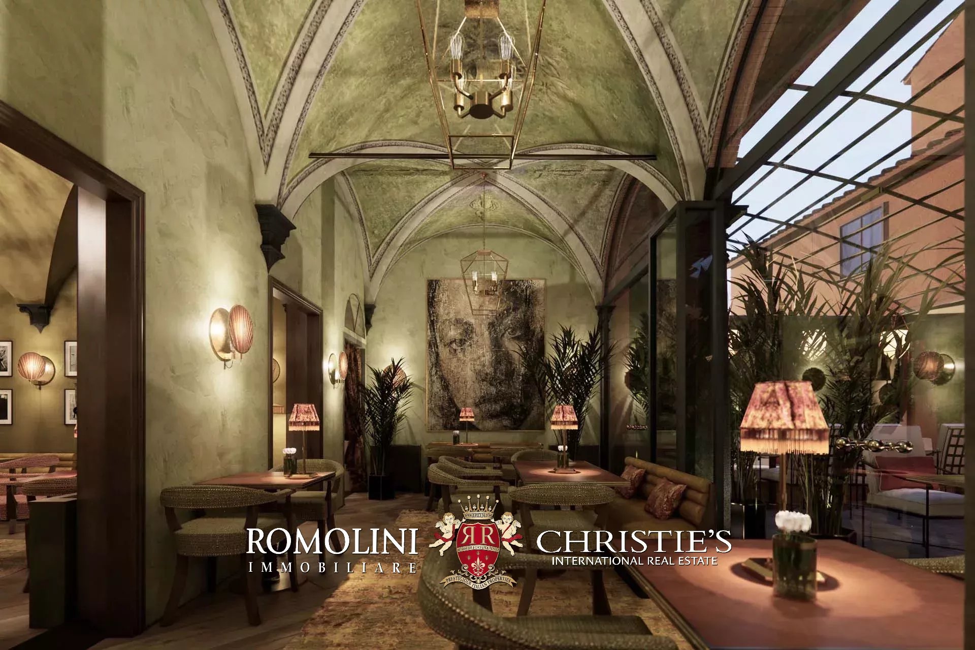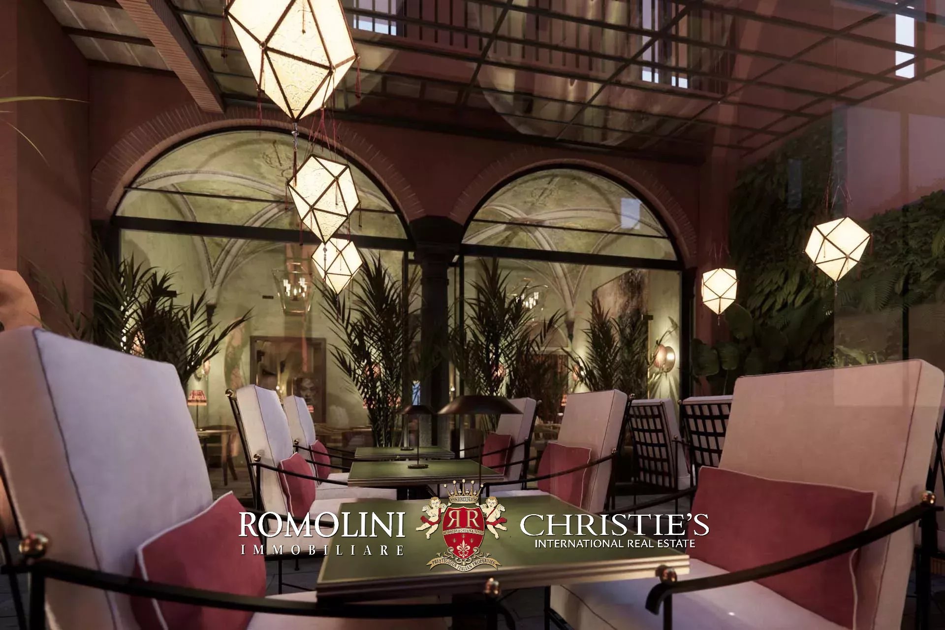 In the heart of Florence, just two steps from the beautiful Piazza Santa Croce, historic palazzo for sale with project for a luxury boutique hotel. The imposing property, set in a very quiet area of the center, is currently under development and has been thought as a 13-key hotel with a stunning internal courtyard and a breathtaking panoramic rooftop terrace. The property is also suited as a private house.