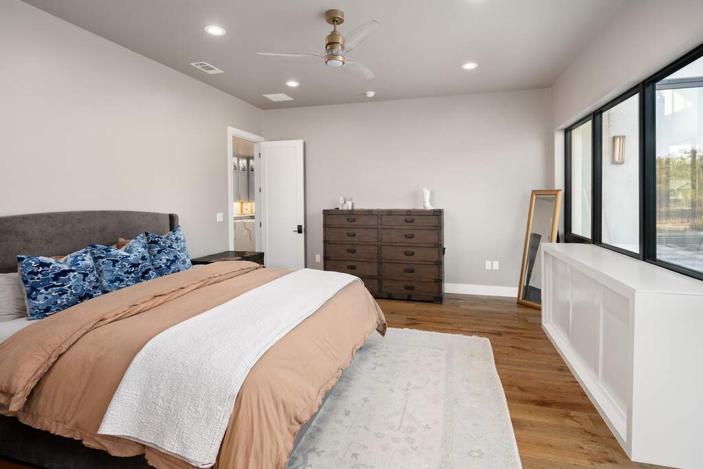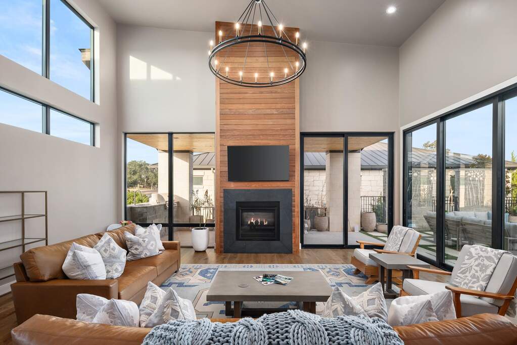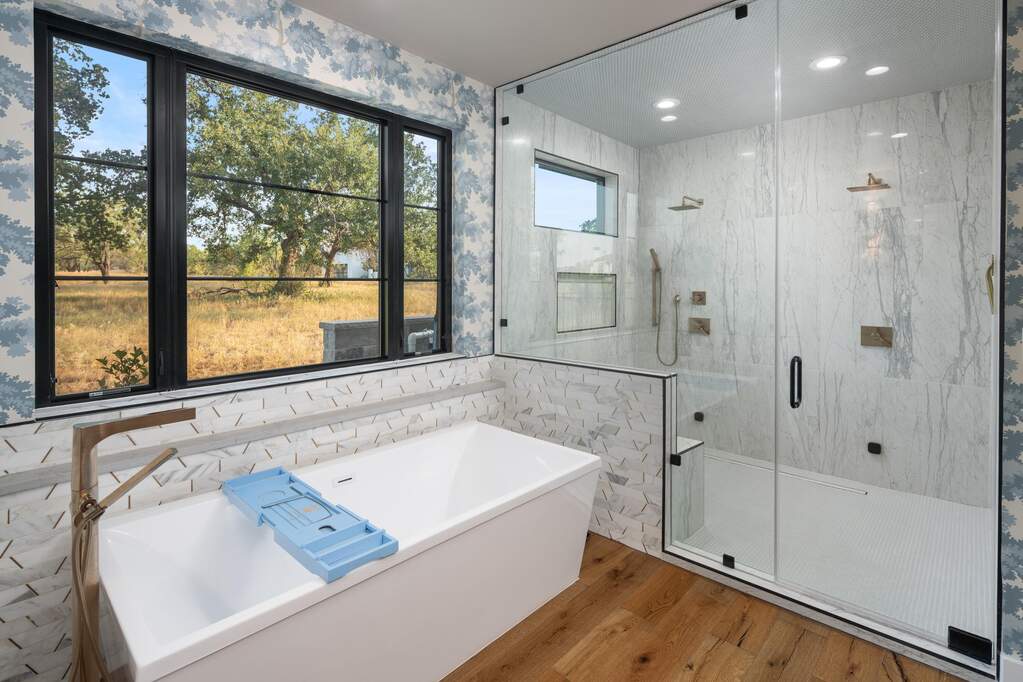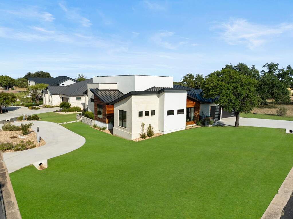 This exquisite Hill Country modern in exclusive Applehead sits minutes from Horseshoe Bay Resort's first class amenities, and award winning golf courses, three designed by Robert Trent Jones,Sr. and Summit Rock designed by Jack Nicklaus. This home was built in 2022, it's a one-level retreat that offers over 3,200 square feet of thoughtful design with soaring ceilings, hardwood floors, and abundant natural light. The open-concept kitchen showcases beautiful matte Cafe appliances that feature a gas cooktop, quartz counters, as well as generous storage and a large pantry. The spacious living area centers around a cozy fireplace and seamlessly flows to the outdoors that includes a beautiful covered patio with wrought iron artistic screens that serve to afford the owner privacy. One is also able to enjoy a true Hill Country lifestyle with a heated pool that is equipped with an automatic cover, and surrounded by beautifully landscaped grounds enclosed by wrought iron fencing. Moving back inside, the owner's retreat has relaxing pool facing views and features a large walk-in custom closet with island storage. There is a custom invisible TV cabinet that is operated by remote control. The master bathroom feature a lush steam shower and soaking tub, perfect for unwinding after a long day. There are two additional bedrooms with ensuite baths, and a home office. A Generac generator provides peace of mind, and Applehead owners enjoy exclusive amenities that include a private pool, tennis courts and a park.