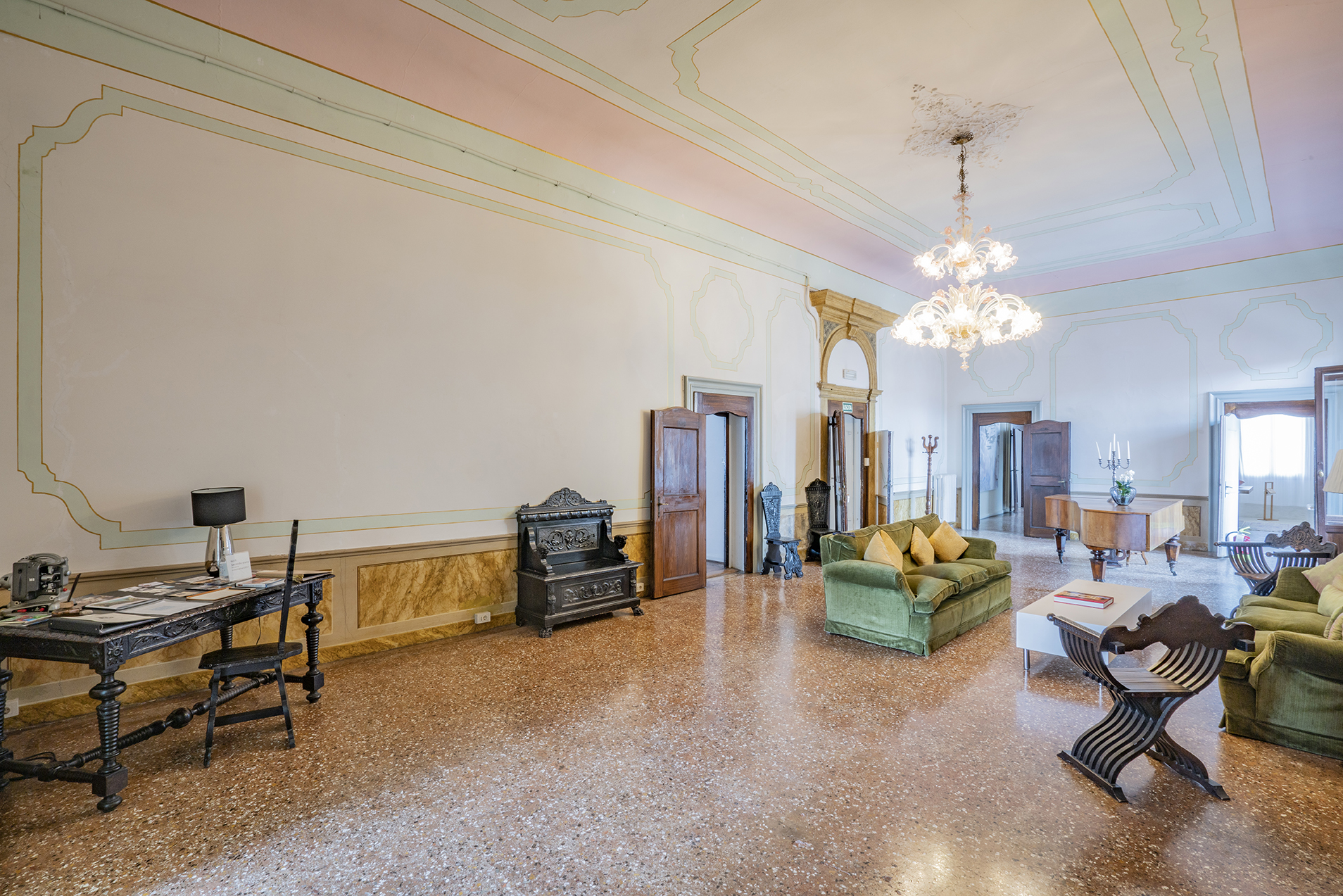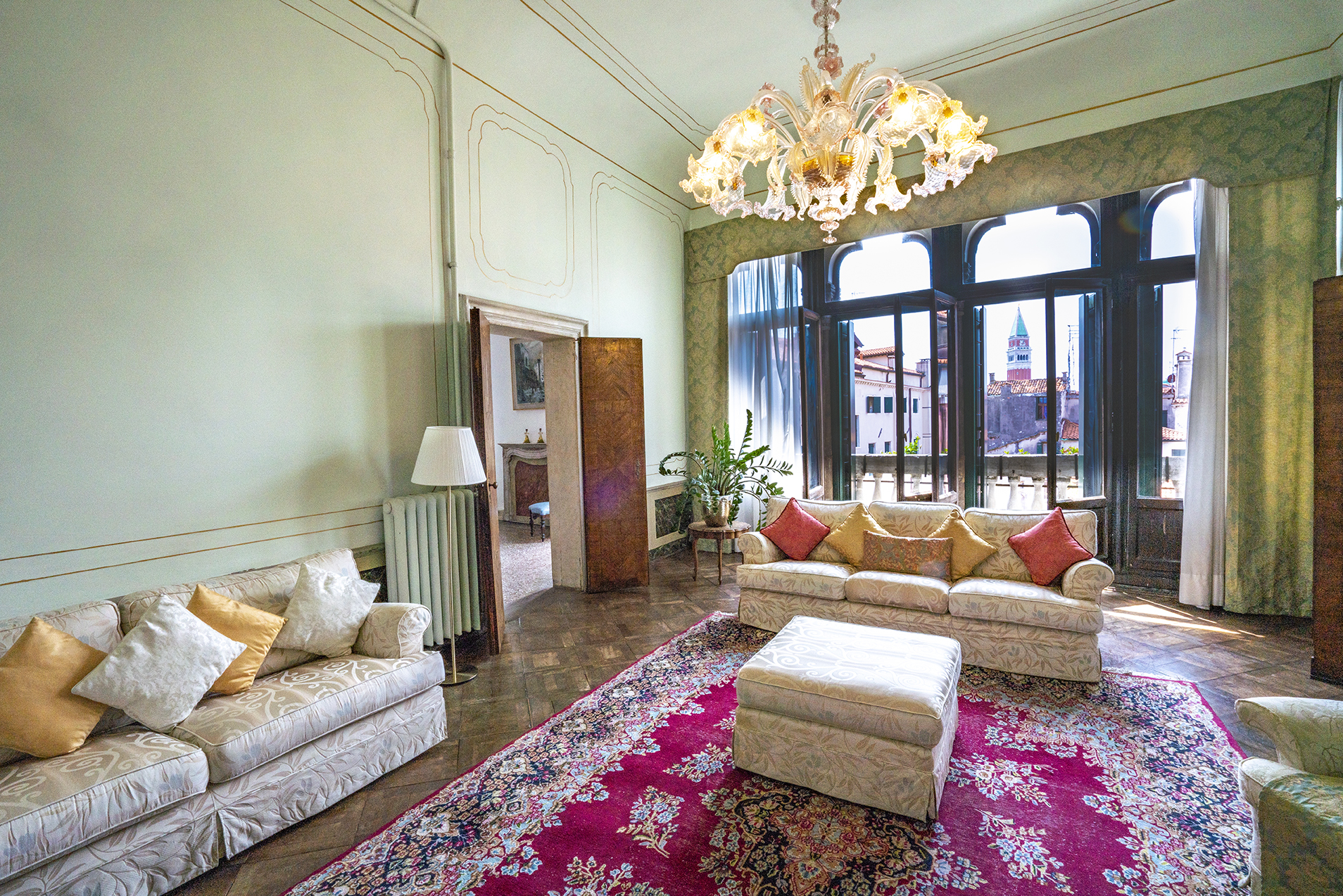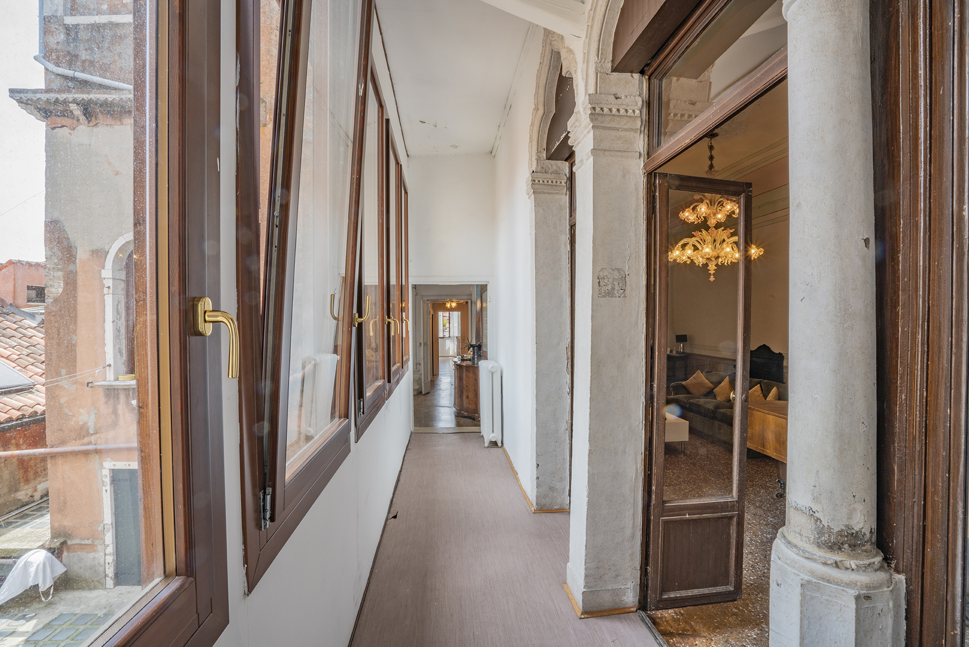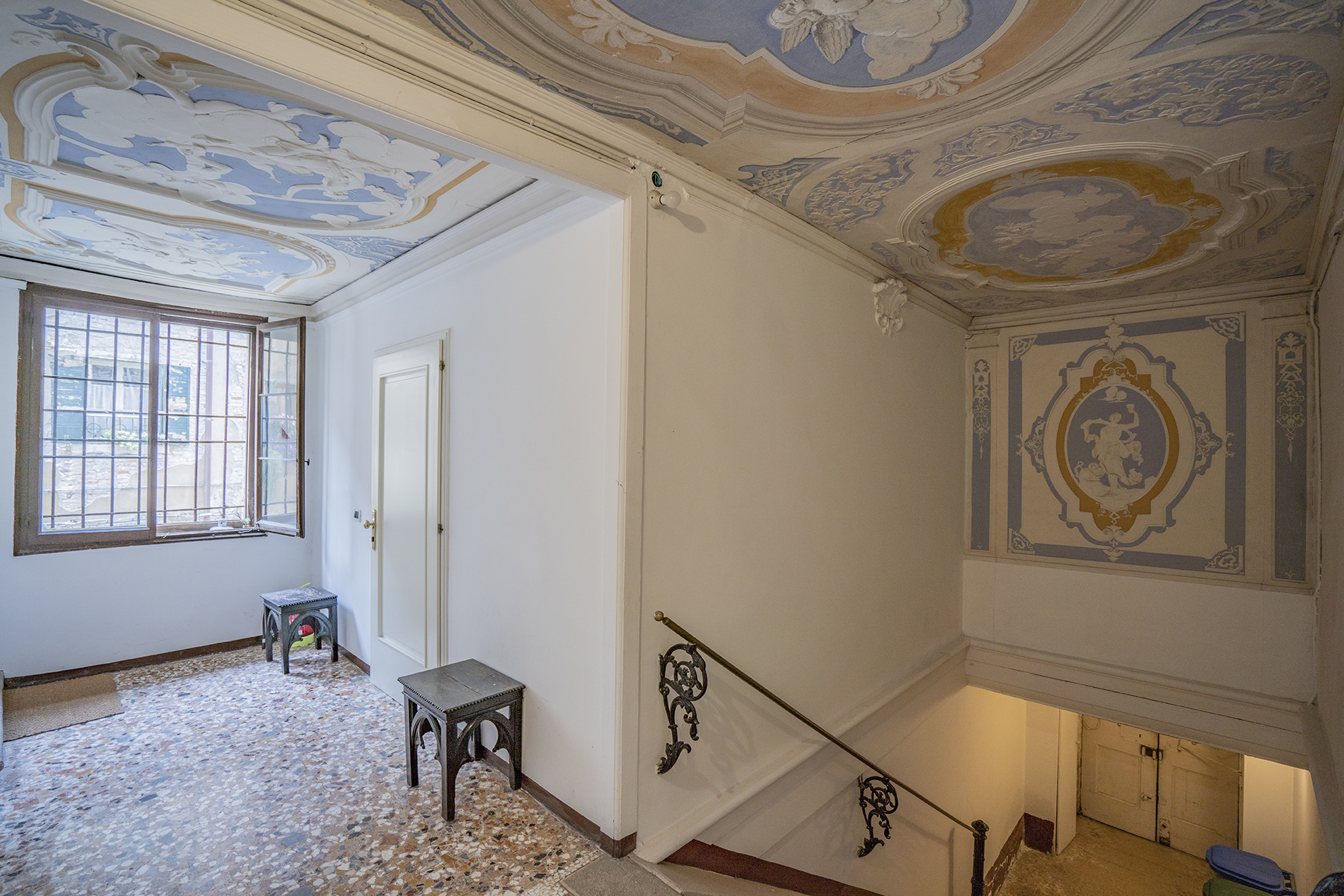 It boasts two beautiful Piano Nobile with spacious rooms, Quadrifora – four light windows – opened onto a balconies enjoying view over a beautiful canal, Venetian terrazzo and parquet floorings, and high ceilings.
