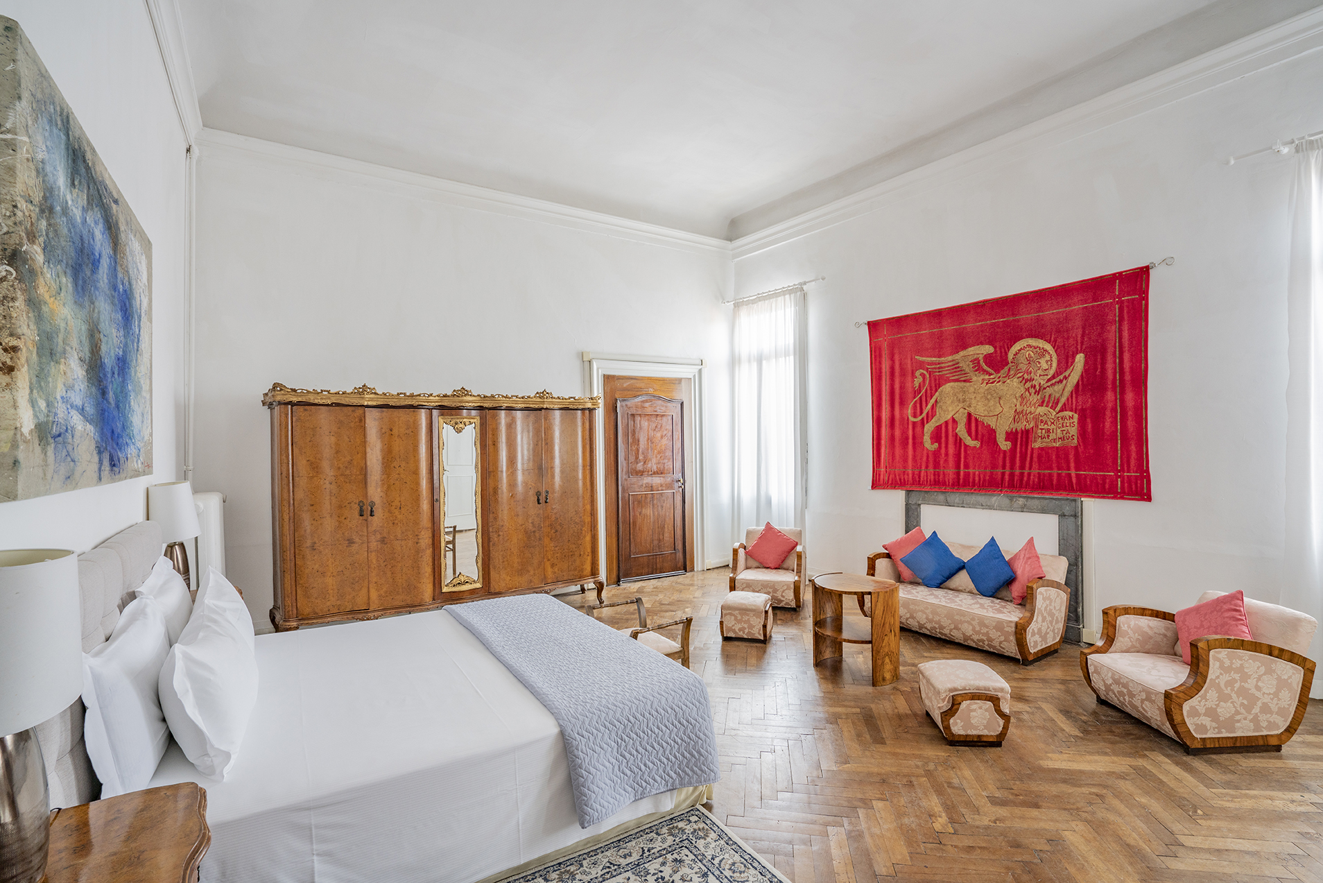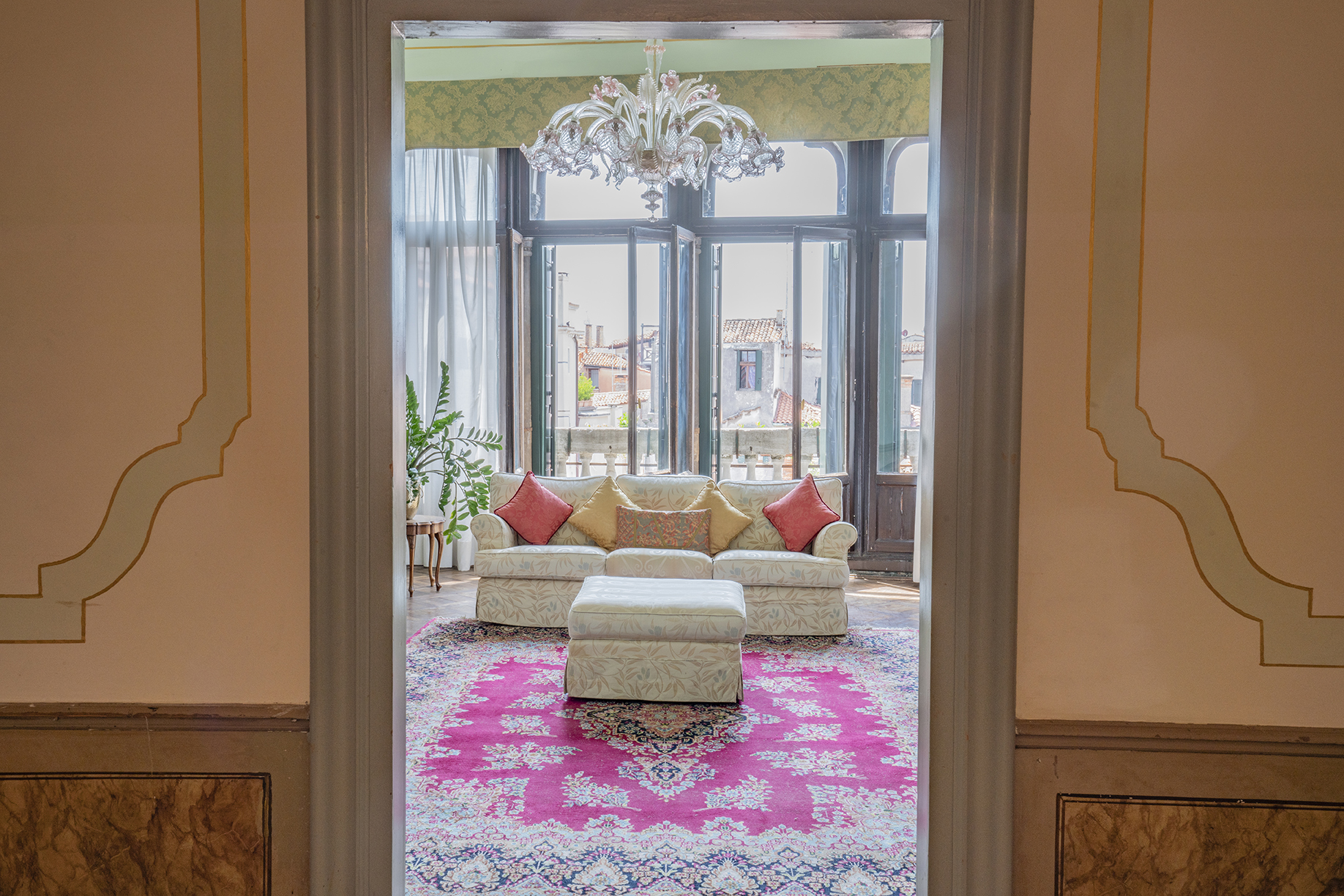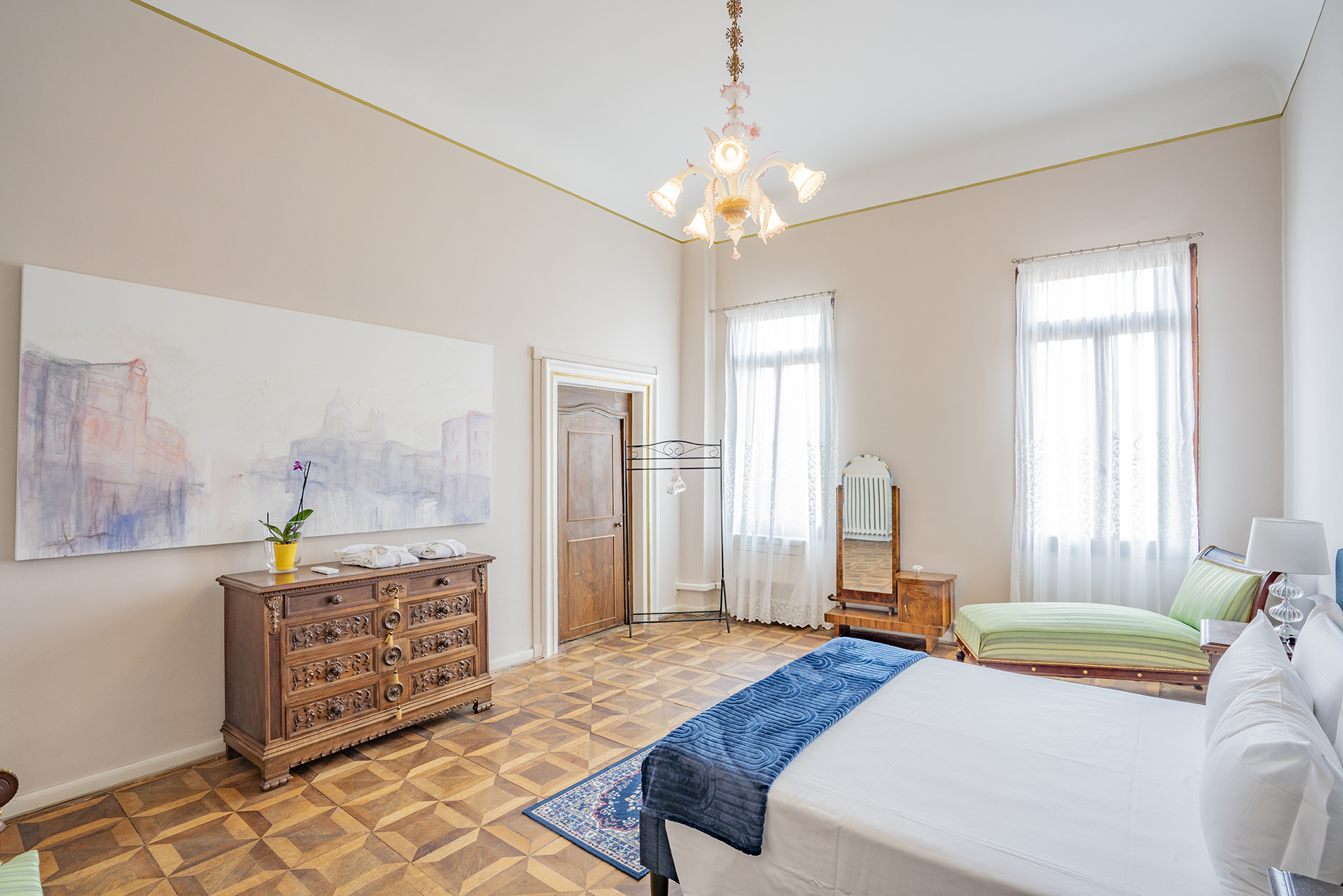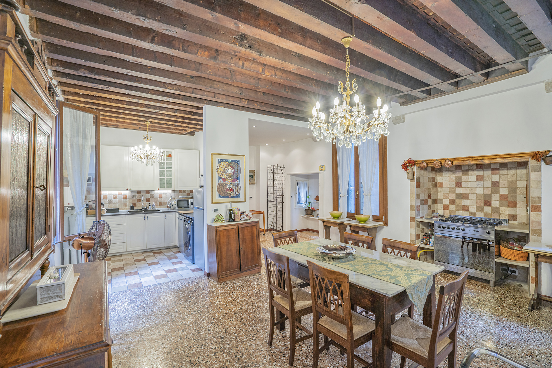 It boasts two beautiful Piano Nobile with spacious rooms, Quadrifora – four light windows – opened onto a balconies enjoying view over a beautiful canal, Venetian terrazzo and parquet floorings, and high ceilings.