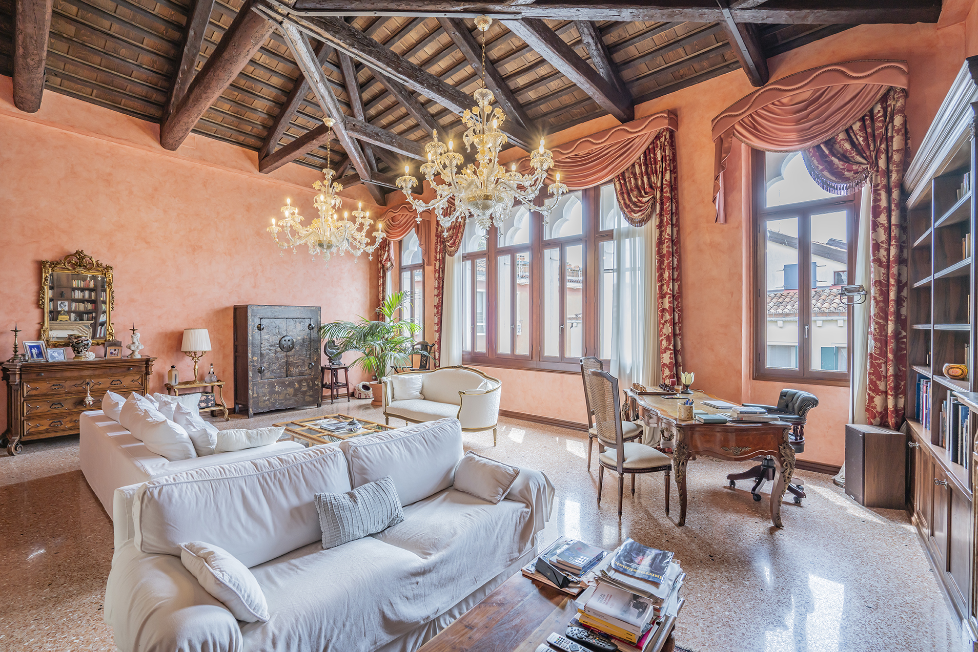 In a historic 16th century building, in the Cannaregio area, we find this Luxurious and Refined Piano Nobile apartment on two levels located on the second and third floors of the building.