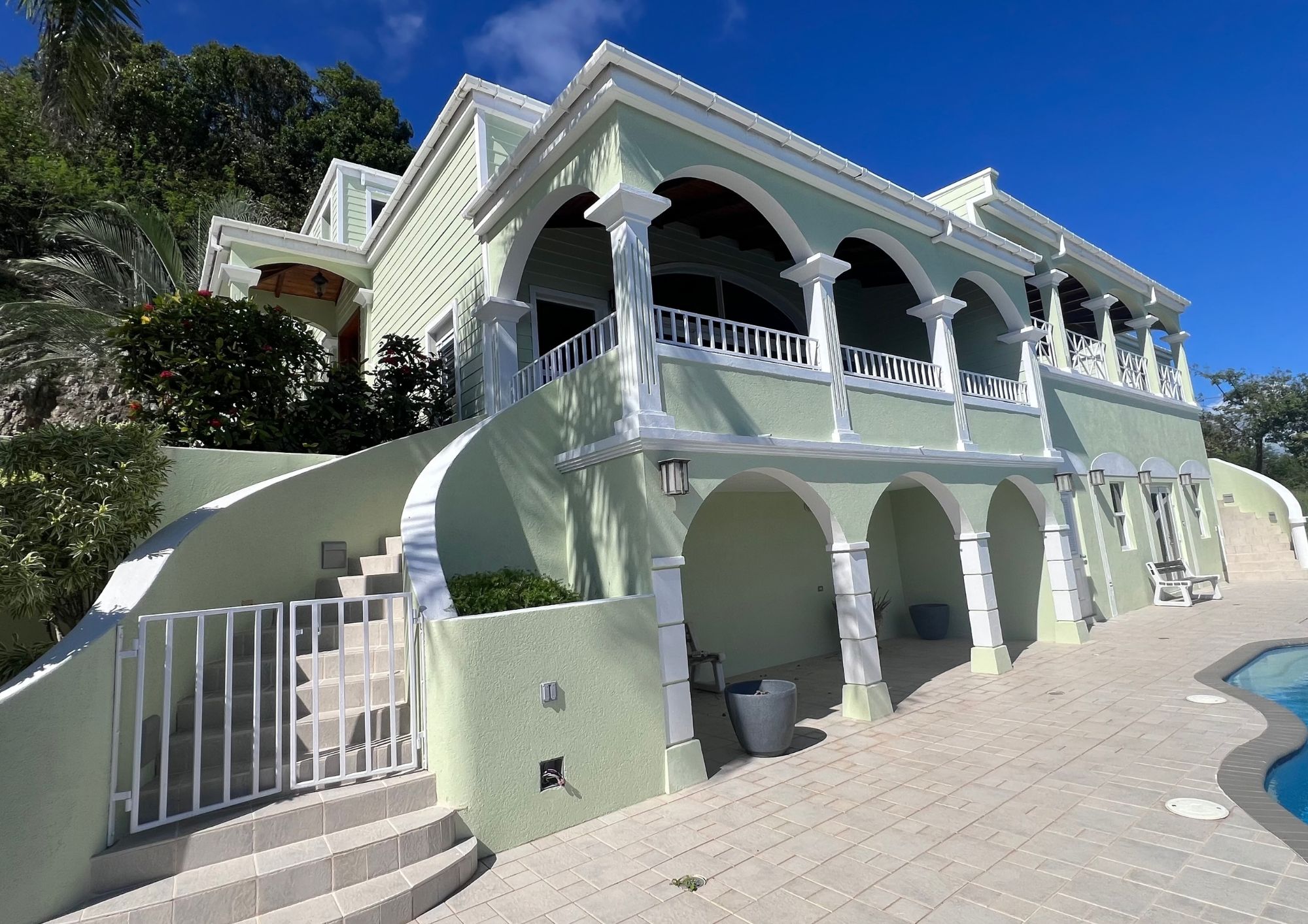 Havers House sits gracefully at the heart of a 1.05-acre parcel, surrounded by lush green spaces providing exceptional privacy and serenity. Nestled within Havers Estate—a private residential enclave on the south side of Tortola—this remarkable five-bedroom residence offers both seclusion and convenience, just a short drive from Nanny Cay and the West End Ferry Terminal. The gated property features mature, beautifully landscaped gardens and charming stone pathways, creating a peaceful and inviting island retreat.