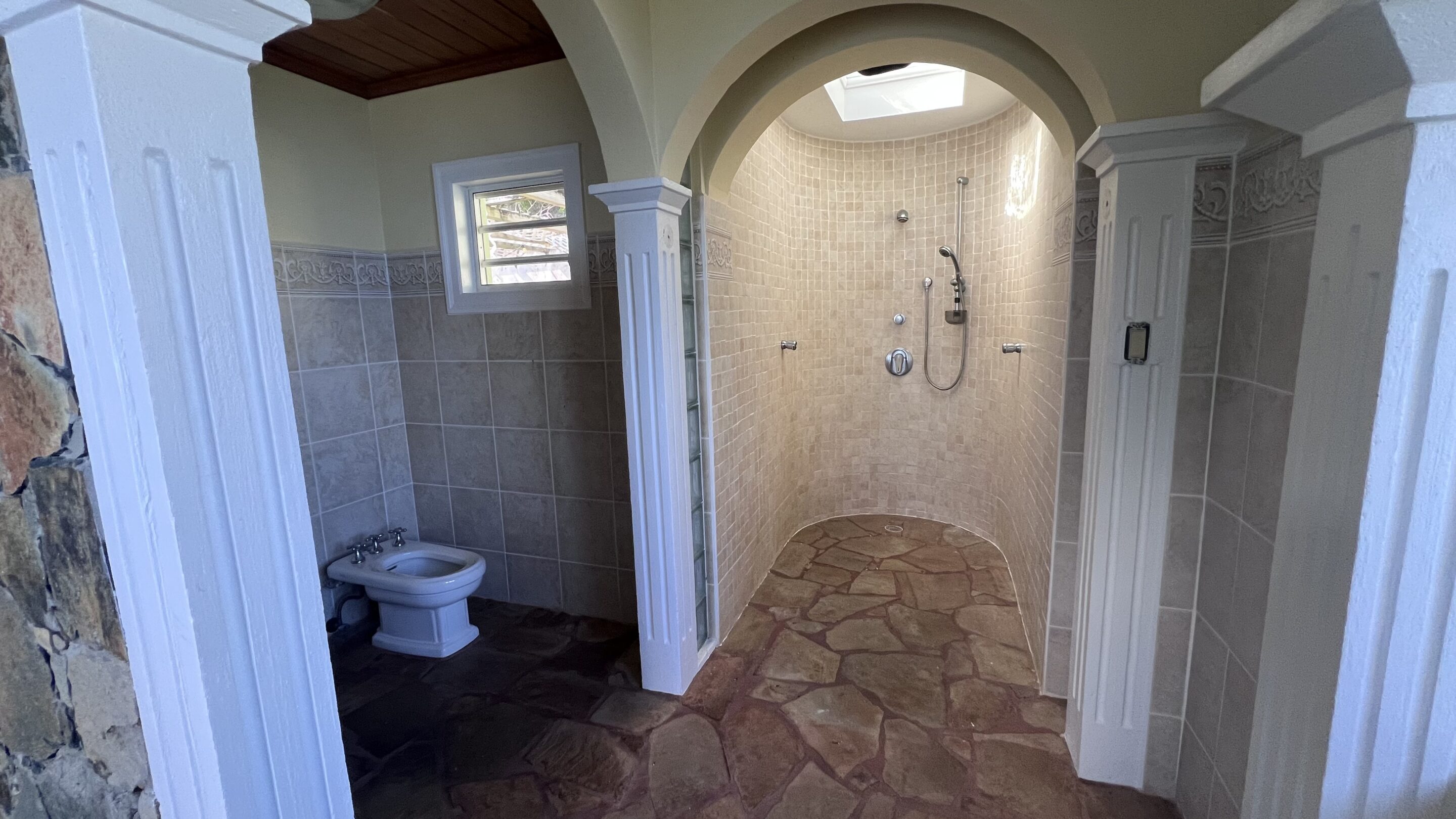 The lower level provides a private, self-contained guest wing with two further bedrooms, an open-plan living, kitchen and dining area, and its own balcony overlooking the pool. Within the landscaped gardens, stone steps lead to a covered pagoda—ideal as an additional dining space or outdoor lounge area—while a workshop and laundry room are conveniently adjacent. The property also includes a paved driveway with turning area and a large generator. Bespoke hardwood cabinetry and doors, paired with elegant, tiled floors throughout, lend a refined modern feel, while the relaxed charm of the Caribbean remains ever present, Havers House presents a rare opportunity to own a truly exceptional island home.