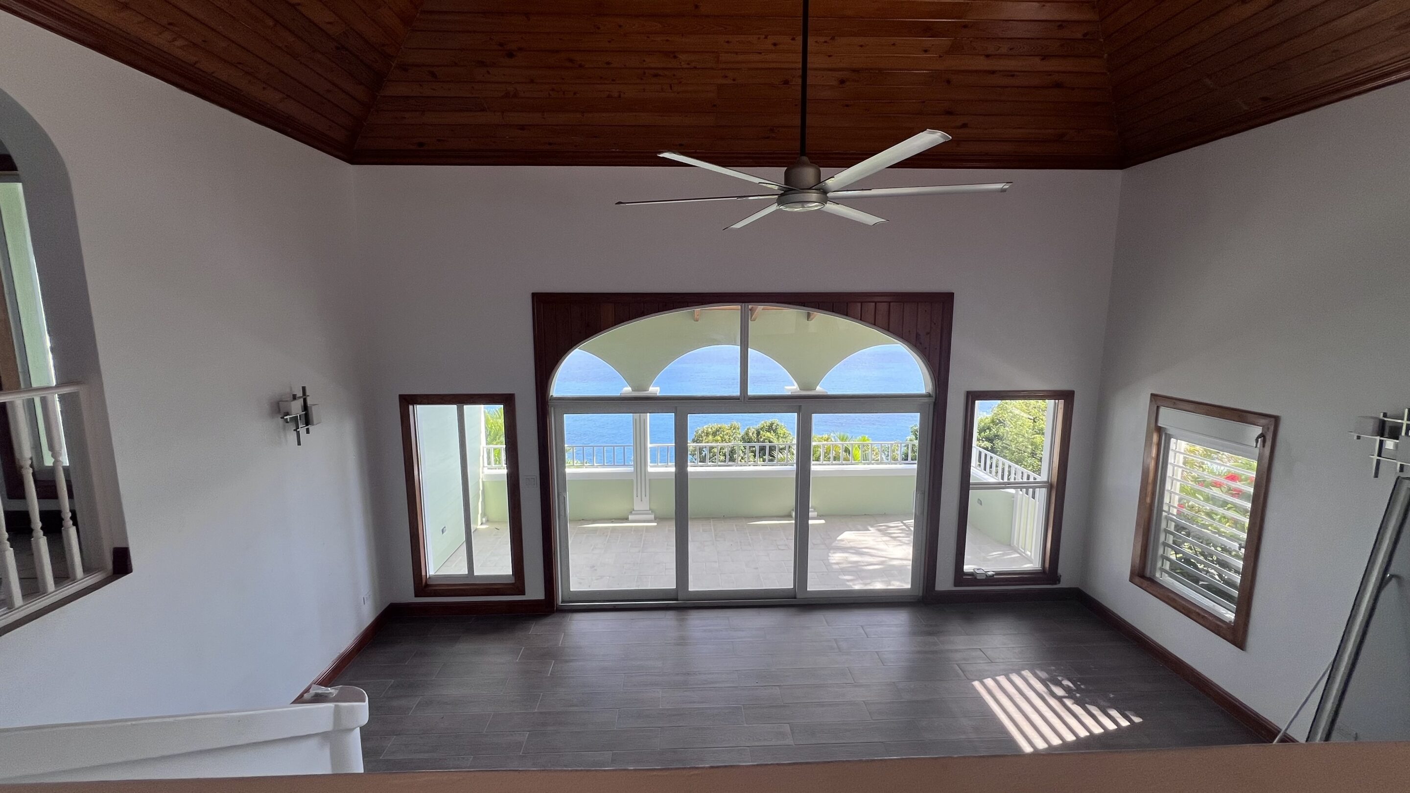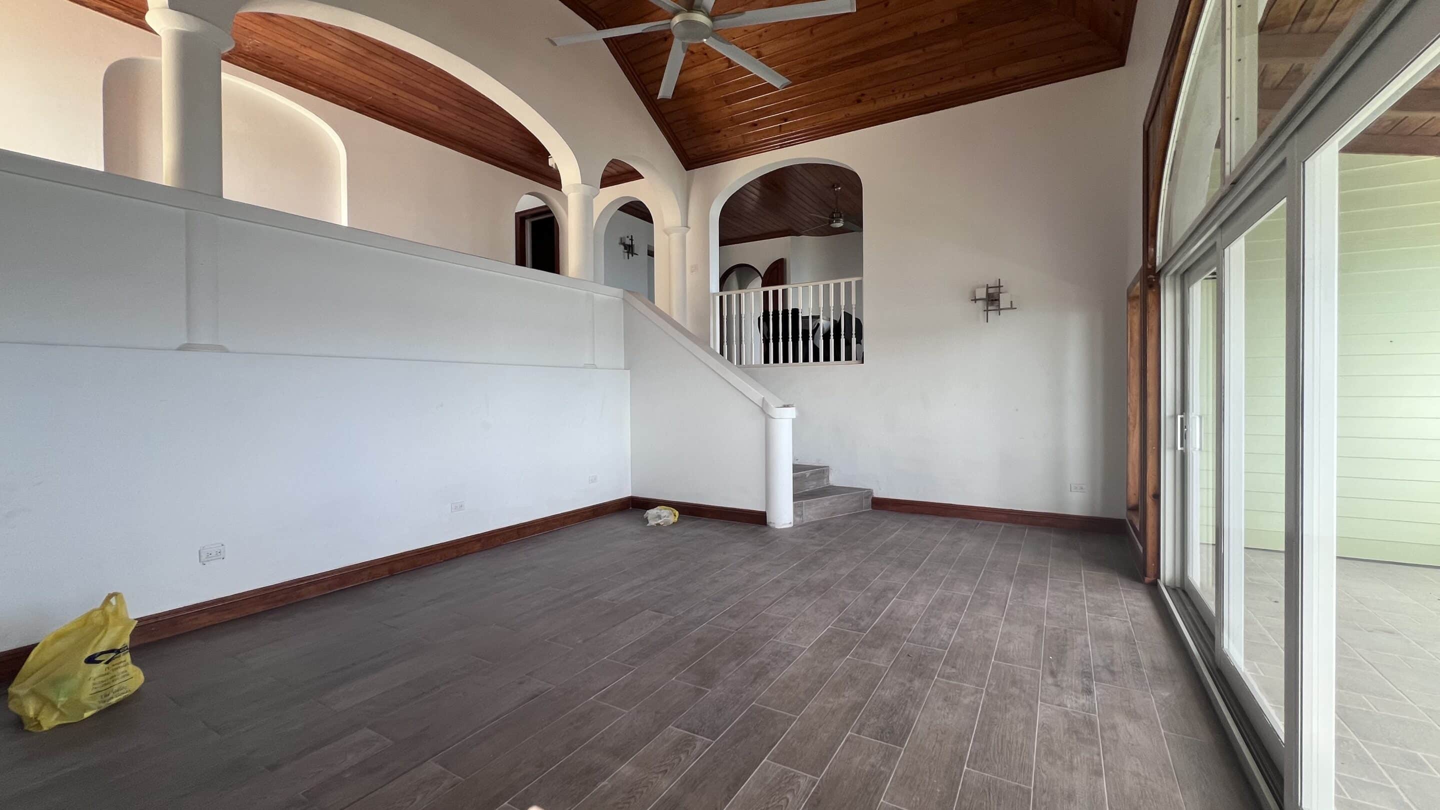 This exquisite and elegant family residence showcases a contemporary floor plan designed for effortless island living. Expansive open-plan living and dining areas flow seamlessly onto generously covered verandas, creating a natural harmony between indoor and outdoor spaces. The upper level features a three-bedroom main residence centered around a stunning great room with an open-concept fully equipped kitchen, and dining area. Soaring cathedral ceilings and beautifully tiled floors create a grand yet welcoming setting for both everyday living and entertaining.