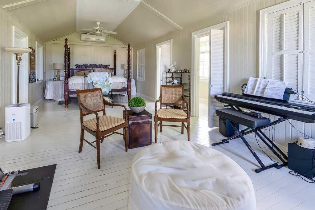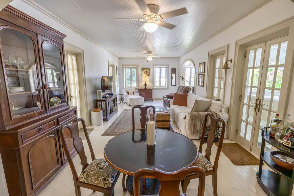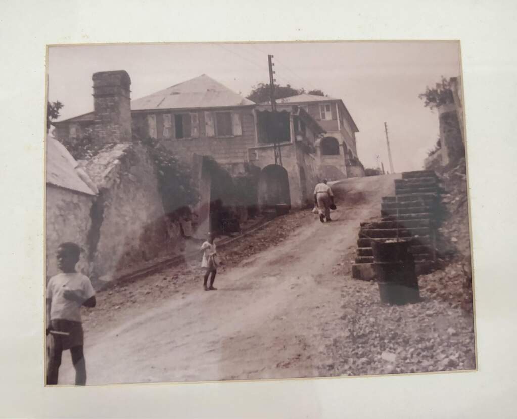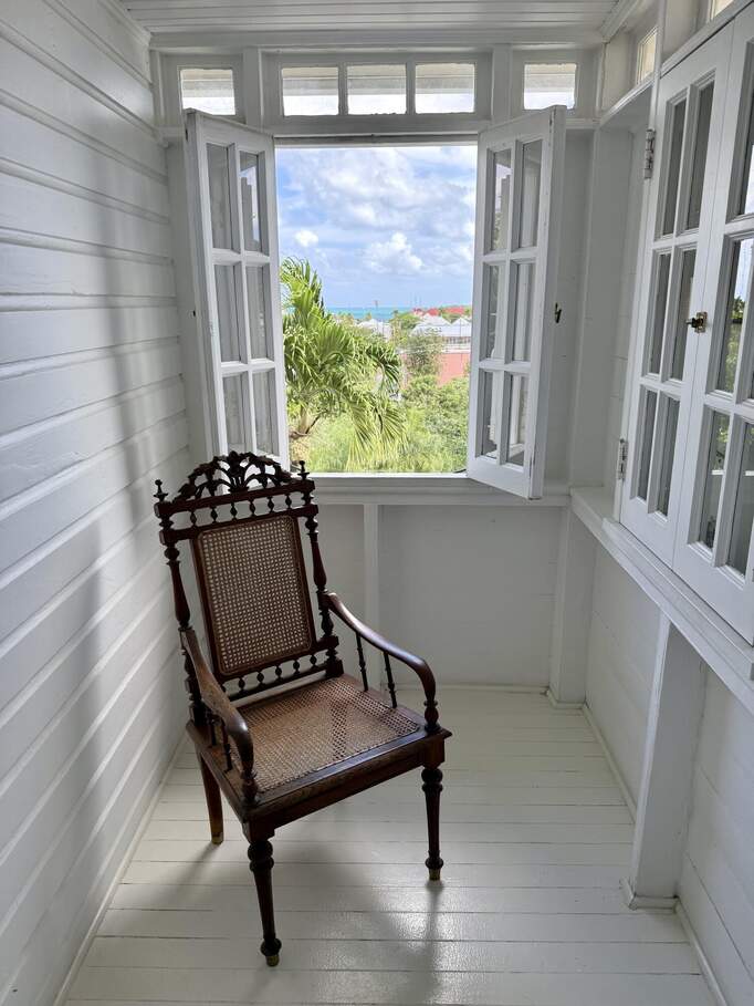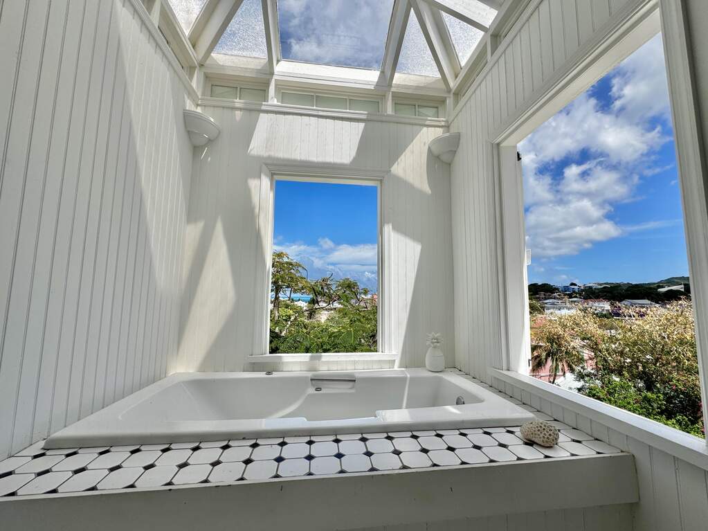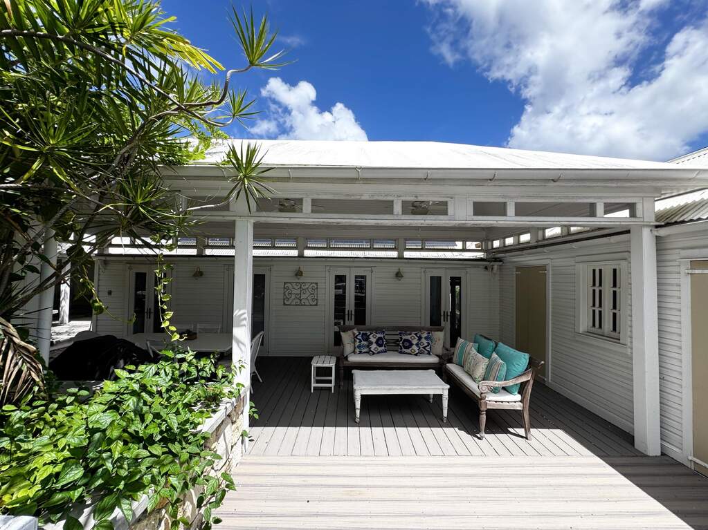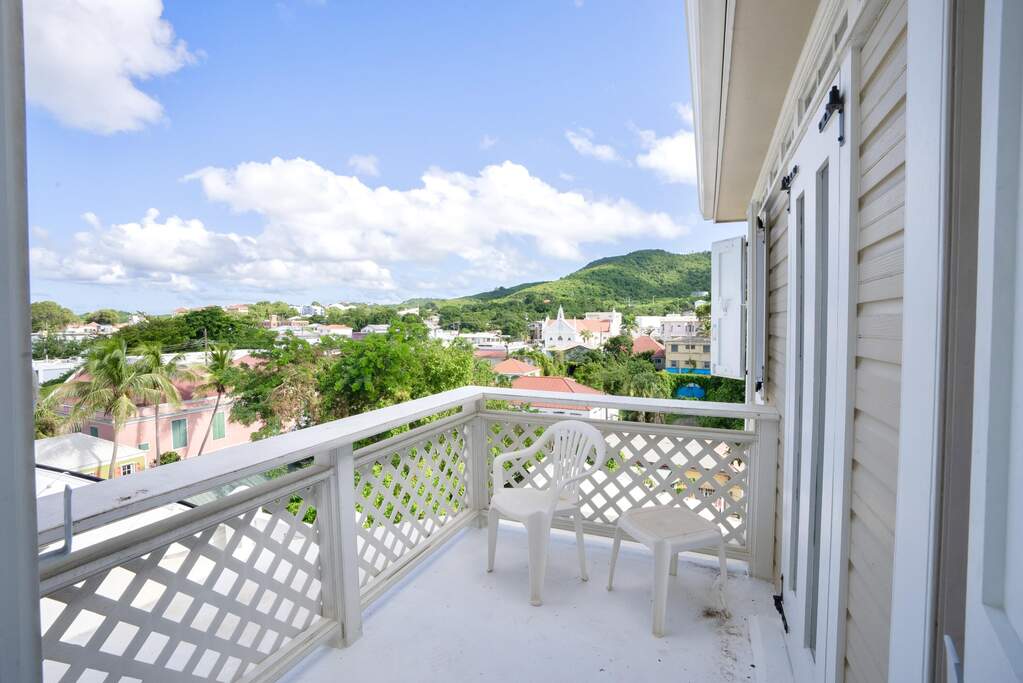 A rare walled historic estate with harbor views located in the heart of Christiansted. Anchored by a five bedroom 4 bathroom main residence showcasing classic Danish West Indian architecture, the estate also includes a separate 1 bedroom 1 bathroom 18th-century guest cottage and multiple parcels that offer exceptional flexibility and development potential. Enclosed by tall masonry walls and centered around a lush tropical courtyard and pool, the property provides an uncommon level of privacy and tranquility for an in town historic offering. This grand historic main residence reflects classic Caribbean craftsmanship dating to the early 1800s. Distinctive features include reclaimed ship timbers used as structural floor joists, ballast-brick staircases, five French doors encircling the living room, a signature Captain's Watch, a tiled front porch entry with classic rocking chairs, and an expansive veranda overlooking the harbor. Recently refinished living room floors and split-system air conditioning enhance everyday comfort while preserving the home's historic character. A poolside tool/workroom with plumbing offers the opportunity to create an additional guest suite. Rare for in-town Christiansted properties, the estate also includes two garages and valuable off-street parking. Set across multiple parcels, this rare in-town landholding includes a separate 18th-century guest cottage of approximately 1,000 square feet, along with an additional large walled and gated lot currently utilized for parking. The lot features historic ruins, an 18th-century foundation and cistern, and architectural plans available for further development, while currently providing additional off-street parking. In total, the property offers more than 6,000 square feet of flexible space, allowing for a wide range of residential, hospitality, or commercial configurations. Located within an Enterprise Development Zone, the property may qualify for meaningful tax incentives, positioning it as both a lifestyle investment and a strategic business opportunity. Zoned B-2, the property lends itself to numerous commercial or mixed-use options. Possibilities include a boutique hotel, bed-and-breakfast, spa, medical or professional offices, gallery, retail space, or restaurant. The guest cottage has operated successfully as an Airbnb for many years and offers excellent potential for hospitality or dining use while maintaining the main residence for private living, or vice versa. Its proven short-term rental history further underscores the income potential. Modern upgrades complement the historic character throughout the property. Substantial structural and cosmetic improvements have been completed, along with nearly all-new appliances and air-conditioning systems. The kitchen features a Smeg gas range with pot filler, ventilation hood, and adjoining walk-in pantry. The spacious primary suite includes double walk-in closets and a large open primary bath with skylight and a spa soaking tub with new pump. Outdoor spaces are equally compelling. Between the main residence and guest cottage lies an exceptional private tropical courtyard centered around the pool, with the two residences gracefully framing the space while maintaining privacy from one another. Extensive Trex decking surrounds the pool and extends along the walkway to the cottage, enhancing the courtyard setting and creating a seamless indoor-outdoor living experience. The courtyard also features a separate street entrance, providing convenient access and additional flexibility for guests or boutique hospitality use. The entire compound is enclosed by tall masonry walls, reinforcing the privacy and seclusion rarely found in an in-town property. Energy and infrastructure upgrades add further value and resilience. Solar panels with dual Power walls supply a substantial portion of the main home's power, supported by separate generators for each residence. Independent cisterns, UV filtration systems, tankless water heaters with electric backup, separate meters, and a wireless cistern monitoring system provide efficiency and reliability.