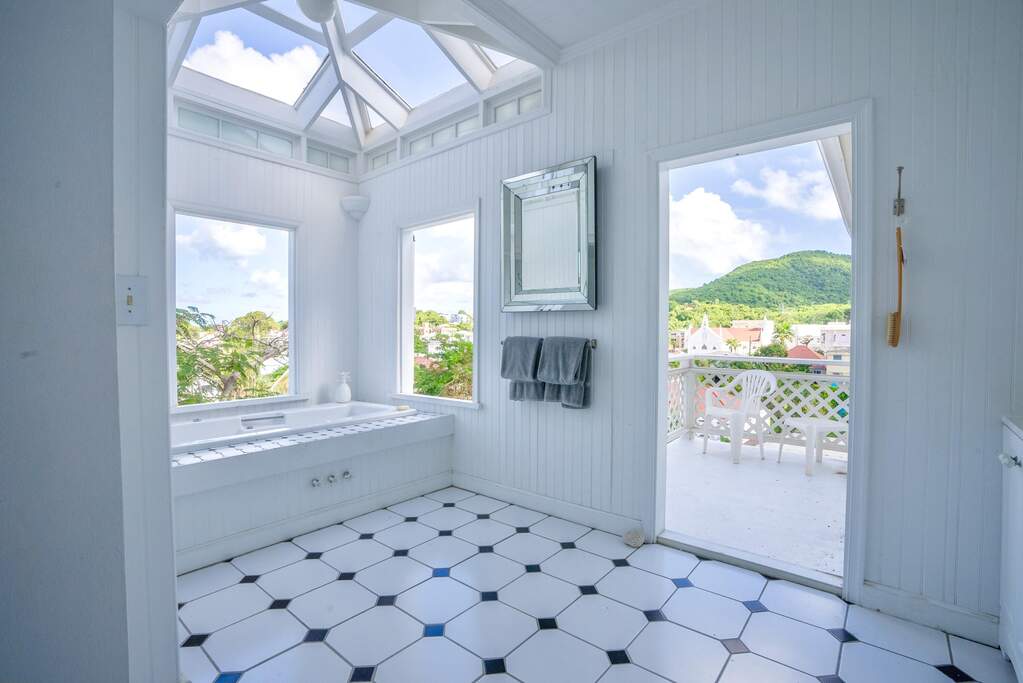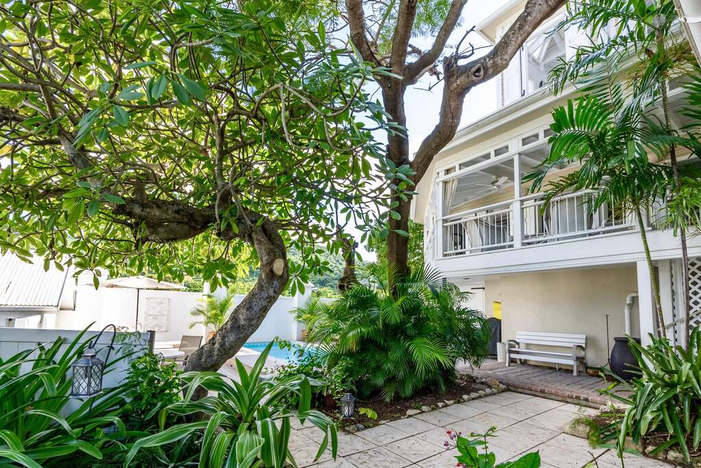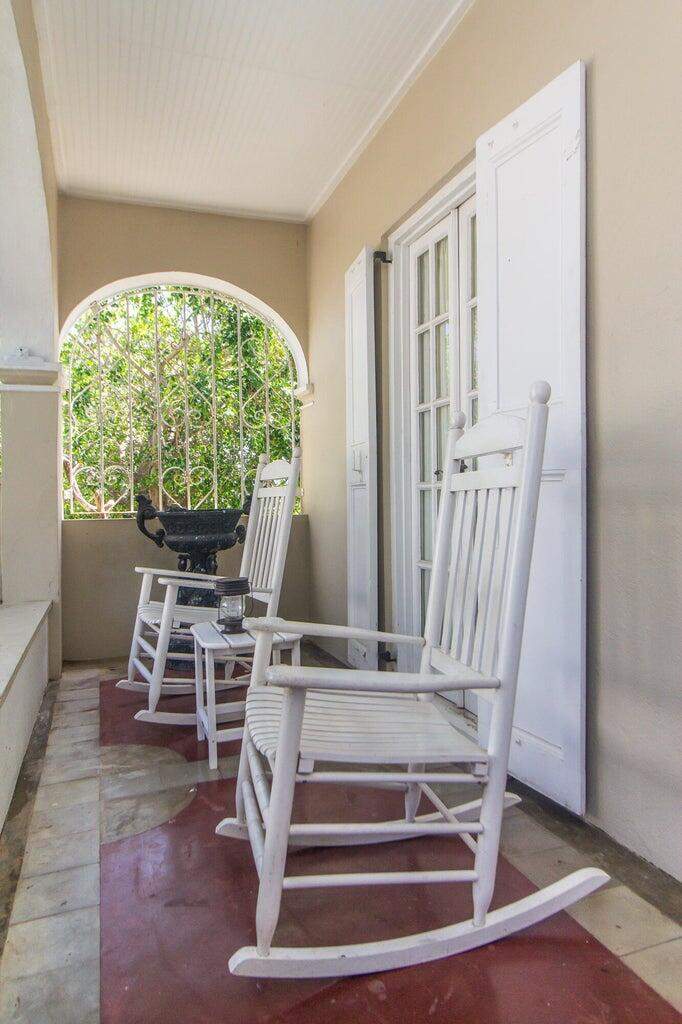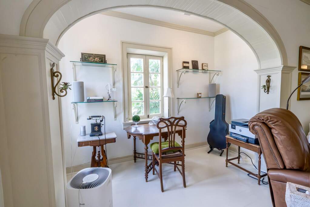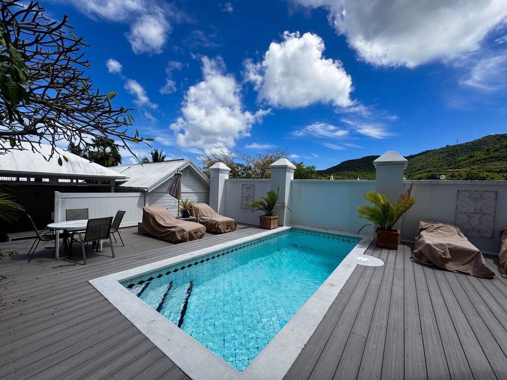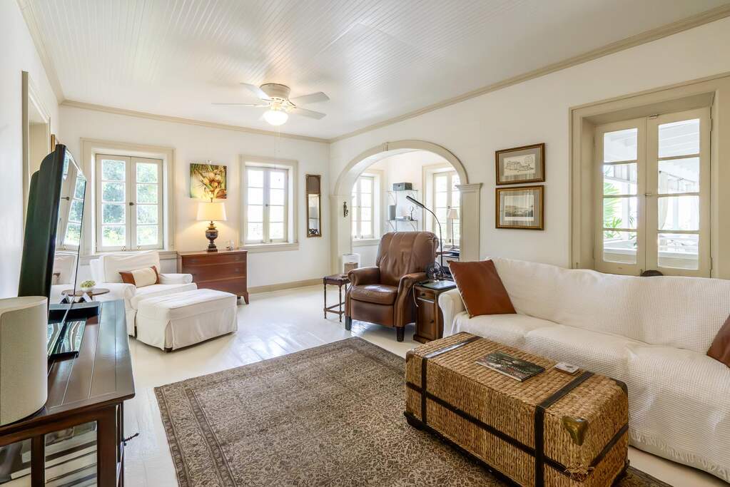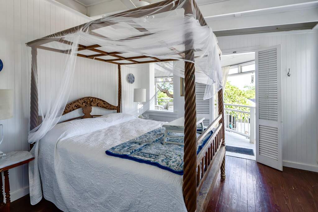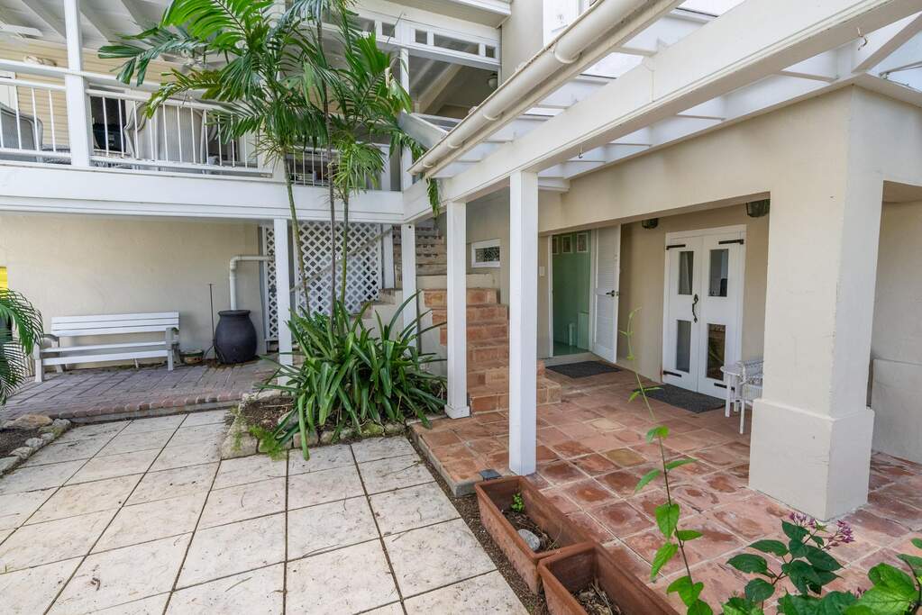A rare walled historic estate with harbor views located in the heart of Christiansted. Anchored by a five bedroom 4 bathroom main residence showcasing classic Danish West Indian architecture, the estate also includes a separate 1 bedroom 1 bathroom 18th-century guest cottage and multiple parcels that offer exceptional flexibility and development potential. Enclosed by tall masonry walls and centered around a lush tropical courtyard and pool, the property provides an uncommon level of privacy and tranquility for an in town historic offering. This grand historic main residence reflects classic Caribbean craftsmanship dating to the early 1800s. Distinctive features include reclaimed ship timbers used as structural floor joists, ballast-brick staircases, five French doors encircling the living room, a signature Captain's Watch, a tiled front porch entry with classic rocking chairs, and an expansive veranda overlooking the harbor. Recently refinished living room floors and split-system air conditioning enhance everyday comfort while preserving the home's historic character. A poolside tool/workroom with plumbing offers the opportunity to create an additional guest suite. Rare for in-town Christiansted properties, the estate also includes two garages and valuable off-street parking. Set across multiple parcels, this rare in-town landholding includes a separate 18th-century guest cottage of approximately 1,000 square feet, along with an additional large walled and gated lot currently utilized for parking. The lot features historic ruins, an 18th-century foundation and cistern, and architectural plans available for further development, while currently providing additional off-street parking. In total, the property offers more than 6,000 square feet of flexible space, allowing for a wide range of residential, hospitality, or commercial configurations. Located within an Enterprise Development Zone, the property may qualify for meaningful tax incentives, positioning it as both a lifestyle investment and a strategic business opportunity. Zoned B-2, the property lends itself to numerous commercial or mixed-use options. Possibilities include a boutique hotel, bed-and-breakfast, spa, medical or professional offices, gallery, retail space, or restaurant. The guest cottage has operated successfully as an Airbnb for many years and offers excellent potential for hospitality or dining use while maintaining the main residence for private living, or vice versa. Its proven short-term rental history further underscores the income potential. Modern upgrades complement the historic character throughout the property. Substantial structural and cosmetic improvements have been completed, along with nearly all-new appliances and air-conditioning systems. The kitchen features a Smeg gas range with pot filler, ventilation hood, and adjoining walk-in pantry. The spacious primary suite includes double walk-in closets and a large open primary bath with skylight and a spa soaking tub with new pump. Outdoor spaces are equally compelling. Between the main residence and guest cottage lies an exceptional private tropical courtyard centered around the pool, with the two residences gracefully framing the space while maintaining privacy from one another. Extensive Trex decking surrounds the pool and extends along the walkway to the cottage, enhancing the courtyard setting and creating a seamless indoor-outdoor living experience. The courtyard also features a separate street entrance, providing convenient access and additional flexibility for guests or boutique hospitality use. The entire compound is enclosed by tall masonry walls, reinforcing the privacy and seclusion rarely found in an in-town property. Energy and infrastructure upgrades add further value and resilience. Solar panels with dual Power walls supply a substantial portion of the main home's power, supported by separate generators for each residence. Independent cisterns, UV filtration systems, tankless water heaters with electric backup, separate meters, and a wireless cistern monitoring system provide efficiency and reliability.