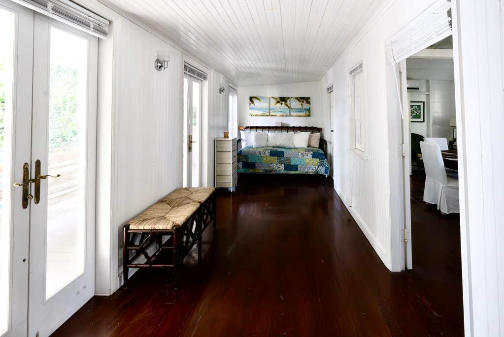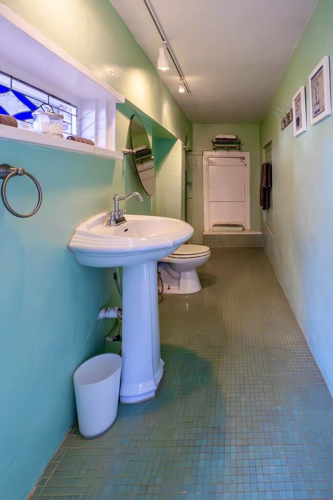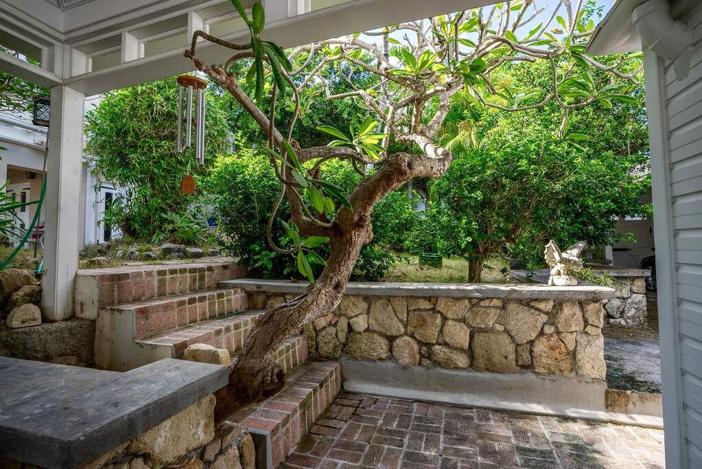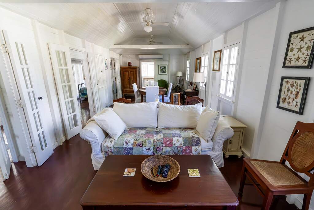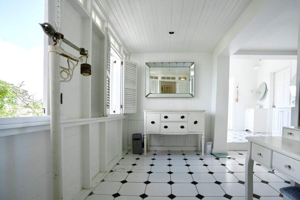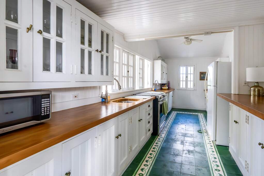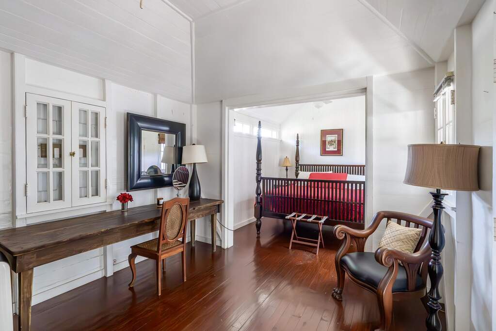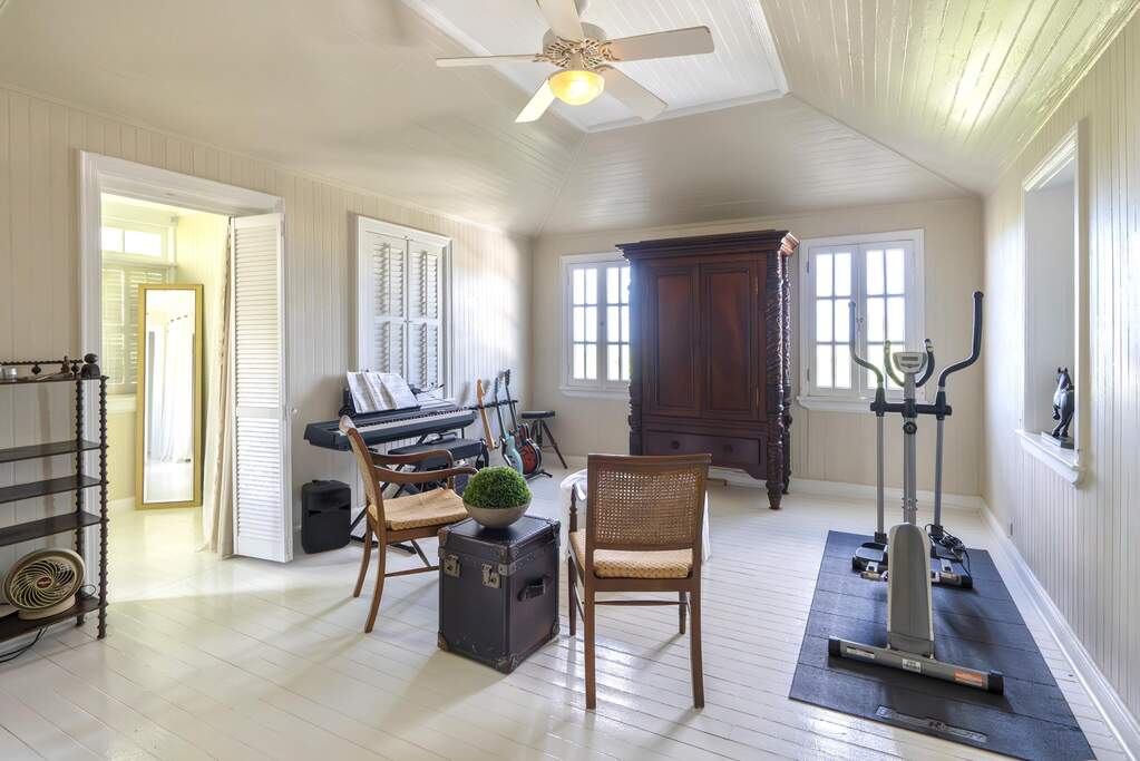 A rare walled historic estate with harbor views located in the heart of Christiansted. Anchored by a five bedroom 4 bathroom main residence showcasing classic Danish West Indian architecture, the estate also includes a separate 1 bedroom 1 bathroom 18th-century guest cottage and multiple parcels that offer exceptional flexibility and development potential. Enclosed by tall masonry walls and centered around a lush tropical courtyard and pool, the property provides an uncommon level of privacy and tranquility for an in town historic offering. This grand historic main residence reflects classic Caribbean craftsmanship dating to the early 1800s. Distinctive features include reclaimed ship timbers used as structural floor joists, ballast-brick staircases, five French doors encircling the living room, a signature Captain's Watch, a tiled front porch entry with classic rocking chairs, and an expansive veranda overlooking the harbor. Recently refinished living room floors and split-system air conditioning enhance everyday comfort while preserving the home's historic character. A poolside tool/workroom with plumbing offers the opportunity to create an additional guest suite. Rare for in-town Christiansted properties, the estate also includes two garages and valuable off-street parking. Set across multiple parcels, this rare in-town landholding includes a separate 18th-century guest cottage of approximately 1,000 square feet, along with an additional large walled and gated lot currently utilized for parking. The lot features historic ruins, an 18th-century foundation and cistern, and architectural plans available for further development, while currently providing additional off-street parking. In total, the property offers more than 6,000 square feet of flexible space, allowing for a wide range of residential, hospitality, or commercial configurations. Located within an Enterprise Development Zone, the property may qualify for meaningful tax incentives, positioning it as both a lifestyle investment and a strategic business opportunity. Zoned B-2, the property lends itself to numerous commercial or mixed-use options. Possibilities include a boutique hotel, bed-and-breakfast, spa, medical or professional offices, gallery, retail space, or restaurant. The guest cottage has operated successfully as an Airbnb for many years and offers excellent potential for hospitality or dining use while maintaining the main residence for private living, or vice versa. Its proven short-term rental history further underscores the income potential. Modern upgrades complement the historic character throughout the property. Substantial structural and cosmetic improvements have been completed, along with nearly all-new appliances and air-conditioning systems. The kitchen features a Smeg gas range with pot filler, ventilation hood, and adjoining walk-in pantry. The spacious primary suite includes double walk-in closets and a large open primary bath with skylight and a spa soaking tub with new pump. Outdoor spaces are equally compelling. Between the main residence and guest cottage lies an exceptional private tropical courtyard centered around the pool, with the two residences gracefully framing the space while maintaining privacy from one another. Extensive Trex decking surrounds the pool and extends along the walkway to the cottage, enhancing the courtyard setting and creating a seamless indoor-outdoor living experience. The courtyard also features a separate street entrance, providing convenient access and additional flexibility for guests or boutique hospitality use. The entire compound is enclosed by tall masonry walls, reinforcing the privacy and seclusion rarely found in an in-town property. Energy and infrastructure upgrades add further value and resilience. Solar panels with dual Power walls supply a substantial portion of the main home's power, supported by separate generators for each residence. Independent cisterns, UV filtration systems, tankless water heaters with electric backup, separate meters, and a wireless cistern monitoring system provide efficiency and reliability.