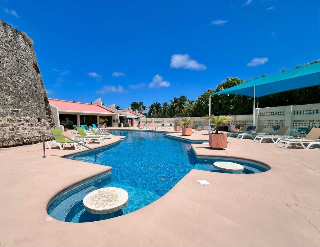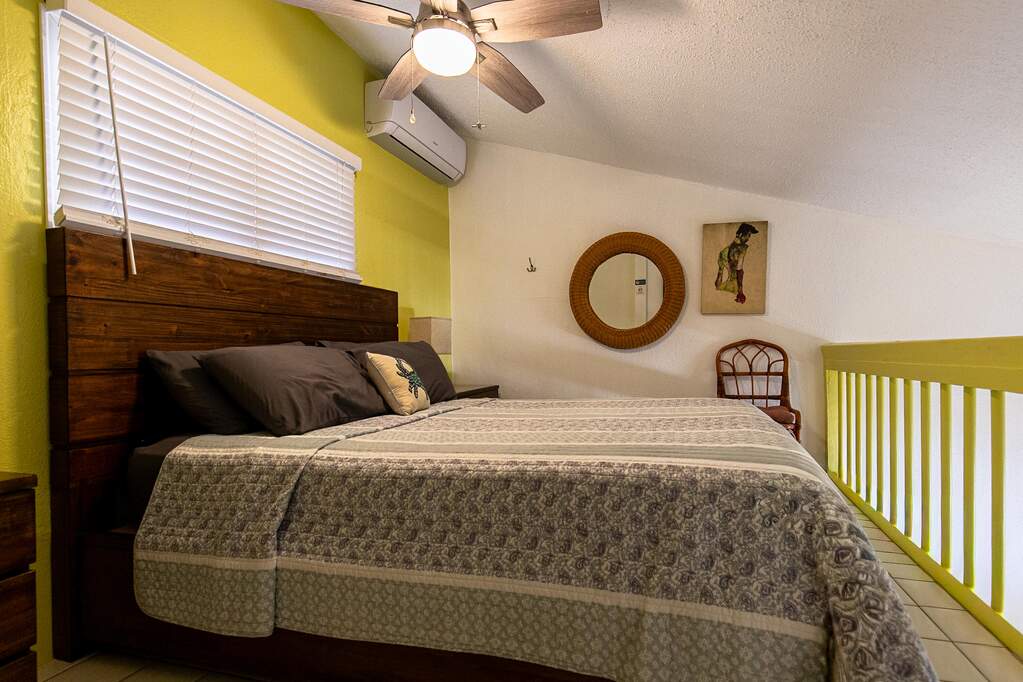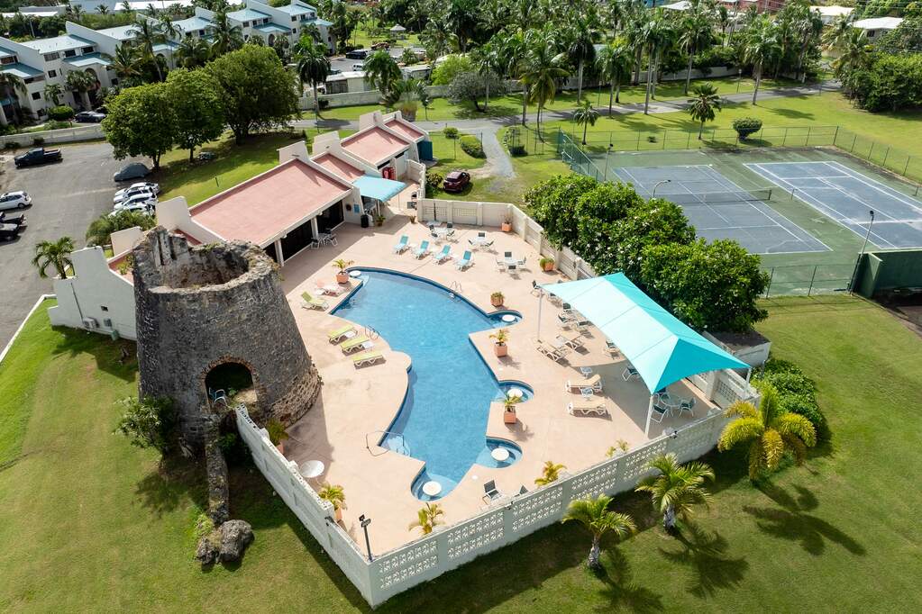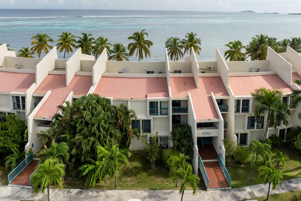 Wake up to the ocean at this loft-style beachfront condo at Sugar Beach. From the covered deck, soak in views of the sand, sea, Buck Island and beyond. The open living area is designed for easy island living with counter seating, dining space and relaxed lounge seating, while the loft bedroom offers a quiet retreat. A/C, washer/dryer and updated furnishings make it move-in ready or rental-ready. Step outside to swim at the beach or the resort-style pool, play tennis or explore the grounds with historic ruins. Sugar Beach is a well-managed waterfront community, ideal for a personal hideaway or rental property with authentic Caribbean charm.
