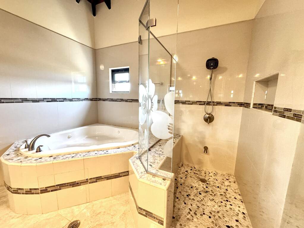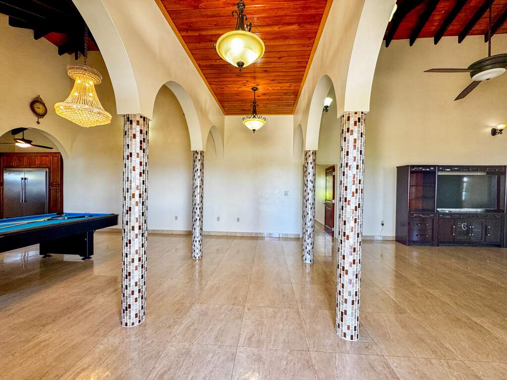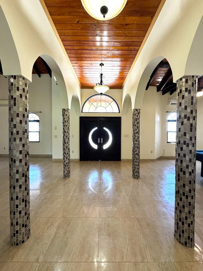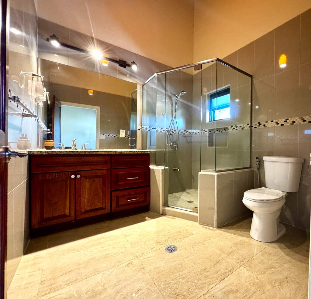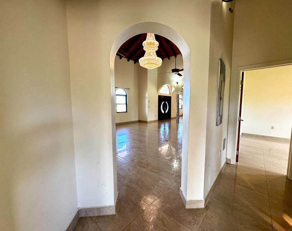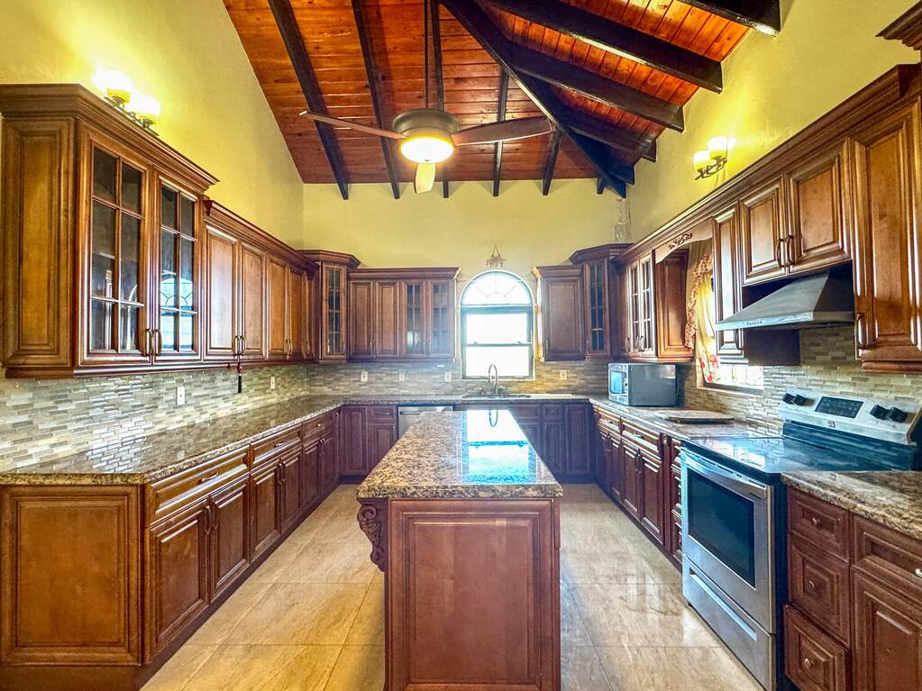 Gorgeous turn key property in the gated community of Enfield Green. Located on St. Croix's south shore, this spacious 4 bedroom, 3 bathroom home sits on 0.67 acres with stunning views of the Caribbean Sea. Built in 2017 the home was designed with both comfort and durability in mind. Adorned with high end finishes, a custom oak wood kitchen with granite countertops, stainless steel appliances, updated bathrooms, porcelain tile throughout, gorgeous high vaulted Cypress wood ceilings, split A/Cs throughout, hurricane-resistant PGT vinyl windows, Galvalume roof, built-in security cameras, and 22 KW diesel generator with automatic transfer switch, this property combines elegant modern living with practical island features. Step inside the elegant entryway to a grand open floor plan with soaring high ceilings, gorgeous high end finishes, and custom chandeliers. A spacious open living and dining room creates a harmonious space for entertaining and relaxation filled with natural light bringing warmth and comfort to the home. The gourmet kitchen is the perfect place for entertaining, featuring stainless steel appliances, custom cabinetry and granite countertops. The home is adorned with two primary suites both with en suite bathrooms and spacious walk-in closets, plus two generously sized guest bedrooms with a shared bathroom for guests. Enjoy beautiful views of the Caribbean sea with cool breezes and warm golden sunsets from the cozy front porch. The spacious back patio is perfect for outdoor dining and relaxation, while the expansive backyard offers room for entertaining, gardening or simply enjoying the peaceful island life. Just minutes away from the airport, beaches, restaurants and historic Frederiksted, this beautiful modern home is the best of island living.