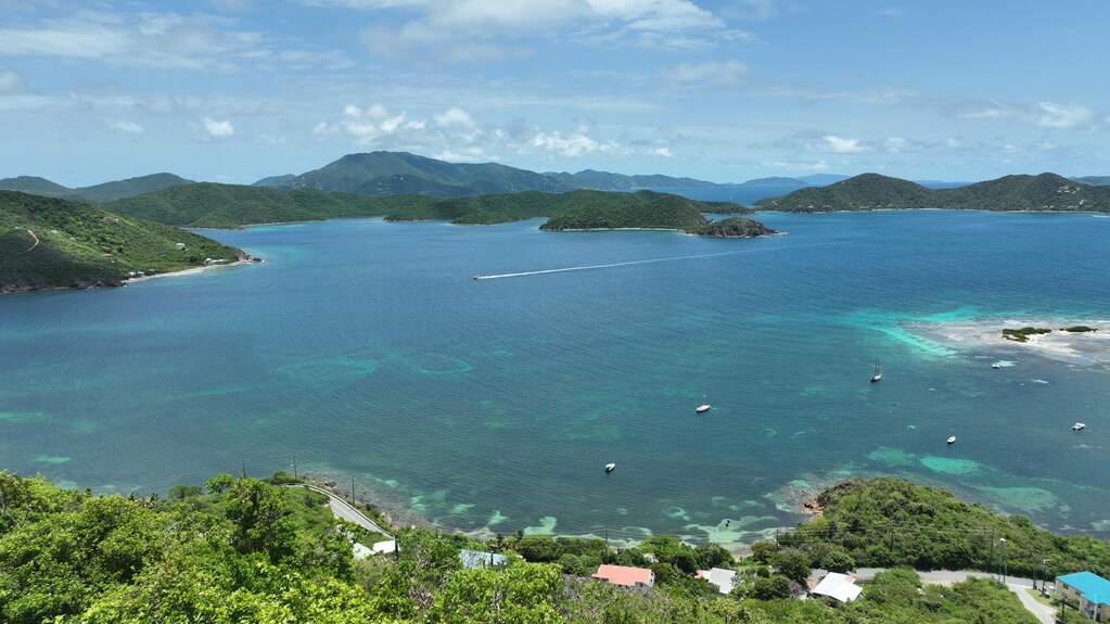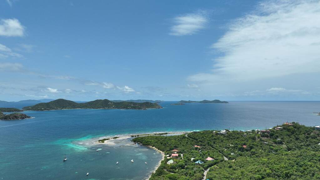 his unique 0.33-acre promontory parcel sits at approximately 450 feet above Johnson's Bay, offering sweeping 270-degree views of the Caribbean Sea, the British Virgin Islands, Hurricane Hole, and Coral Bay Harbor. A driveway has already been cut and a substantial gabion basket retaining wall installed, adding meaningful value and saving time for future construction. Access is via a driveway easement across the adjacent lot. Enjoy privacy, cooling breezes, and the faint sound of waves below. A rare opportunity to create your island retreat on St. John.