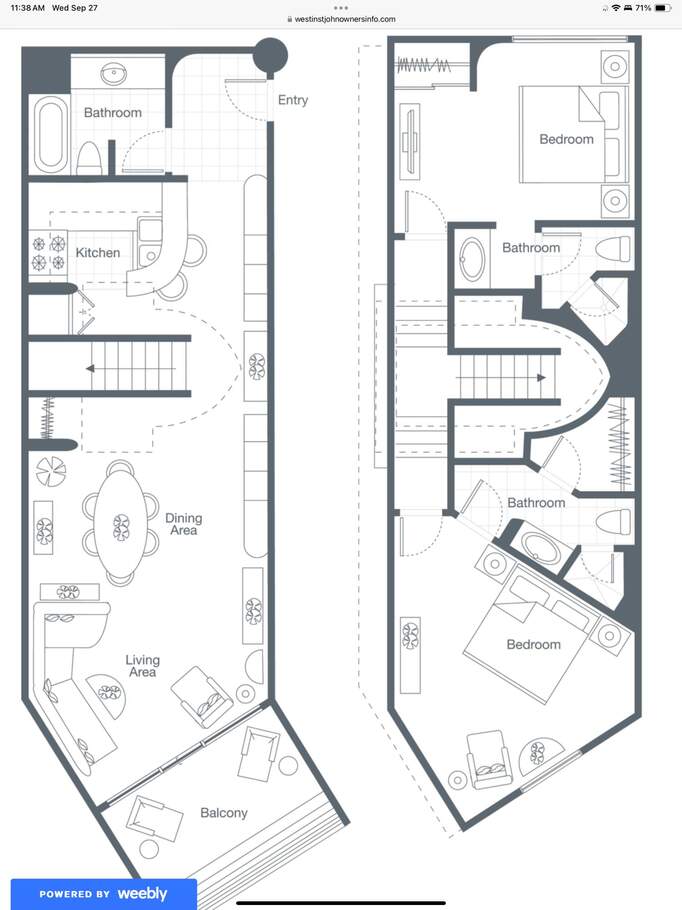 Ring in the New Year at the Westin! 2 level townhouse featuring 2 bedrooms, 3 bathrooms. Interior is fully air conditioned, kitchen, laundry and Heavenly beds. Outside enjoy your private balcony and use of the more quiet Hillside pools. Ownership includes use of all Westin amenities: beach facilities, tennis/pickleball, spa, pools, and restaurants. Check in/out is Saturday. Annual condo fee includes: Maintenance Fee, Replacement Fee & SNV Dues. Photos may not be of actual unit.