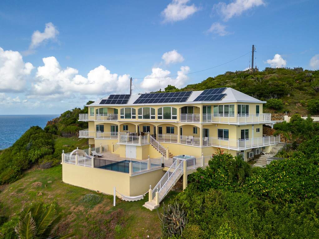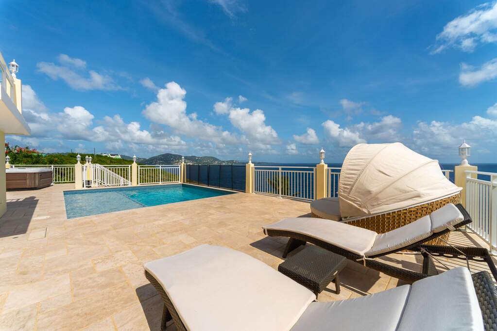Welcome to Casa Sirena, a stunning 4-bedroom, 5.5-bath villa nestled on Water Island in the US Virgin Islands. Find spacious living areas that flow seamlessly to an outdoor paradise, complete with a private pool, hammock, and jacuzzi-perfect for relaxation or entertaining. Indulge in the chef's kitchen, enjoy time in the game room, and savor wines in the dedicated wine room. The Sonos sound system, thoughtfully placed ice-makers, and beverage coolers throughout add to the homes convenience. Each bedroom boasts its own private balcony and breathtaking views. A gated driveway ensures seclusion, and the two golf carts included, makes island exploration effortless. With solar power and Tesla battery backup, the villa provides eco-friendly living with energy independence.