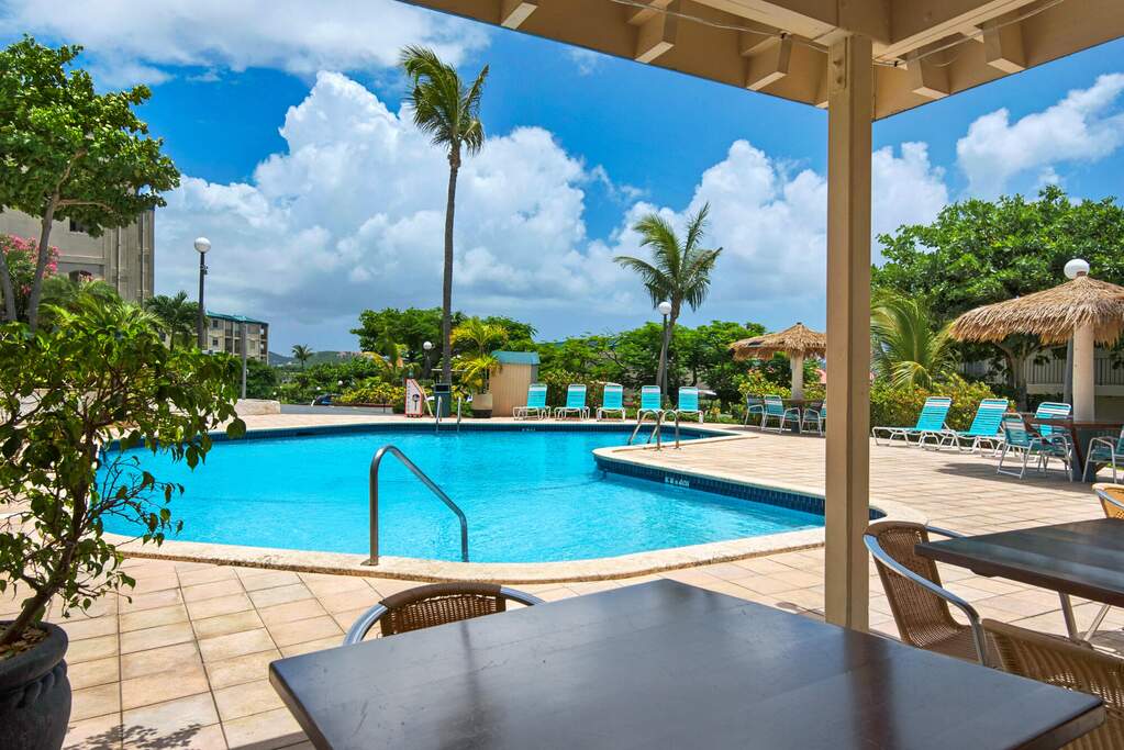 Conveniently placed close to the pool and moments from beautiful Sapphire Beach, this one-bedroom Sapphire Village unit is on the top floor of Tobago building. It offers a remodeled kitchen and bathroom, split AC units, front loading washer/dryer and on-demand water heater. Outside the patio enjoys stunning views over to the cays and St. John. Sapphire Village is gated with two pools and a restaurant, just a few minutes from Red Hook. You can also take advantage of the restaurants, bar, watersports etc. down at Sapphire Beach. Sapphire Village is a sought after location both for vacation rentals and full time residential living. The installation of a backup generator is under way.