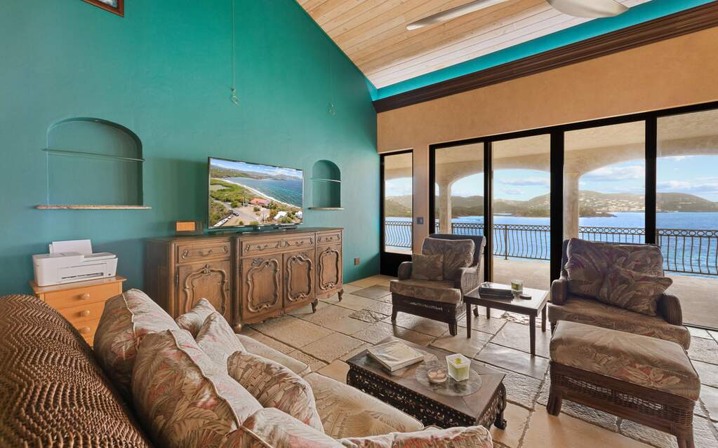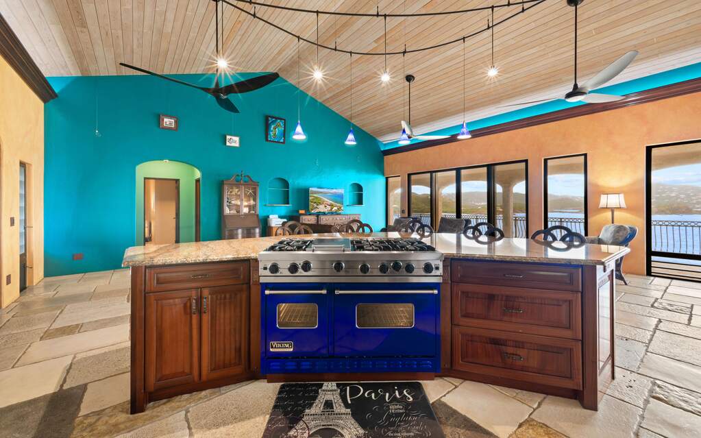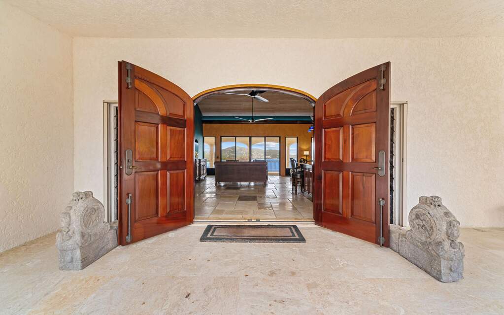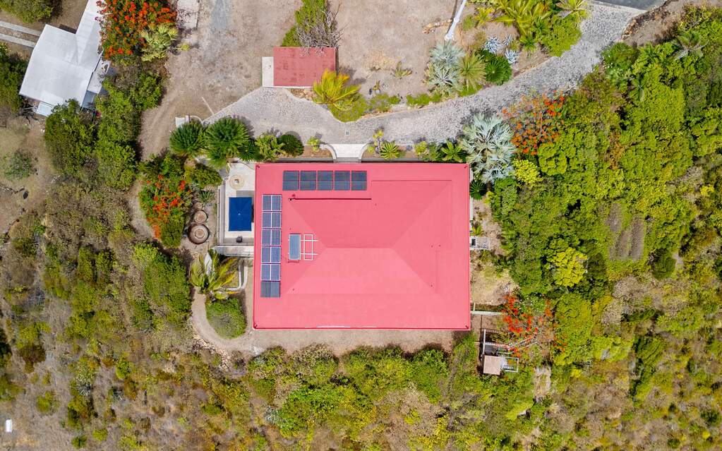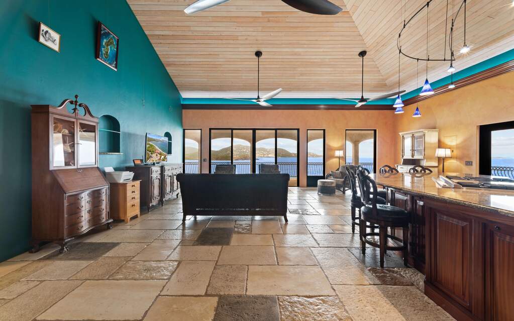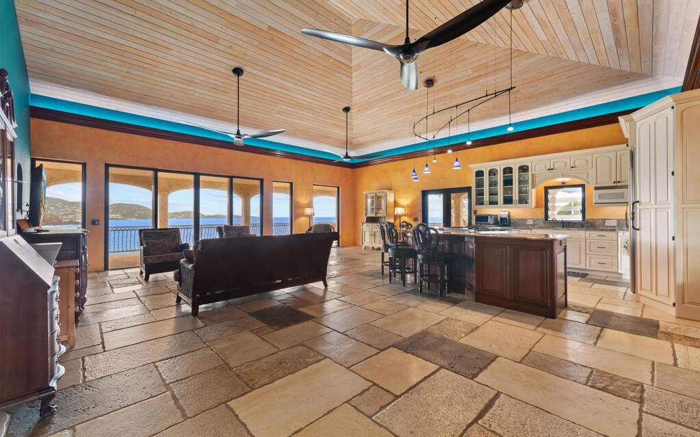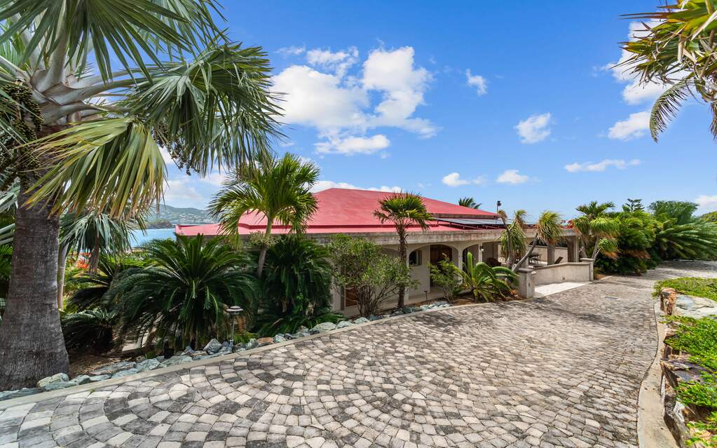 Meticulously engineered yet effortlessly livable, this Mediterranean-inspired villa at 29 Water Island was designed to embrace the Caribbean lifestyle while minimizing long-term maintenance. Solid concrete construction, an 8'' poured concrete and gunite roof, epoxy-coated rebar, and a coral stone plaster exterior provide enduring quality-allowing more time to enjoy island life and less time worrying about upkeep. Thoughtfully designed for comfort and independence, the home offers approximately 4,000 square feet of roof water collection, 35,000 gallons of cistern storage, solar panels, solar hot water, and a full battery backup system-supporting a relaxed, self-sufficient way of living. Inside, soaring pickled cypress ceilings, custom mahogany doors and cabinetry, and bronze-anodized windows and doors create a warm, timeless atmosphere that flows seamlessly to expansive covered coral stone decks, ideal for morning coffee, sunset dinners, and easy indoor-outdoor living. The chef's kitchen anchors the home with high-end Sub-Zero, Viking, and Miele appliances, custom mahogany cabinetry, and granite countertops - perfect for both everyday living and entertaining. The primary suite serves as a peaceful retreat with a spa-like bath finished in travertine and marble. A separate, fully self-contained apartment provides flexibility for guests, staff, or rental income. Completing the property are mature tropical landscaping with irrigation, a large finished concrete workshop and storage building, approved (renewable) permits for a garage and privacy walls, and thoughtfully designed access throughout. A rare opportunity to own a beautifully built island home that balances enduring craftsmanship with effortless Caribbean living.