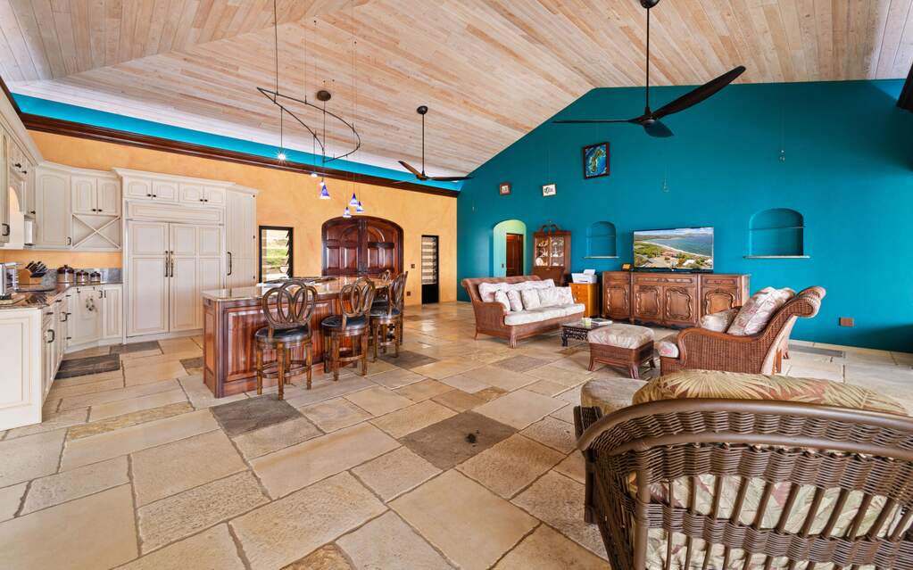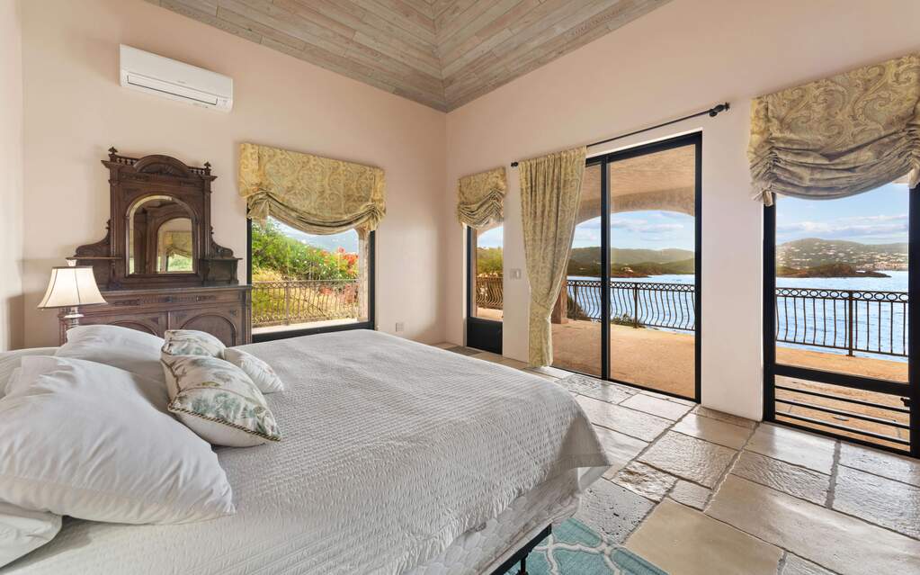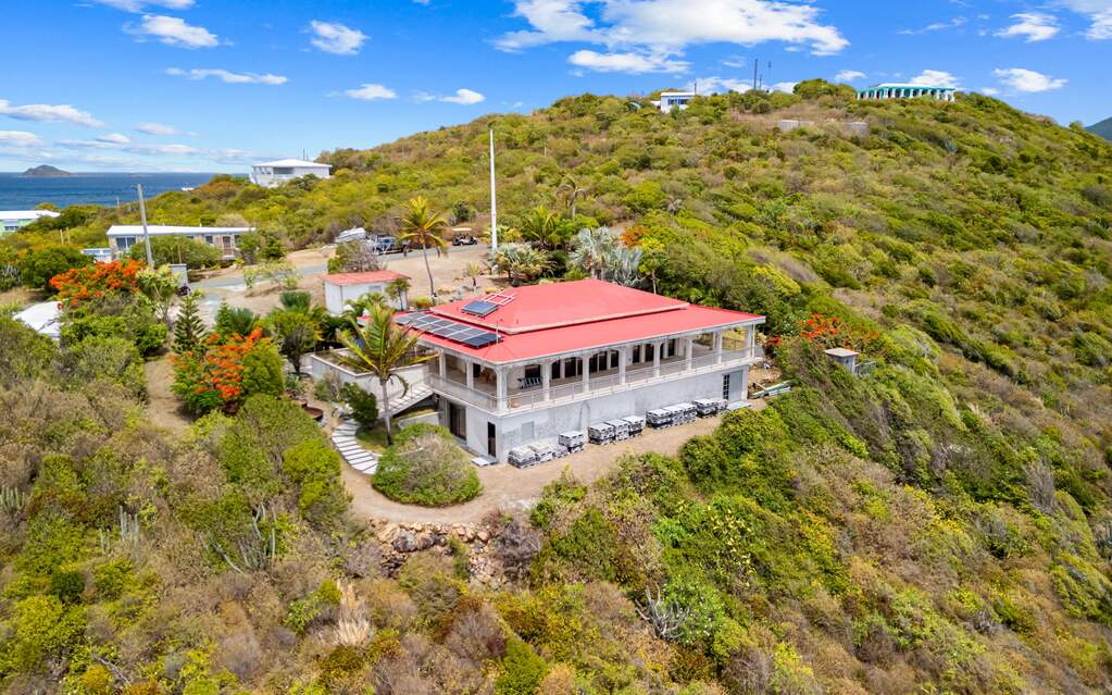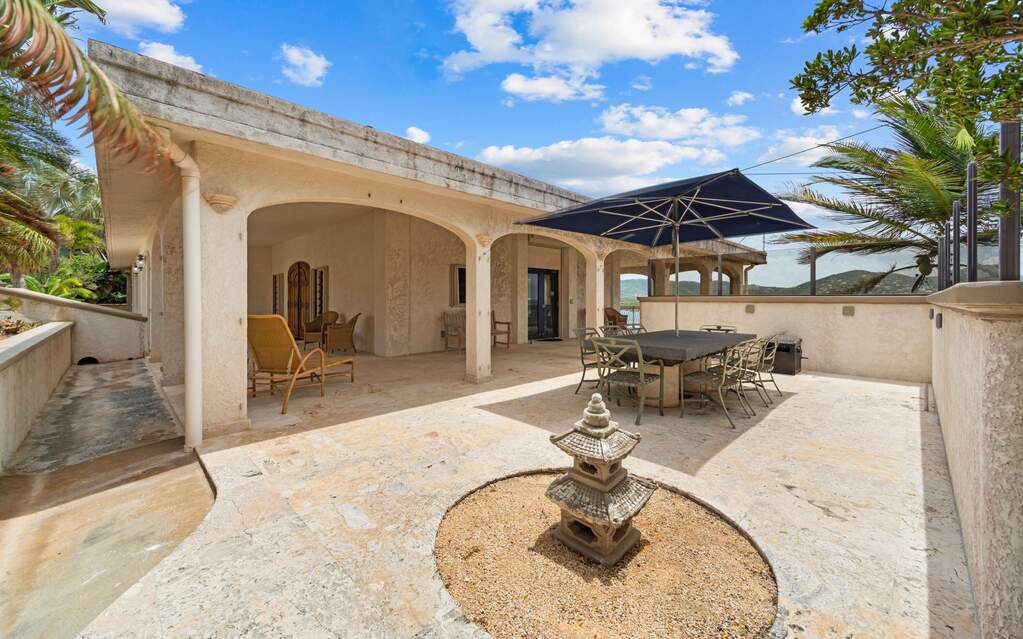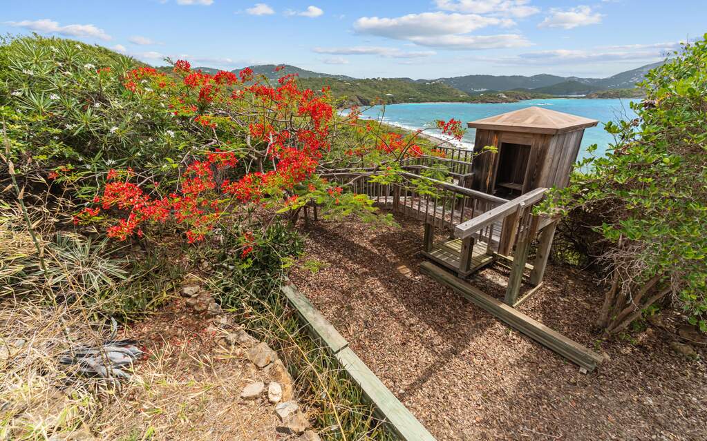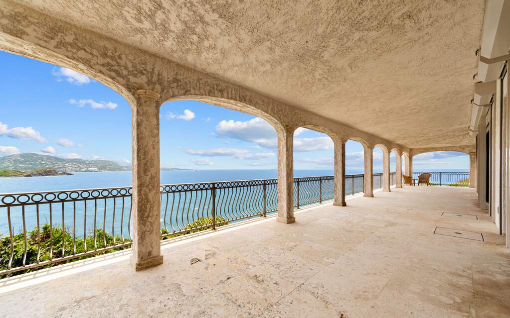 Meticulously engineered yet effortlessly livable, this Mediterranean-inspired villa at 29 Water Island was designed to embrace the Caribbean lifestyle while minimizing long-term maintenance. Solid concrete construction, an 8'' poured concrete and gunite roof, epoxy-coated rebar, and a coral stone plaster exterior provide enduring quality-allowing more time to enjoy island life and less time worrying about upkeep. Thoughtfully designed for comfort and independence, the home offers approximately 4,000 square feet of roof water collection, 35,000 gallons of cistern storage, solar panels, solar hot water, and a full battery backup system-supporting a relaxed, self-sufficient way of living. Inside, soaring pickled cypress ceilings, custom mahogany doors and cabinetry, and bronze-anodized windows and doors create a warm, timeless atmosphere that flows seamlessly to expansive covered coral stone decks, ideal for morning coffee, sunset dinners, and easy indoor-outdoor living. The chef's kitchen anchors the home with high-end Sub-Zero, Viking, and Miele appliances, custom mahogany cabinetry, and granite countertops - perfect for both everyday living and entertaining. The primary suite serves as a peaceful retreat with a spa-like bath finished in travertine and marble. A separate, fully self-contained apartment provides flexibility for guests, staff, or rental income. Completing the property are mature tropical landscaping with irrigation, a large finished concrete workshop and storage building, approved (renewable) permits for a garage and privacy walls, and thoughtfully designed access throughout. A rare opportunity to own a beautifully built island home that balances enduring craftsmanship with effortless Caribbean living.