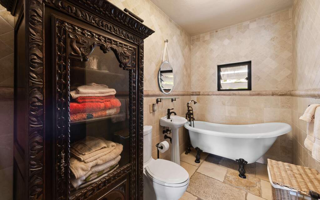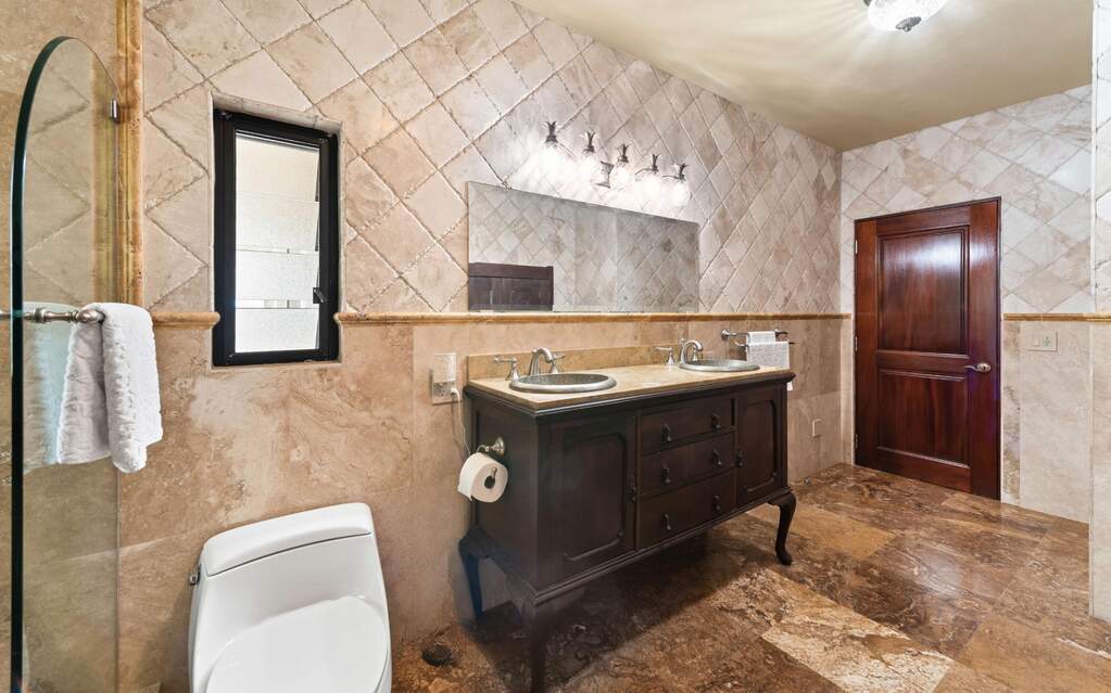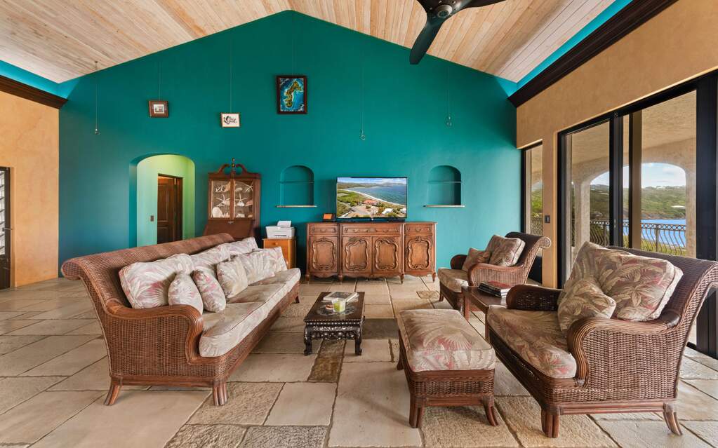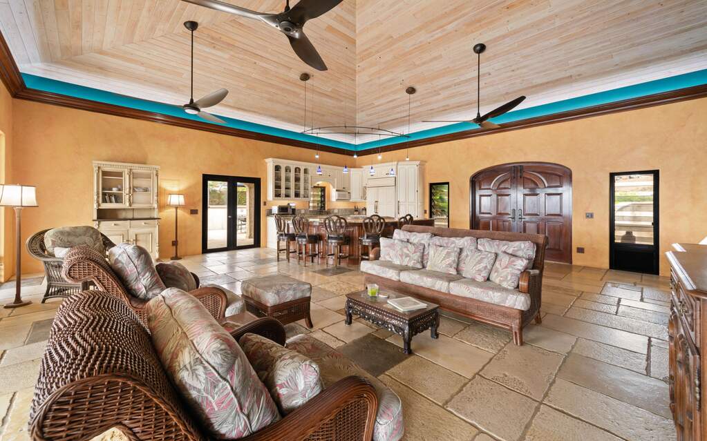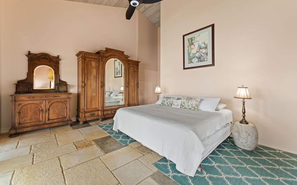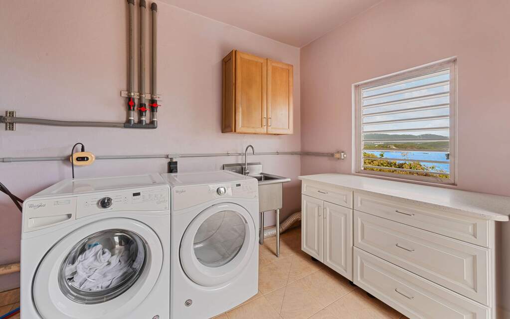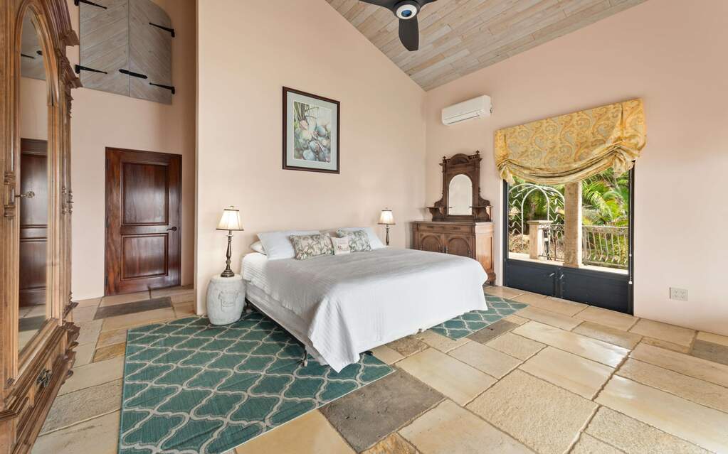 Meticulously engineered yet effortlessly livable, this Mediterranean-inspired villa at 29 Water Island was designed to embrace the Caribbean lifestyle while minimizing long-term maintenance. Solid concrete construction, an 8'' poured concrete and gunite roof, epoxy-coated rebar, and a coral stone plaster exterior provide enduring quality-allowing more time to enjoy island life and less time worrying about upkeep. Thoughtfully designed for comfort and independence, the home offers approximately 4,000 square feet of roof water collection, 35,000 gallons of cistern storage, solar panels, solar hot water, and a full battery backup system-supporting a relaxed, self-sufficient way of living. Inside, soaring pickled cypress ceilings, custom mahogany doors and cabinetry, and bronze-anodized windows and doors create a warm, timeless atmosphere that flows seamlessly to expansive covered coral stone decks, ideal for morning coffee, sunset dinners, and easy indoor-outdoor living. The chef's kitchen anchors the home with high-end Sub-Zero, Viking, and Miele appliances, custom mahogany cabinetry, and granite countertops - perfect for both everyday living and entertaining. The primary suite serves as a peaceful retreat with a spa-like bath finished in travertine and marble. A separate, fully self-contained apartment provides flexibility for guests, staff, or rental income. Completing the property are mature tropical landscaping with irrigation, a large finished concrete workshop and storage building, approved (renewable) permits for a garage and privacy walls, and thoughtfully designed access throughout. A rare opportunity to own a beautifully built island home that balances enduring craftsmanship with effortless Caribbean living.