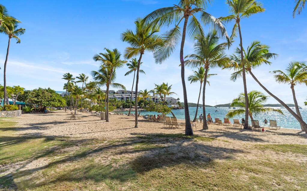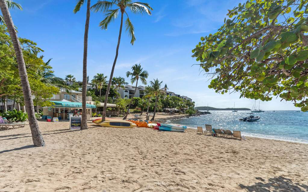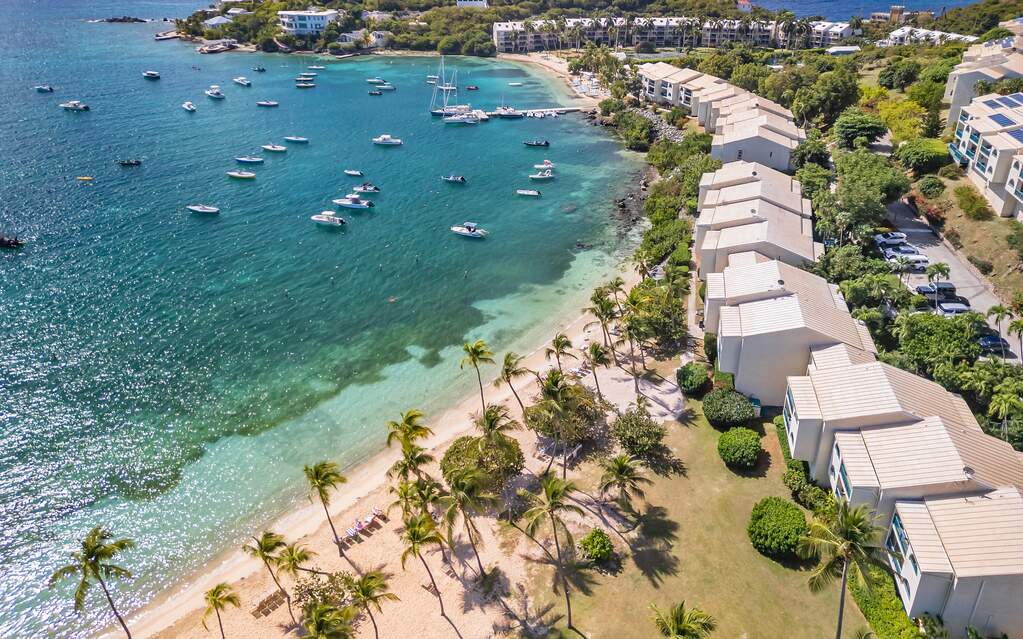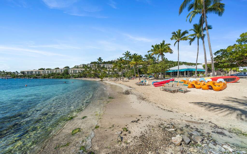A RARE FIND! 2 BR 2 Bath elegantly furnished BEACHFRONT condominium- Cowpet Bay West! One of the BEST locations in the complex! A private sidewalk just steps off the front balcony lead directly to the white sandy beach & ocean! Upon entry - open layout with OCEAN VIEWS & BREEZES1 Full size kitchen, Dining & living room expand to a screened veranda - has afternoon shade & sounds of ocean waves! Updates 2023 - en-suite baths, expanded walk-in closet, new Trane A/C, 3 mini splits & electrical upgrade for high capacity tankless water heater. Sea side BR has unobstructed ocean views with sliding doors to the veranda. Ideal East End location close to the Ritz Carlton, Easy access to pool/hot tub (membership) 2 restaurants - beachhut excursions. PERFECT RENTAL or your own Island Retreat!
