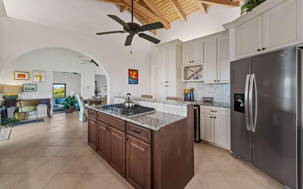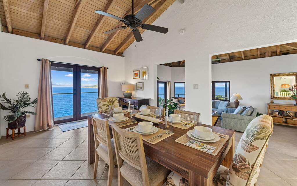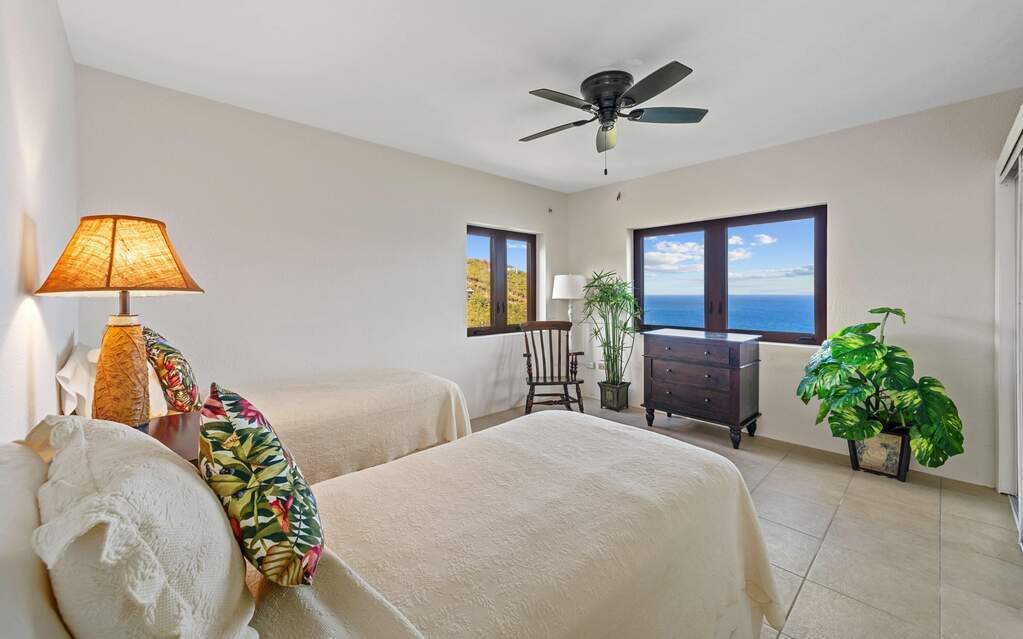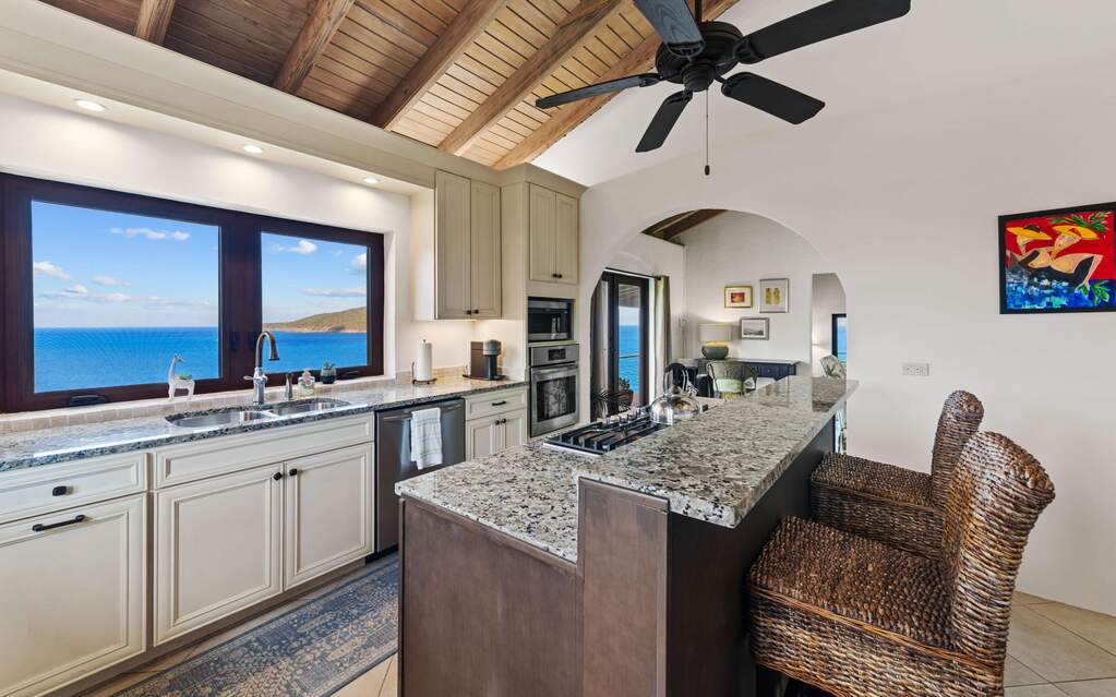 Set within the gated community of Mahogany Run, this three-bedroom all-concrete home captures sweeping, unobstructed Atlantic views across the dramatic cliffs of the Peterborg Peninsula, Hans Lollick, and British Virgin Islands. The main level living and dining areas open to an expansive upper deck, All three lower-level bedrooms open directly to a matching exterior deck, offering panoramic views from every room. New high-impact windows and doors and appliances, solid concrete construction, and recent renovations reflect quality craftsmanship throughout. Infrastructure includes two cisterns, a new 25kW generator , Hunter ceiling fans and central air conditioning. With natural beauty and quiet sophistication, 75 Lovenlund offers privacy and views in a stunning location.