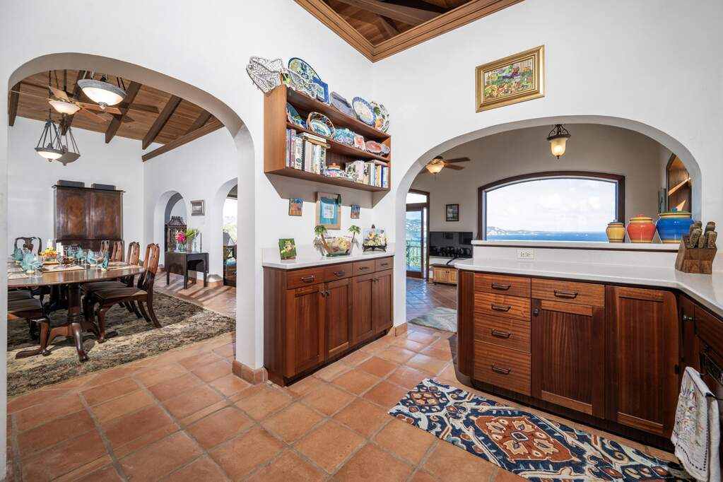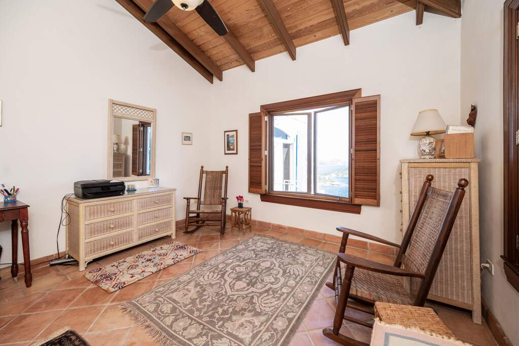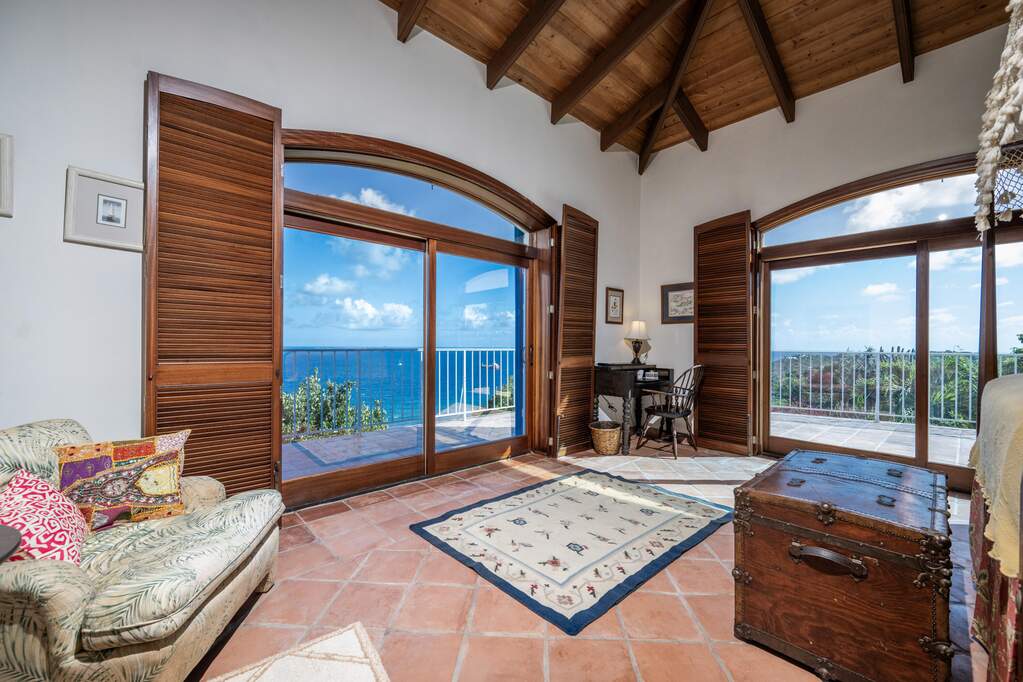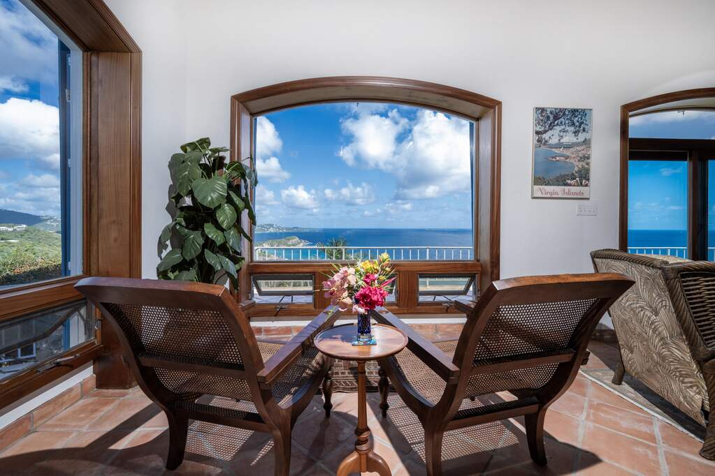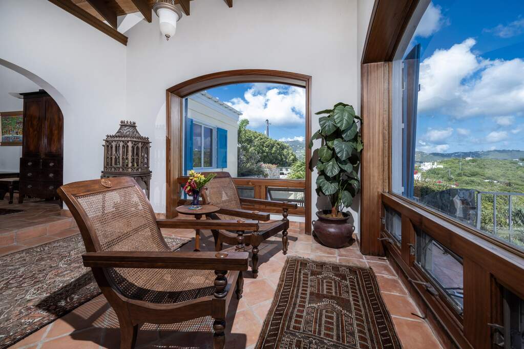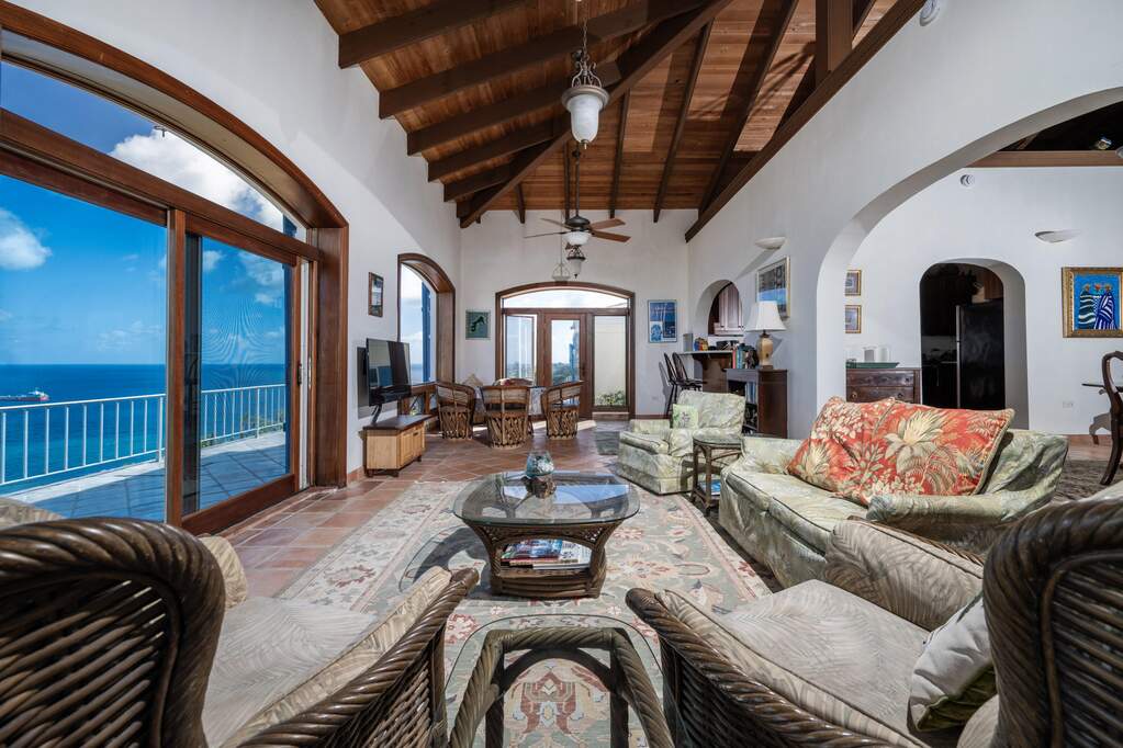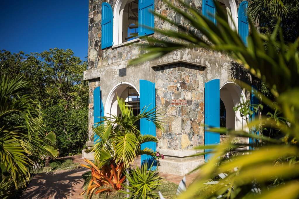 Perched at the highest point of Providence Hill on 3.24 acres, 88 Water Island is widely regarded as one of--if not the--most extraordinary private residences on Water Island. With commanding views to the East, South, and West over the Caribbean Sea, and St. Thomas to the North, this landmark property offers a rare combination of history, privacy, craftsmanship, and panoramic beauty. Originally selected by the U.S. Army Corps of Engineers during World War II as a strategic observation and communications site, the property's iconic three-story steel-reinforced concrete tower remains a defining feature. In the early 2000s, the estate was thoughtfully rebuilt and expanded by renowned Virgin Islands architects John Woods AIA and Jaredian Design Group blending traditional West Indian plantation-style architecture with enduring, hurricane-resilient construction. The result is a residence that feels both timeless and purpose-built for island living. The main residence and separate structures total 5,326 square feet under roof, with thoughtfully designed indoor and outdoor living spaces that flow seamlessly together. Vaulted cypress ceilings soaring up to 20 feet, Saltillo tile floors throughout, and extensive use of custom South American mahogany--doors, windows, cabinetry, trim, and shutters--all contribute to the home's warmth and authenticity. The great house is naturally ventilated by constant trade winds, while the private master suite offers air conditioning, sweeping ocean views, and a stone outdoor shower. Designed for both self-sufficiency and entertaining, the estate features a 28' x 20' swimming pool, spa, expansive tiled terraces, and a beautifully restored pool pavilion with a 12-foot mahogany bar, half bath, and outdoor shower--fully storm-shuttered and easily convertible to an additional guest suite. Infrastructure includes 41,100 gallons of cistern capacity, a 11kW solar grid-tie system, whole-house water filtration with UV purification, a 2026 11kW diesel generator, hurricane-rated shutters, and a NEW Galvalume roof. The historic observation tower--renovated with colonial stonework and modern utilities--offers four finished interior levels and a rooftop observation deck accessed by a rust-free aluminum spiral staircase. From the top, enjoy 360-degree views spanning St. Croix, Vieques, Culebra, Puerto Rico, St. Thomas, and all of Water Island--a vantage point unlike anything else in the U.S. Virgin Islands. Surrounded by mature landscaping, including over 40 of West Indian mahogany trees and one of the largest neem trees on the island, Providence Hill is not just a home--it is a legacy property, built to endure and impossible to replicate.