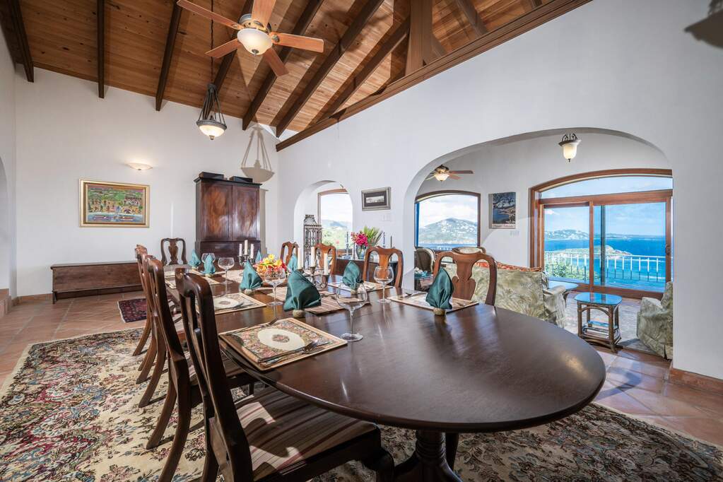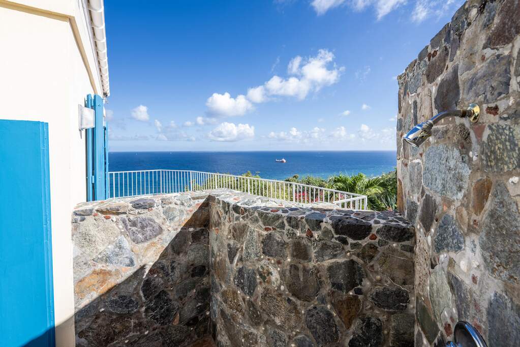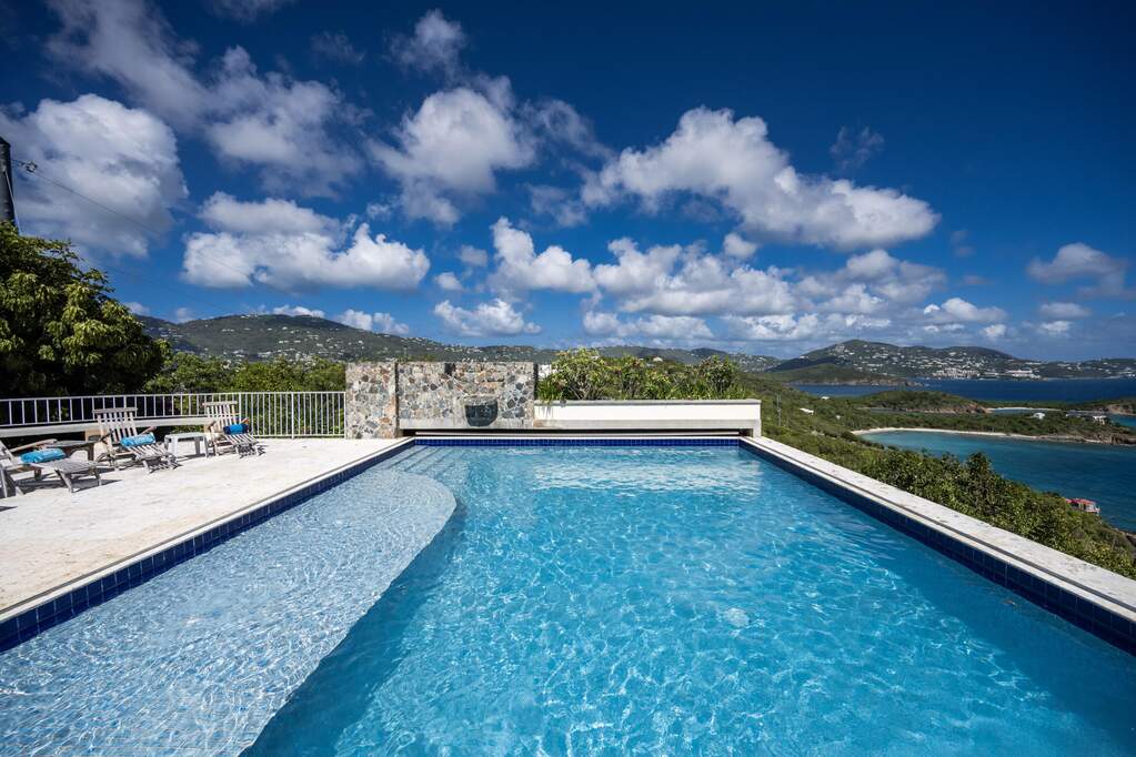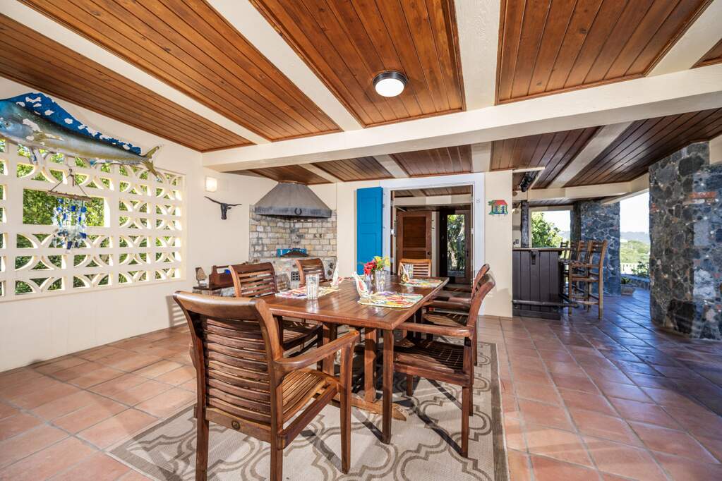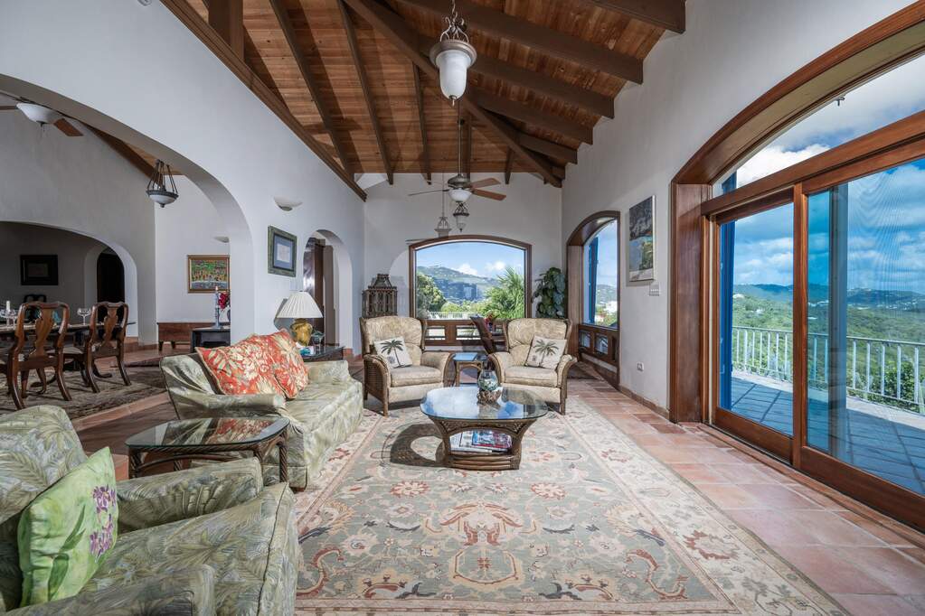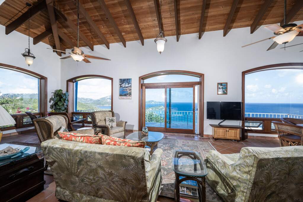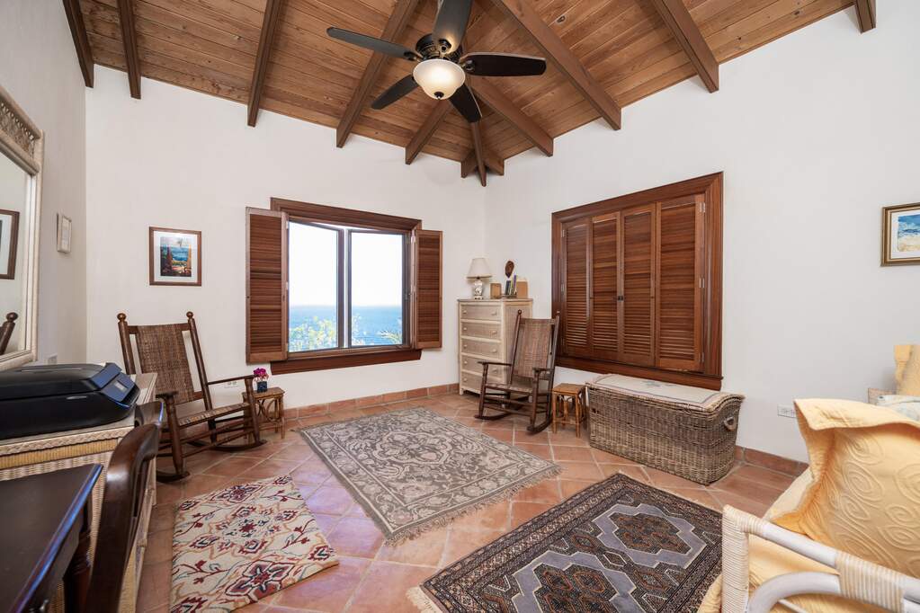 Perched at the highest point of Providence Hill on 3.24 acres, 88 Water Island is widely regarded as one of--if not the--most extraordinary private residences on Water Island. With commanding views to the East, South, and West over the Caribbean Sea, and St. Thomas to the North, this landmark property offers a rare combination of history, privacy, craftsmanship, and panoramic beauty. Originally selected by the U.S. Army Corps of Engineers during World War II as a strategic observation and communications site, the property's iconic three-story steel-reinforced concrete tower remains a defining feature. In the early 2000s, the estate was thoughtfully rebuilt and expanded by renowned Virgin Islands architects John Woods AIA and Jaredian Design Group blending traditional West Indian plantation-style architecture with enduring, hurricane-resilient construction. The result is a residence that feels both timeless and purpose-built for island living. The main residence and separate structures total 5,326 square feet under roof, with thoughtfully designed indoor and outdoor living spaces that flow seamlessly together. Vaulted cypress ceilings soaring up to 20 feet, Saltillo tile floors throughout, and extensive use of custom South American mahogany--doors, windows, cabinetry, trim, and shutters--all contribute to the home's warmth and authenticity. The great house is naturally ventilated by constant trade winds, while the private master suite offers air conditioning, sweeping ocean views, and a stone outdoor shower. Designed for both self-sufficiency and entertaining, the estate features a 28' x 20' swimming pool, spa, expansive tiled terraces, and a beautifully restored pool pavilion with a 12-foot mahogany bar, half bath, and outdoor shower--fully storm-shuttered and easily convertible to an additional guest suite. Infrastructure includes 41,100 gallons of cistern capacity, a 11kW solar grid-tie system, whole-house water filtration with UV purification, a 2026 11kW diesel generator, hurricane-rated shutters, and a NEW Galvalume roof. The historic observation tower--renovated with colonial stonework and modern utilities--offers four finished interior levels and a rooftop observation deck accessed by a rust-free aluminum spiral staircase. From the top, enjoy 360-degree views spanning St. Croix, Vieques, Culebra, Puerto Rico, St. Thomas, and all of Water Island--a vantage point unlike anything else in the U.S. Virgin Islands. Surrounded by mature landscaping, including over 40 of West Indian mahogany trees and one of the largest neem trees on the island, Providence Hill is not just a home--it is a legacy property, built to endure and impossible to replicate.