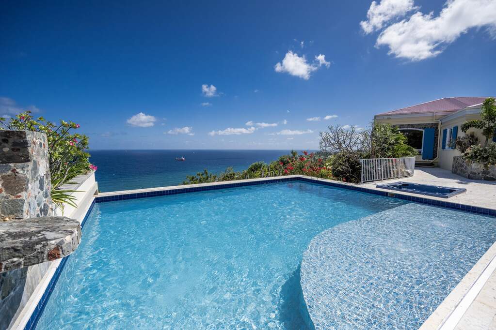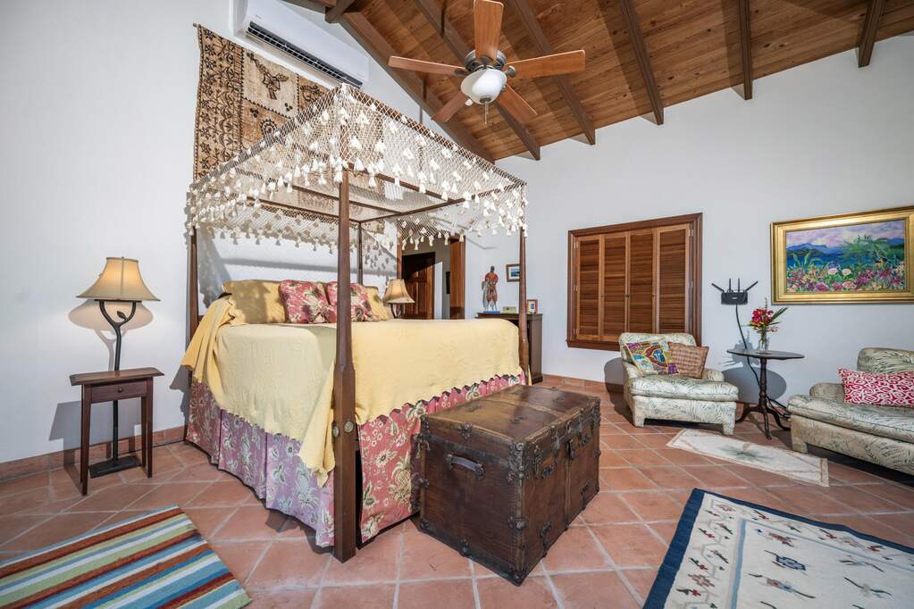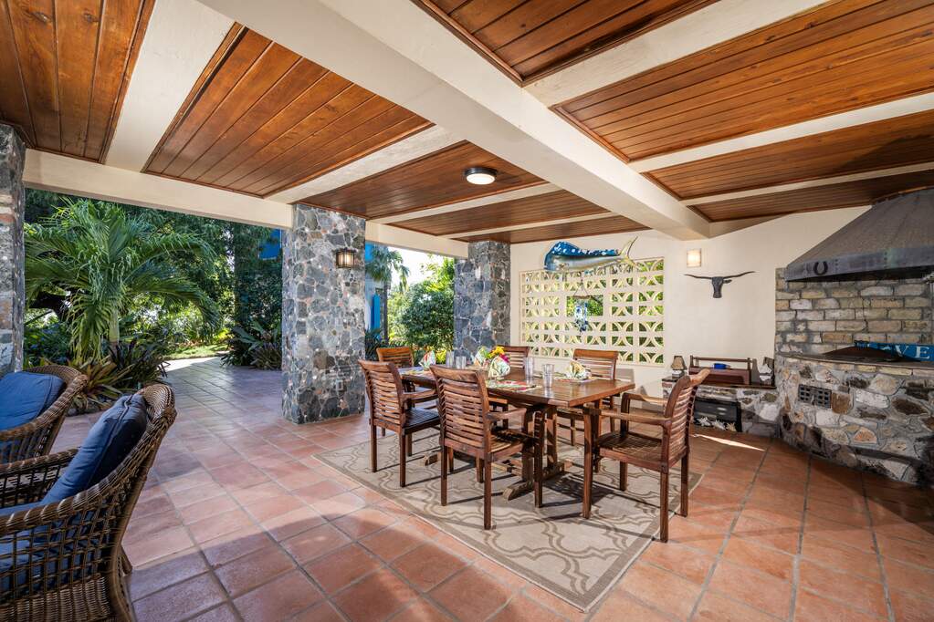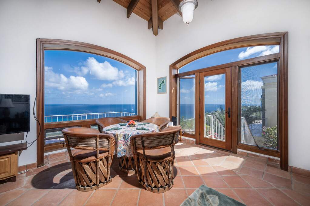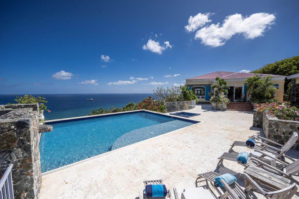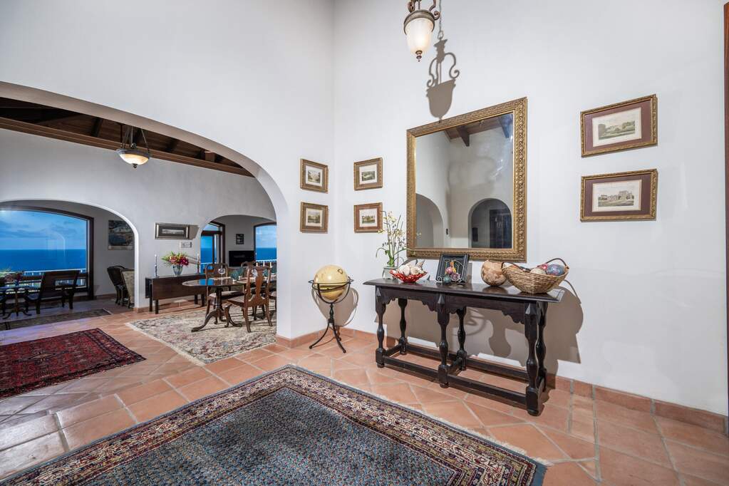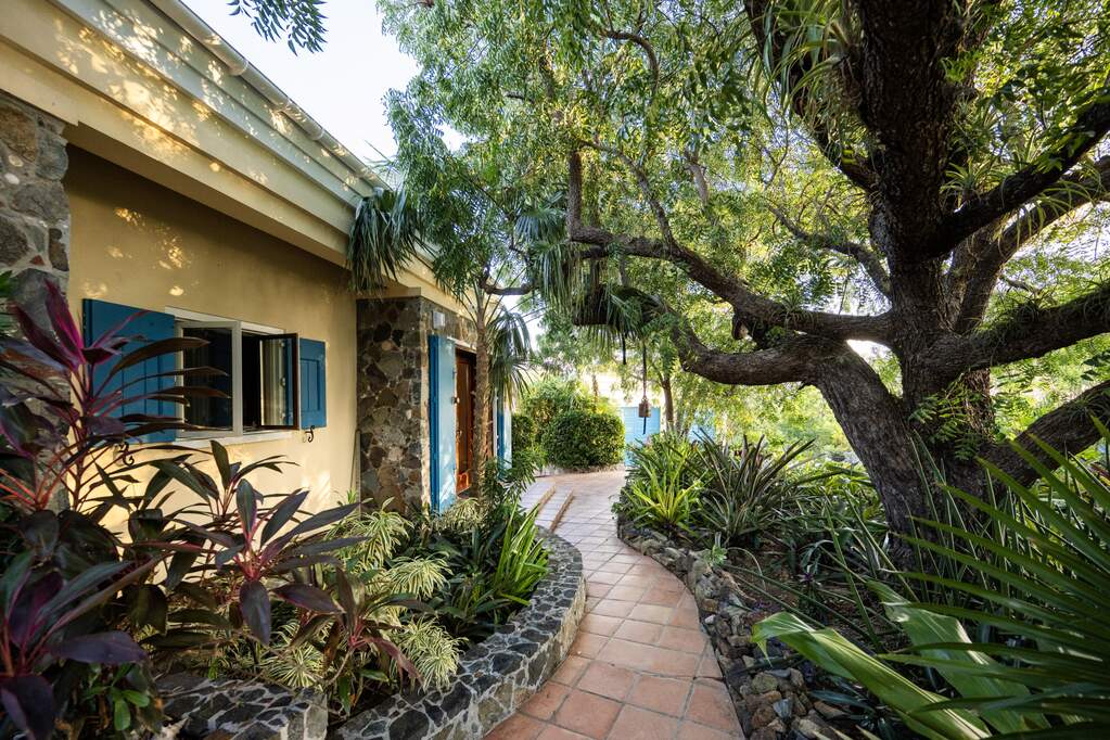Perched at the highest point of Providence Hill on 3.24 acres, 88 Water Island is widely regarded as one of--if not the--most extraordinary private residences on Water Island. With commanding views to the East, South, and West over the Caribbean Sea, and St. Thomas to the North, this landmark property offers a rare combination of history, privacy, craftsmanship, and panoramic beauty. Originally selected by the U.S. Army Corps of Engineers during World War II as a strategic observation and communications site, the property's iconic three-story steel-reinforced concrete tower remains a defining feature. In the early 2000s, the estate was thoughtfully rebuilt and expanded by renowned Virgin Islands architects John Woods AIA and Jaredian Design Group blending traditional West Indian plantation-style architecture with enduring, hurricane-resilient construction. The result is a residence that feels both timeless and purpose-built for island living. The main residence and separate structures total 5,326 square feet under roof, with thoughtfully designed indoor and outdoor living spaces that flow seamlessly together. Vaulted cypress ceilings soaring up to 20 feet, Saltillo tile floors throughout, and extensive use of custom South American mahogany--doors, windows, cabinetry, trim, and shutters--all contribute to the home's warmth and authenticity. The great house is naturally ventilated by constant trade winds, while the private master suite offers air conditioning, sweeping ocean views, and a stone outdoor shower. Designed for both self-sufficiency and entertaining, the estate features a 28' x 20' swimming pool, spa, expansive tiled terraces, and a beautifully restored pool pavilion with a 12-foot mahogany bar, half bath, and outdoor shower--fully storm-shuttered and easily convertible to an additional guest suite. Infrastructure includes 41,100 gallons of cistern capacity, a 11kW solar grid-tie system, whole-house water filtration with UV purification, a 2026 11kW diesel generator, hurricane-rated shutters, and a NEW Galvalume roof. The historic observation tower--renovated with colonial stonework and modern utilities--offers four finished interior levels and a rooftop observation deck accessed by a rust-free aluminum spiral staircase. From the top, enjoy 360-degree views spanning St. Croix, Vieques, Culebra, Puerto Rico, St. Thomas, and all of Water Island--a vantage point unlike anything else in the U.S. Virgin Islands. Surrounded by mature landscaping, including over 40 of West Indian mahogany trees and one of the largest neem trees on the island, Providence Hill is not just a home--it is a legacy property, built to endure and impossible to replicate.