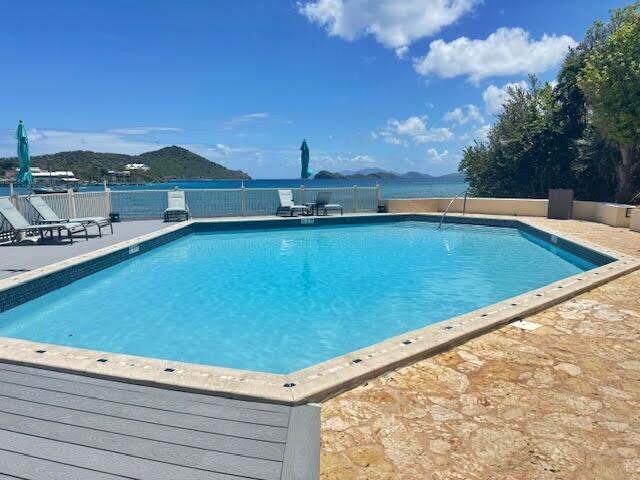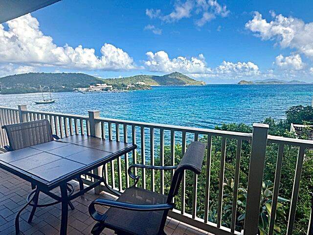 WATERFRONT! Sirens Song Villa is a beautifully designed, light filled one bedroom condo, perfect for either year round living or as a vacation rental. You'll find a kitchen with full size appliances including dishwasher, remodeled bathroom with walk-in shower and generous closet space. Condo fees include water, wifi and internet and the newly installed backup generators. Relax on the deck outside overlooking crystal clear waters below and you may see a turtle or ray swim by. You can also enjoy any one of the three pools and the two onsite restaurants. Point Pleasant is a gated community set on 15 tropically landscaped acres with nature trails. You're minutes from Red Hook and world class snorkeling at nearby Coki and Lindquist beaches. B-8 is a short stroll to Point Pleasant's pretty pocket Sugar Beach or you can walk over to Pineapple Beach and Margaritaville Resort. Note: the bed headboard shown will be replaced with one that matches the rest of the furniture. The mattress, custom storage frame and boxspring mattress remain, insuring the condo is fully furnished and turnkey.