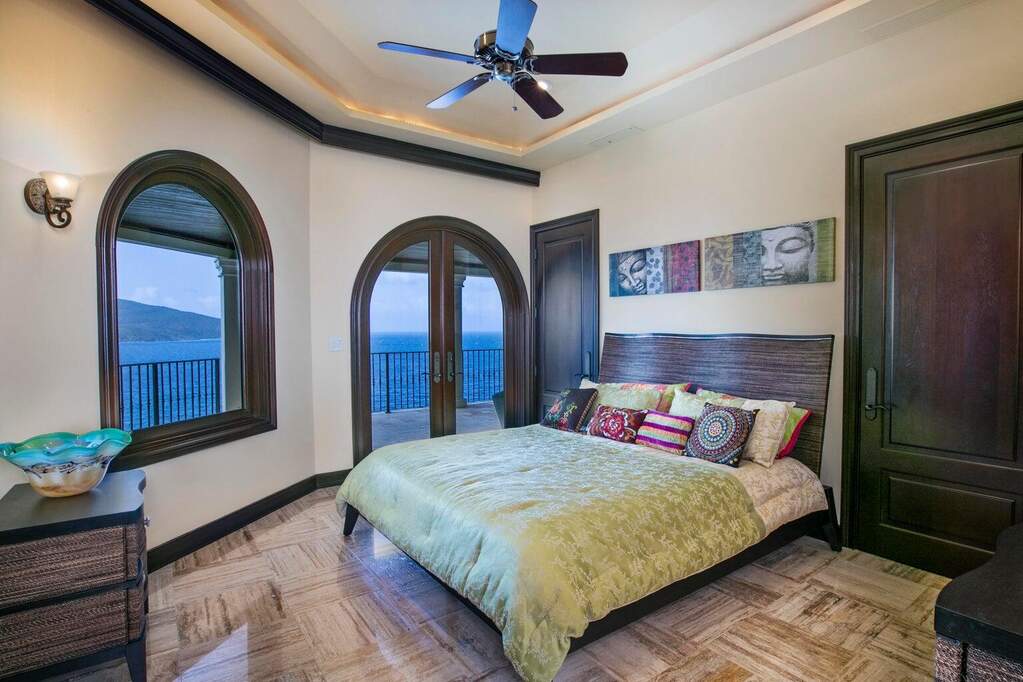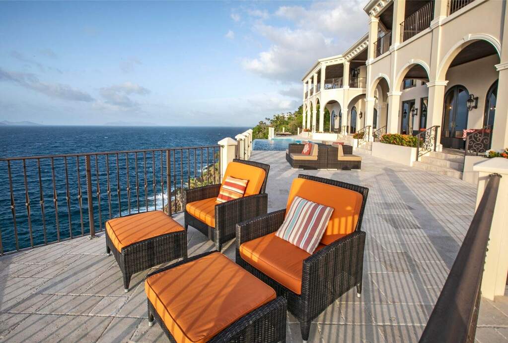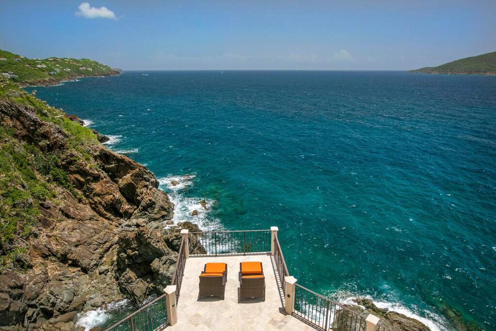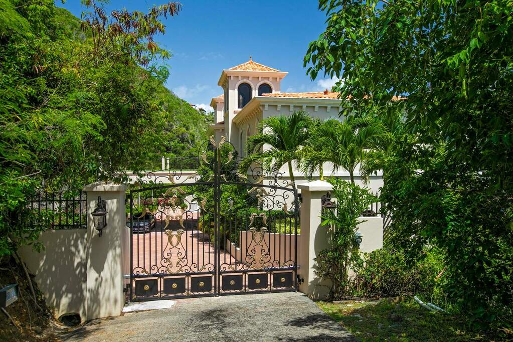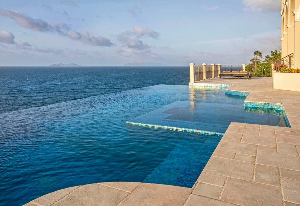 There is a quiet confidence to this Mahogany Run estate, the kind that comes from exceptional design, thoughtful placement, and rare waterfront acreage. Stepping through the door, the great room frames a sweeping, uninterrupted view toward Hans Lollick and down-island, creating a dramatic and memorable arrival. The home's architecture is shaped entirely around that panorama. Morning light moves across the terraces, breezes carry through open spaces, and enjoying coffee and conversation on the deck is hard to pass up. It is a setting that invites you to pause, take in the view, and simply be present. Crafted with uncompromising quality, the residence is anchored by poured-concrete construction, reinforced impact glass, and a layout designed for both privacy and connection. A spacious primary suite offers its own commanding view and private terrace. The chef's kitchen, generous pantry storage, and well-planned service areas support both everyday living and large-scale hosting. Six bedrooms and multiple gathering areas allow the property to function as a true estate: a place where family, friends, and quiet moments all have room. Outside, the pool terrace sits at the edge of the view, creating an effortless flow between water, sky, and coastline. Estate-level systems, including substantial water storage, a full backup generator, and durable exterior finishes, underscore the home's long-term resilience. Refined details throughout the interior and exterior living spaces frame the beauty of the surrounding coastline. Set within a gated community on 1.8 waterfront acres, the property offers a level of scale and privacy seldom available in the Virgin Islands. The setting feels secluded yet remains only minutes from Magens Bay and the conveniences of town. For buyers seeking a home with presence, one that blends strength, serenity, and design, this property stands apart. And with the recent price improvement, now is an ideal time to experience its full potential in person.