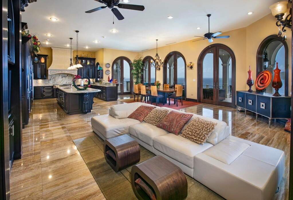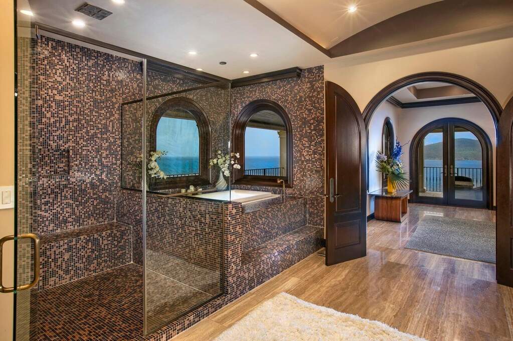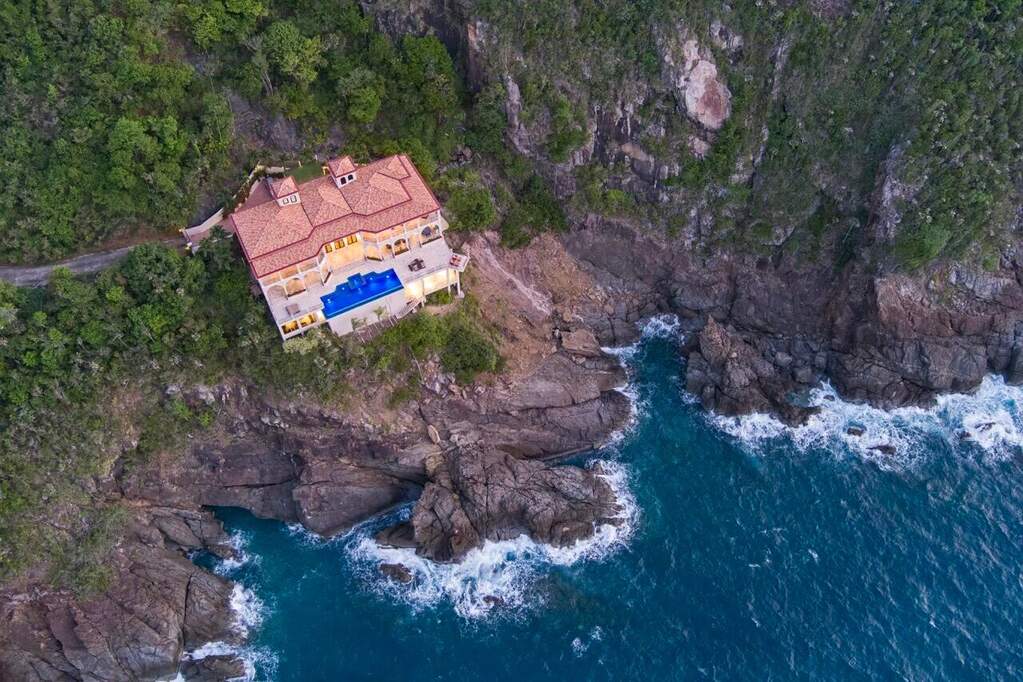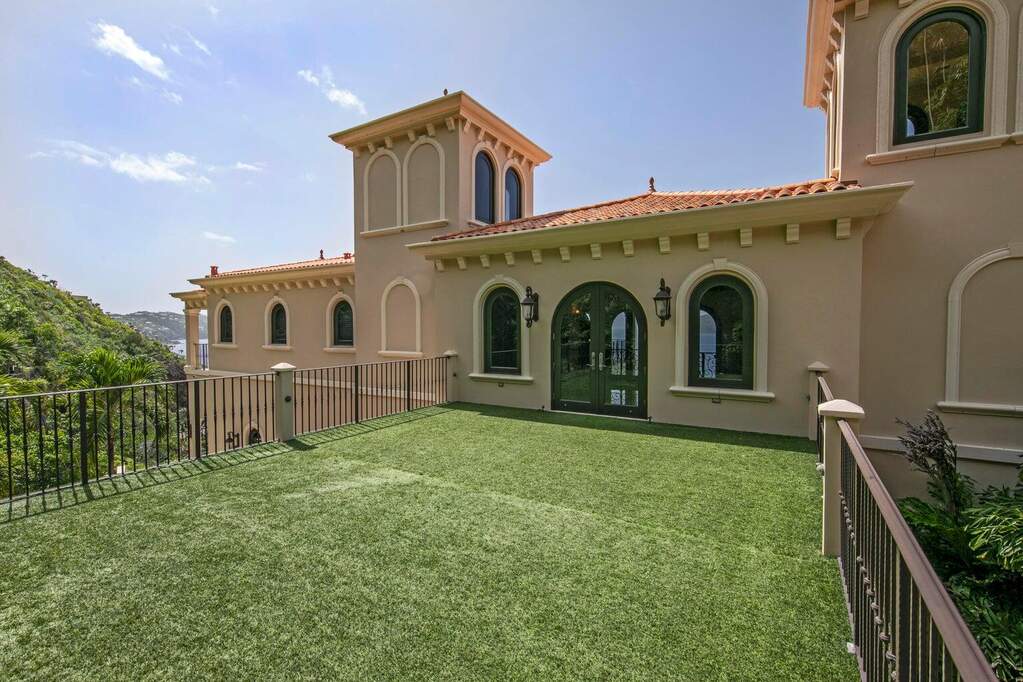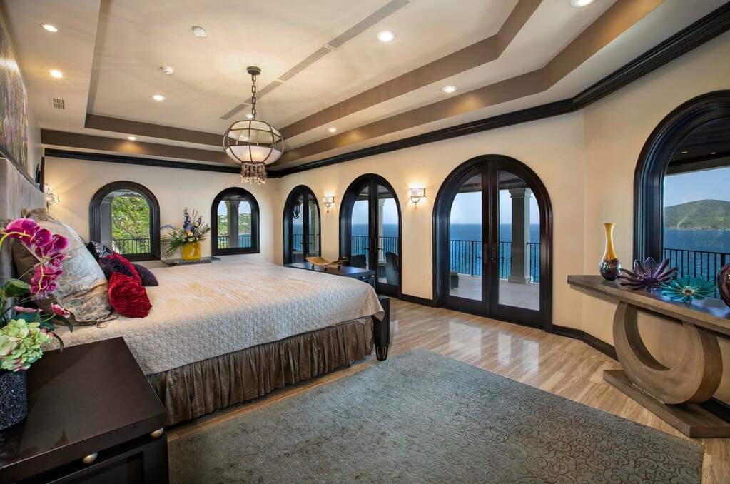There is a quiet confidence to this Mahogany Run estate, the kind that comes from exceptional design, thoughtful placement, and rare waterfront acreage. Stepping through the door, the great room frames a sweeping, uninterrupted view toward Hans Lollick and down-island, creating a dramatic and memorable arrival. The home's architecture is shaped entirely around that panorama. Morning light moves across the terraces, breezes carry through open spaces, and enjoying coffee and conversation on the deck is hard to pass up. It is a setting that invites you to pause, take in the view, and simply be present. Crafted with uncompromising quality, the residence is anchored by poured-concrete construction, reinforced impact glass, and a layout designed for both privacy and connection. A spacious primary suite offers its own commanding view and private terrace. The chef's kitchen, generous pantry storage, and well-planned service areas support both everyday living and large-scale hosting. Six bedrooms and multiple gathering areas allow the property to function as a true estate: a place where family, friends, and quiet moments all have room. Outside, the pool terrace sits at the edge of the view, creating an effortless flow between water, sky, and coastline. Estate-level systems, including substantial water storage, a full backup generator, and durable exterior finishes, underscore the home's long-term resilience. Refined details throughout the interior and exterior living spaces frame the beauty of the surrounding coastline. Set within a gated community on 1.8 waterfront acres, the property offers a level of scale and privacy seldom available in the Virgin Islands. The setting feels secluded yet remains only minutes from Magens Bay and the conveniences of town. For buyers seeking a home with presence, one that blends strength, serenity, and design, this property stands apart. And with the recent price improvement, now is an ideal time to experience its full potential in person.