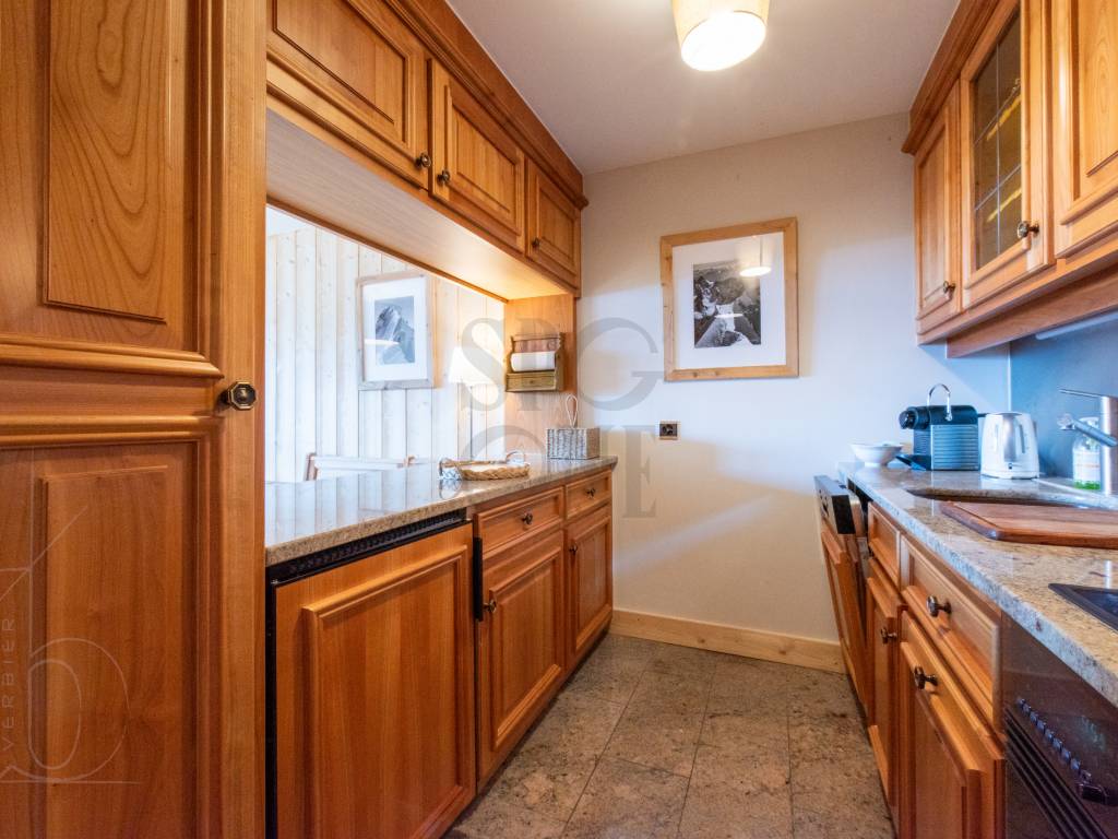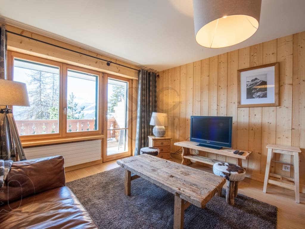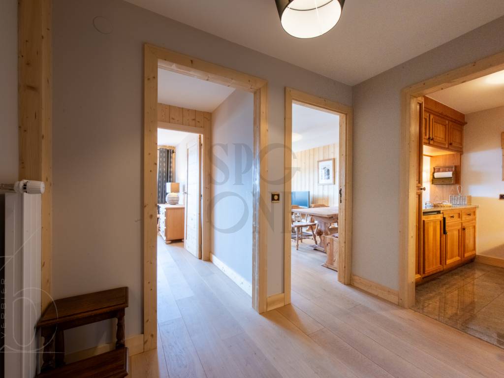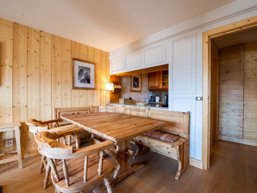 Renovated in 2022, the Alpine materials and meticulous layout give this apartment a cosy, welcoming atmosphere. The living room and master bedroom have access to the balcony, which is a real asset to the flat thanks to its south-facing aspect, which gives it a splendid view and plenty of natural light.