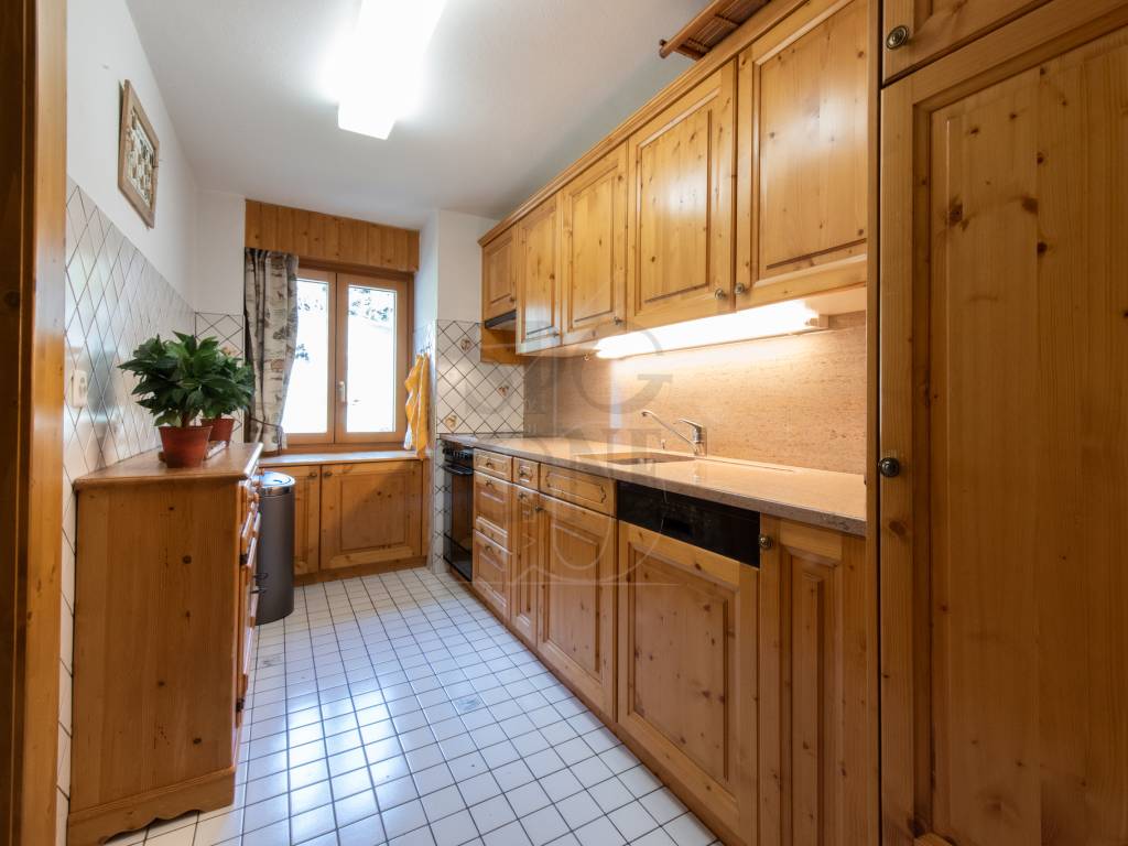 Additional features include a private garage box with an electric door in an underground garage, two cellars, a ski room, and a shared laundry area, as well as a washer/dryer within the apartment.