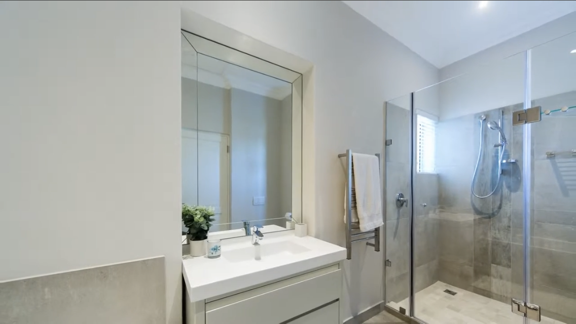• En-suite bathroom with double shower and free-standing bath