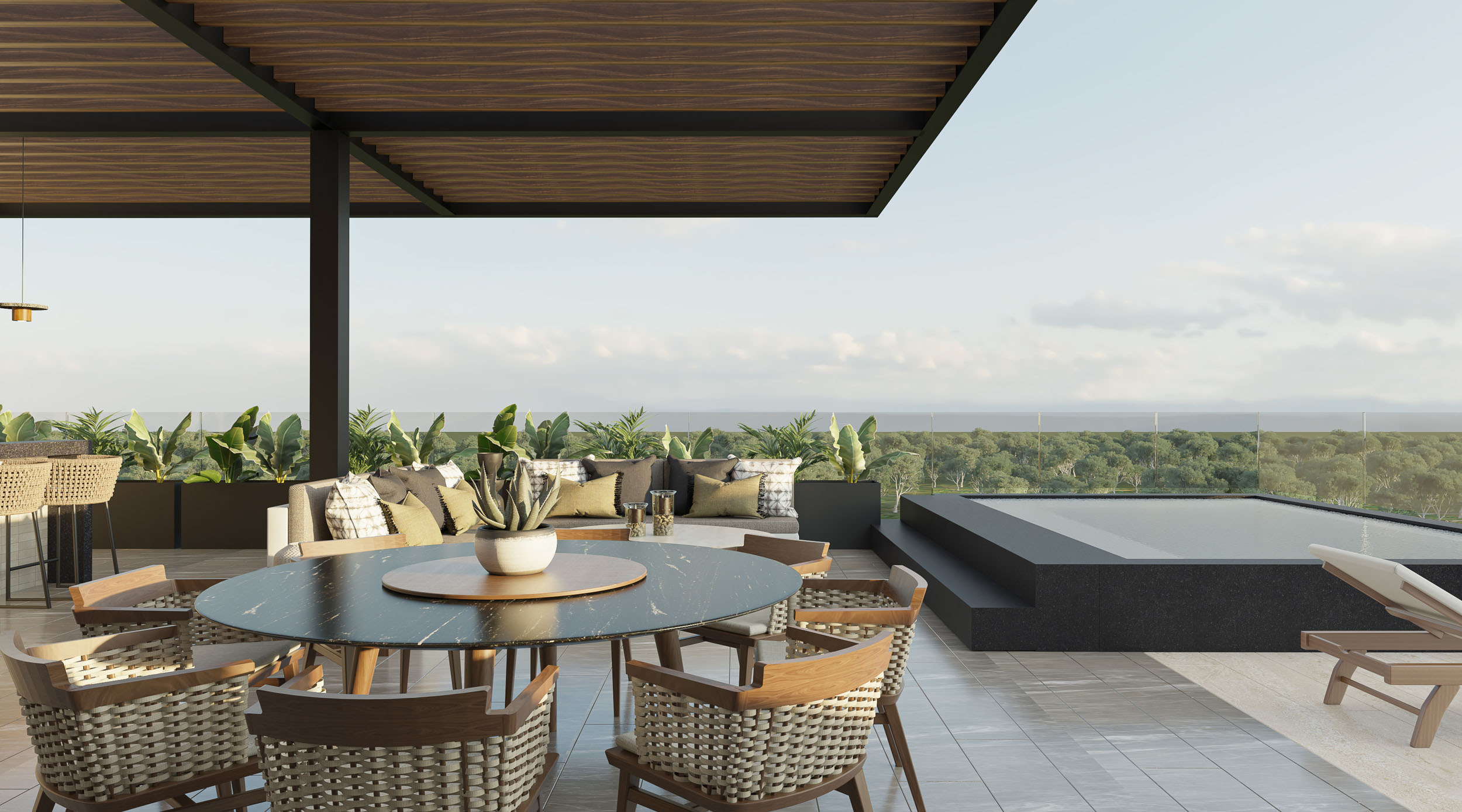 With a location that places it just twenty minutes from both Mérida's historic center and the pristine beaches of Progreso, this penthouse offers the perfect balance between cultural vibrancy and coastal serenity. Whether as a full-time residence or a seasonal retreat, owners have the flexibility to live here year-round or take advantage of Banyan Tree's professionally managed rental program, which ensures both a seamless ownership experience and an attractive return on investment. Additionally, ownership includes membership in the exclusive Sanctuary Club, which grants privileged access and significant discounts across Banyan Group's international portfolio of luxury resorts, spas, and fine dining establishments.